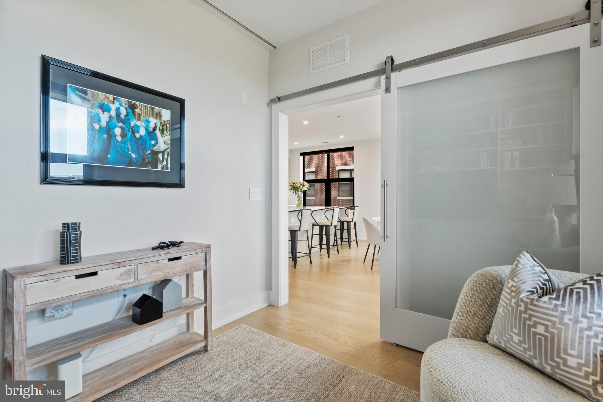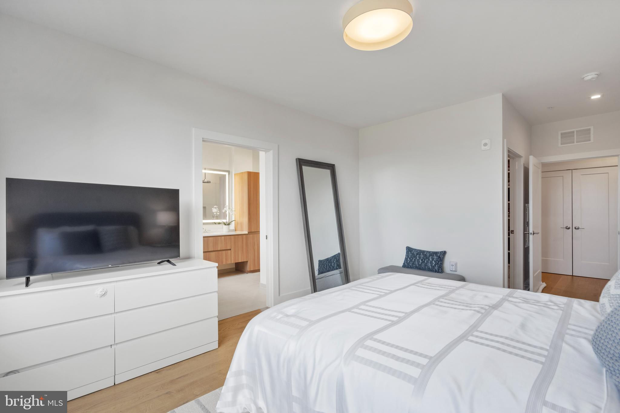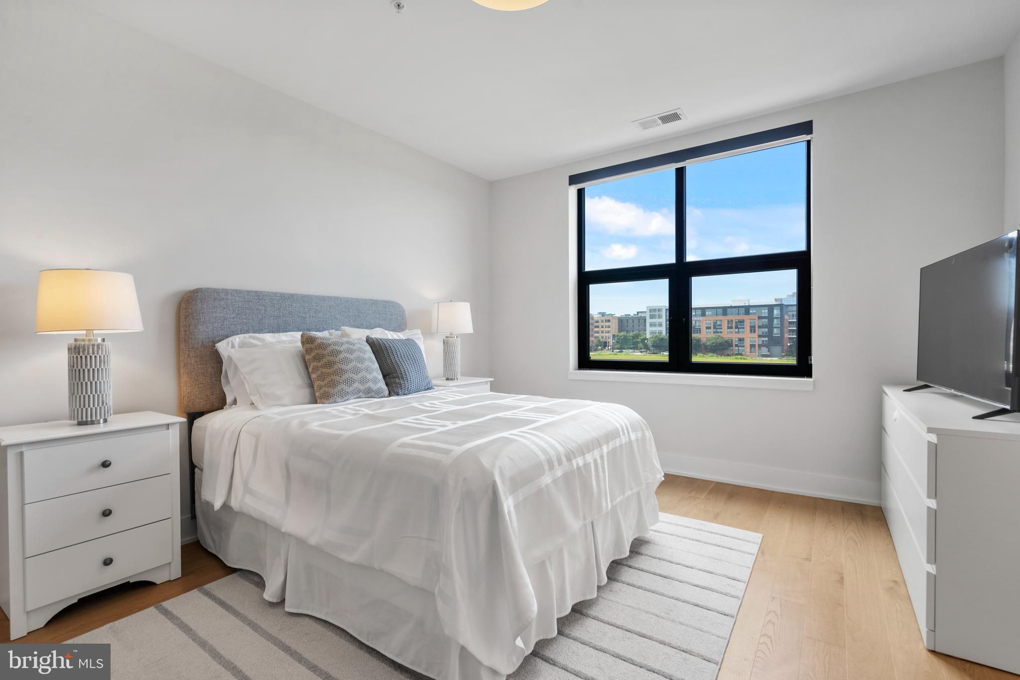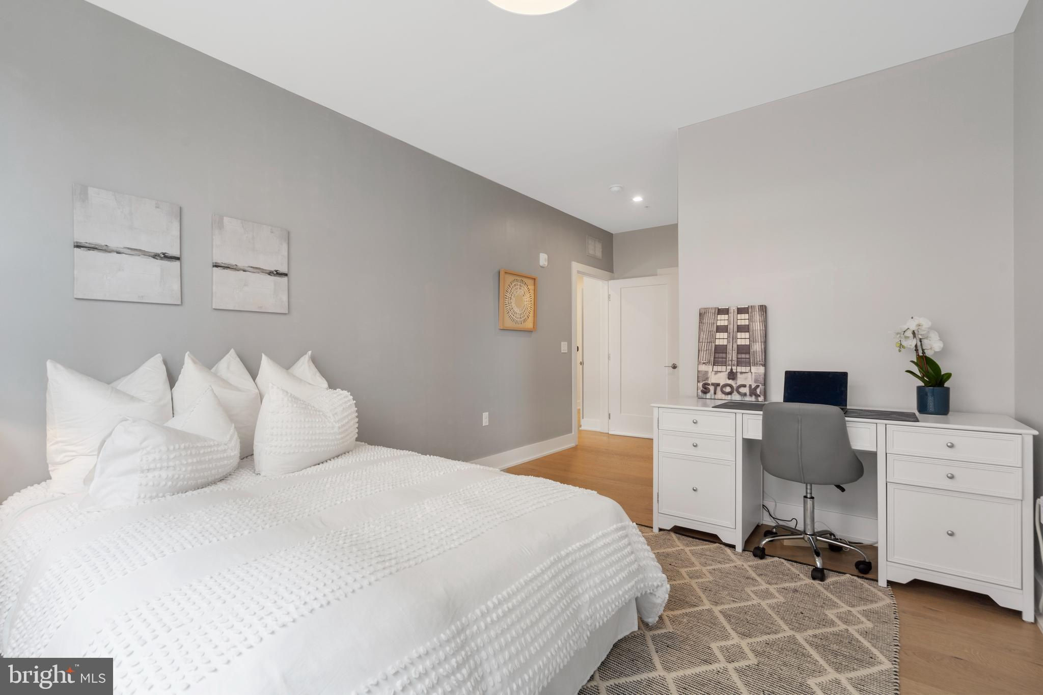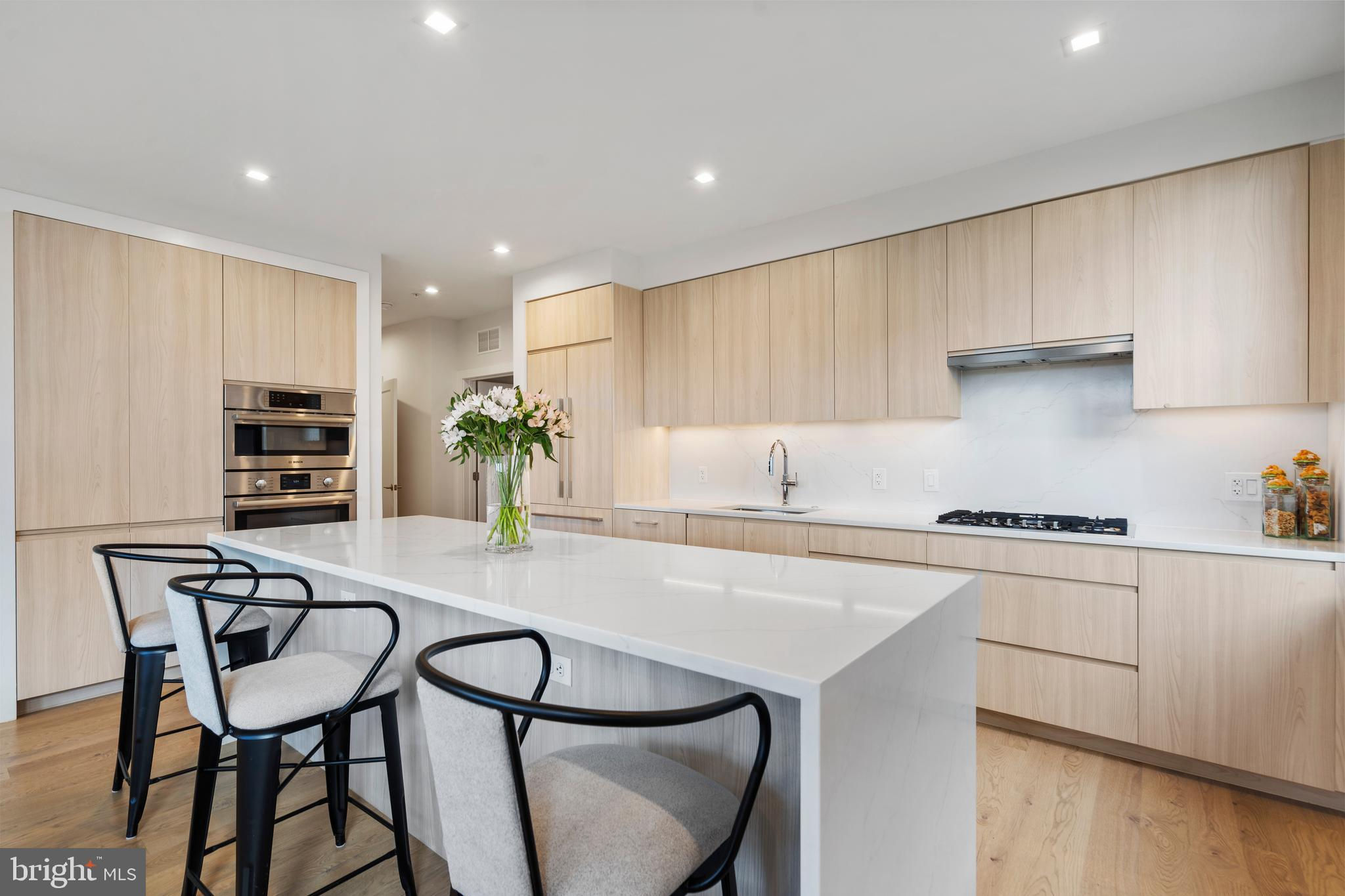 Welcome home to this stunning condo in Potomac Yard! This home offers over 1600 square feet of luxury living and features two bedrooms, two full baths, a powder room, a separate office and private outdoor space. PLUS there are two dedicated garage parking places (one with its own charging station). Newly constructed in 2023 by Dylan, this condo embodies sophisticated style, high-end appliances and fixtures and exceptional designer touches. The property is a rare corner unit flooded with light from two exposures. A true gourmet kitchen offers fine contemporary design: stylish cabinets, a gorgeous island with waterfall white Calacatta quartz countertops, refrigerated wine storage, and wood paneled premium Bosch appliances. Waterworks and Kohler fixtures are found throughout the unit. The spa-inspired bathrooms feature floor to ceiling tile, with the master bathroom offering dual sinks. The large bedrooms offer plenty of space and have large closets, with the master having two walk-in closets. Top-of-the-line shelving has been added throughout the unit to closets and storage. The den offers a wonderful retreat and has been enhanced with built-in bookcases. Residents enjoy an exceptional array of amenities: an innovative fitness center and yoga room, a fabulous rooftop lounge and terrace with stunning DC and Old Town views, a conference room, a beautiful lobby with concierge, and a bike room, among other amenities. The condo offers the consummate location – steps to the metro and numerous fine restaurants and retail. It is adjacent to Potomac Yard Park with over 20 acres of walking and bike trails, tennis, basketball and large playgrounds. Outstanding in every way, this upscale architectural masterpiece is the perfect refuge to call “home”.