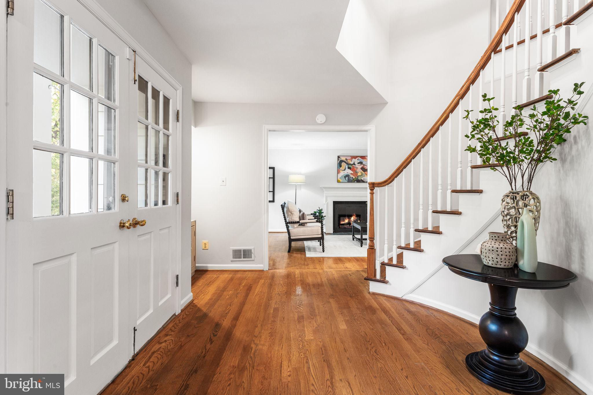 Welcome to this stately 4-bedroom, 2.5-bath colonial in the highly sought-after Mason Hill community! From the moment you arrive, the home’s exceptional curb appeal and elegant presence set the tone. Step through the front door into a two-story foyer with a graceful curved staircase and gleaming hardwood floors that flow throughout the main and upper levels. Freshly painted and filled with natural light, this home offers an ideal layout for both everyday living and entertaining. The formal dining room is perfectly positioned just off the updated kitchen, which features granite countertops, a gas cooktop, double wall ovens, stainless steel refrigerator, and a spacious breakfast area with a bay window overlooking the private backyard. Just off the kitchen, you'll find a cozy family room with custom built-ins and a stunning picture window that frames the outdoor views. A formal living room with gas fireplace and ample windows creates the perfect space to unwind or host guests. Additional main-level conveniences include a laundry closet, powder room, and direct access to the attached garage. Upstairs, the primary suite offers a walk-in closet and en suite bath, along with three additional generous bedrooms and a full hall bath with tub/shower. The finished lower level provides a spacious recreation area with durable LVP flooring—perfect for movie nights, game tables, home gym, or hobby space—plus plenty of storage. Enjoy outdoor living on the private brick patio, surrounded by mature landscaping. The Mason Hill community offers easy access to parks, trails, pools, and schools—and you're just minutes to Belle Haven Country Club, Old Town Alexandria, Hollin Hall Shopping Center, and Belle View Shopping Center. Minutes from the beltway and only 7.5 miles to DCA Airport!
