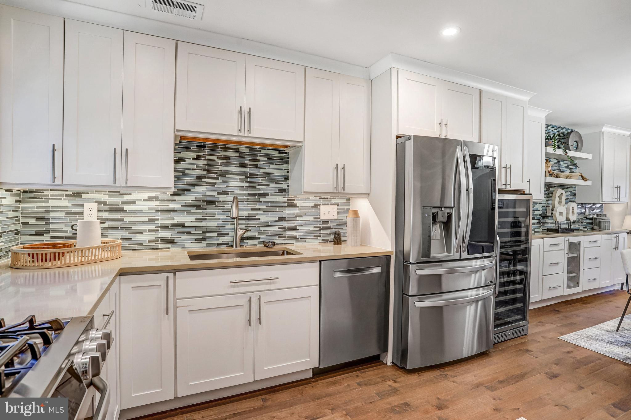 It's so easy to imagine yourself living in this stylishly updated Barracks Row beauty! Enjoy a prime Capitol Hill location convenient to shops, restaurants & metro, plus an entry-level in-law suite with bedroom, living room, full bath, kitchenette, and laundry that can be used as it’s’ own space or used as part of the main home. The lower family room features a fireplace and built-ins with French doors leading to the professionally hardscaped rear patio with TWO off-street PARKING spaces! The upper/main level features a large living room with fireplace and a wall of newly installed glass sliders leading to a brand new composite deck with stairs leading down to the back yard and parking areas. The adjacent open dining room and renovated kitchen with upscale appliances and powder room complete the second level, creating an ideal space for family gatherings and entertaining. The top floor is comprised of two bedrooms with spacious spa-like bathroom and hall laundry. New wood flooring throughout upper two levels. An abundance of outdoor space has room for two vehicles plus additional patio area for entertaining. Upgrades made within the last 3 years include new HVAC system, new roof, new front entry door, conversion of windows to new sliders in rear of house, new composite deck with accent lighting, hardscaped rear yard & parking areas, maintenance-free turf in front yard, recessed lighting, new interior doors, new kitchenette on first floor, new hardwood floors, custom stair bannisters & railings, new closet systems, removal of wall between kitchen & dining room, and entirely new kitchen.