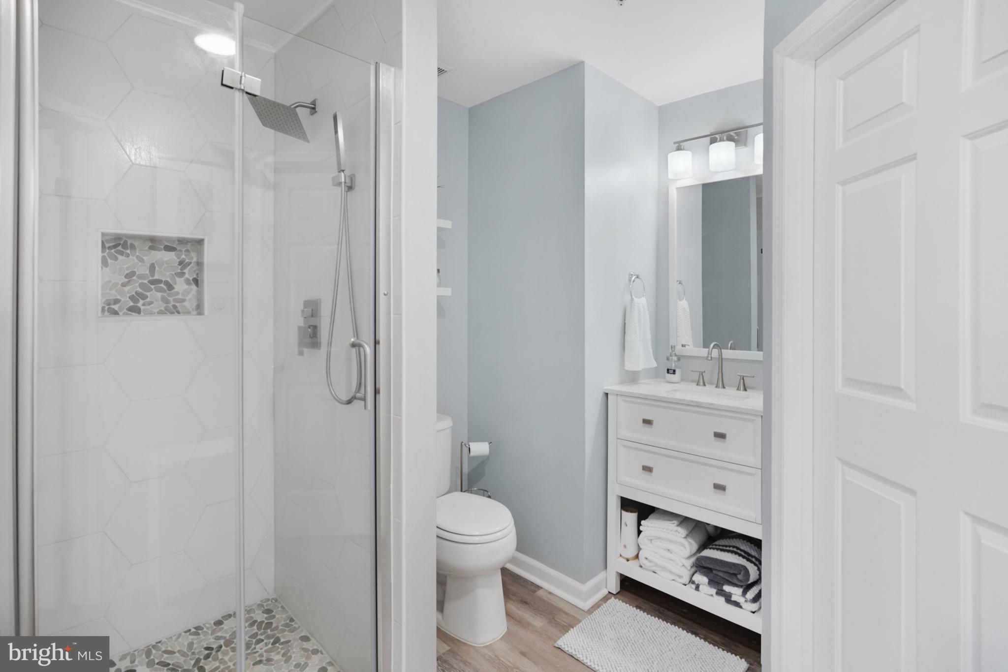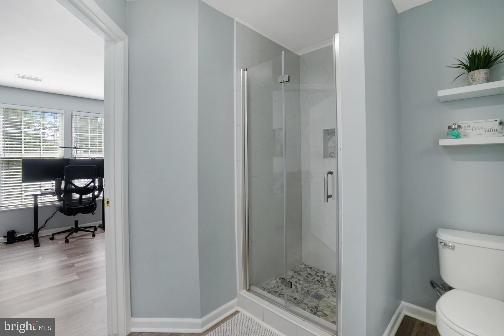 Gorgeous 1st-Floor Condo in South Meadows – Mint Condition! This beautifully maintained 2-bedroom, 2-bath condo offers an ideal blend of comfort, style, and functionality. Featuring stunning flooring, bright and airy sunroom/breakfast room, and generous room proportions throughout, this home is move-in ready. Enjoy a spacious living room with a cozy gas fireplace, an open floor plan perfect for entertaining, with the sunroom just off the kitchen, ideal for morning coffee or a home office. The upgraded kitchen includes high-end cabinetry, modern appliances, a double sink, and a built-in microwave. The layout is perfect for roommates or guests, with the expansive primary suite and second bedroom located at opposite ends of the unit for added privacy. Additional highlights include excellent closet space, full-size washer/dryer, private patio overlooking serene evergreens, and low condo fees. Nestled in the desirable South Meadows community and backing up to the tranquil Huntley Meadows Wildlife Preserve, this home offers both natural beauty and convenience. Parking: Use assigned parking space #38. This is truly a great opportunity—don’t miss it!