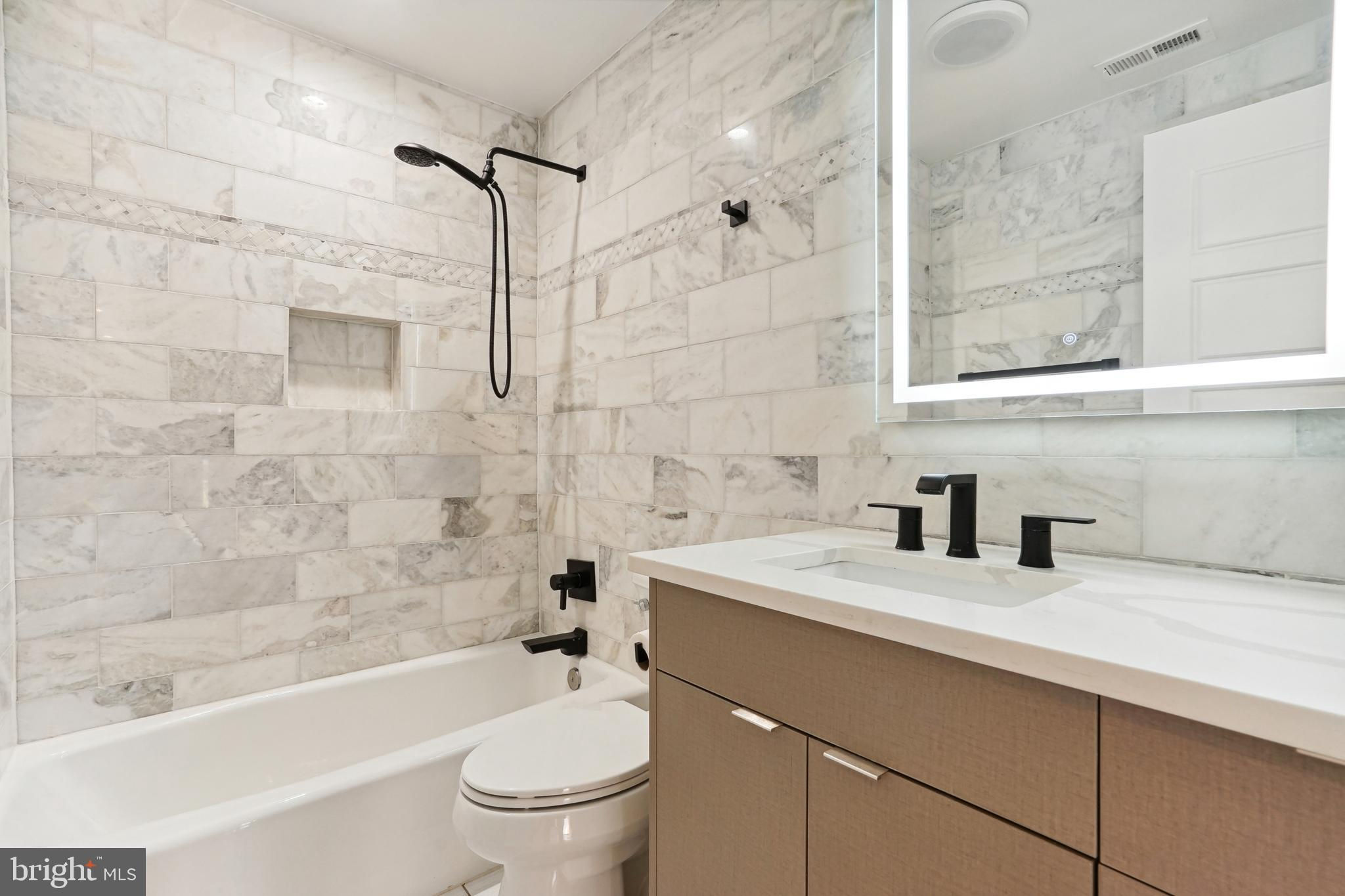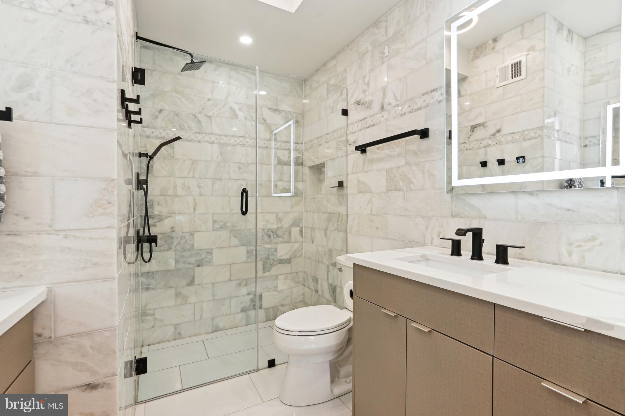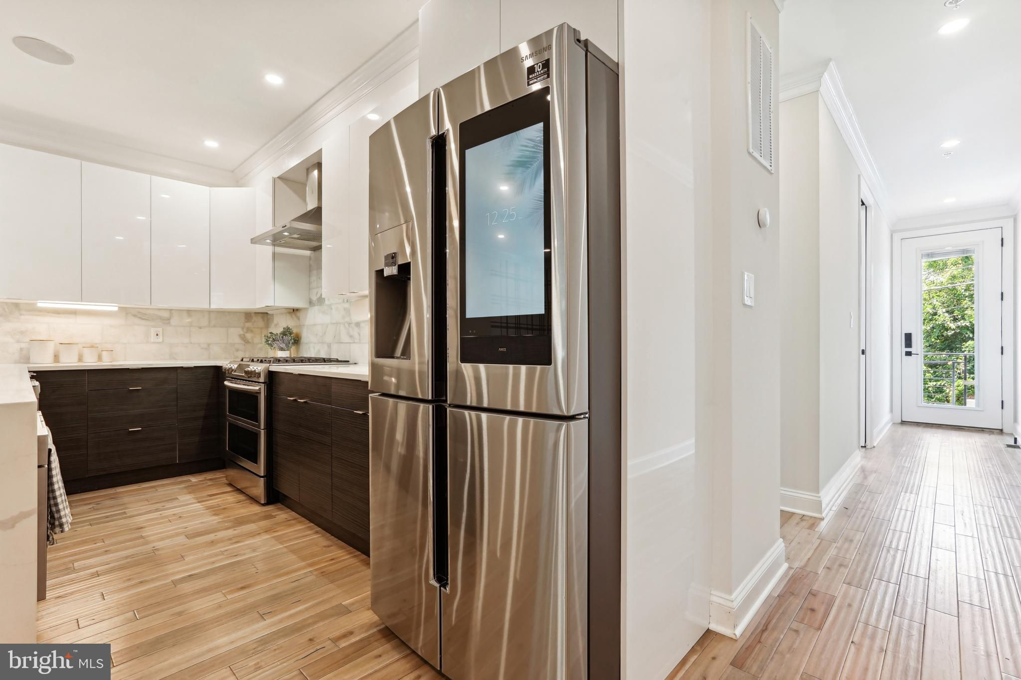 Welcome to 752 Princeton Place NW Unit 1, an urban oasis nestled between Columbia Heights & Petworth neighborhoods offering the best of both. This stunning luxury condo, newly built in 2020, offers 1981 sq feet of thoughtfully designed living space including 3 bedrooms, 3.5 bathrooms, 2 living rooms and a parking spot plus a sun-filled bonus room that can be a nursery, den, small bedroom or home office. The main level welcomes you into a bright and spacious living room ideal for relaxation and entertaining. The gourmet kitchen features a 12-foot-long peninsula island, stainless steel smart appliances, a gas stove, and Calacatta Quartz countertops. Pre-wired audio speakers create the perfect ambiance for any occasion. On the main level you will find a spacious primary suite which includes a luxurious spa-like primary bathroom, a large closet with Elfa closets system, custom electronic blackout shade and a private outdoor balcony. On the lower level you'll be welcomed into an additional living area with floor to ceiling windows, high ceilings, and tons of extra storage. There is an additional primary suite, perfect for guests or family members, along with another bedroom and a full hallway bathroom. The owners invested in an additional 4th bedroom expansion currently used as a nursery. This home is not just beautiful—it's also smartly designed for comfort and efficiency. Enjoy peace and quiet with soundproofing between all levels. Updates include a new roof, plumbing, electrical, garage door, and HVAC systems. The HVAC system is designed for each level to be an independent zone, controlled by a Nest thermostat, and includes a tankless water heater. This conveniently located residence offers a walker's paradise with a 96 walk score. Just steps away from the Georgia Ave-Petworth metro, this location is also among local favorites such as Call Your Mother, Doubles Coffee, Hook Hall, delicious dining options like St Vincent, Sonny's Pizza, Menya and a plethora of other shopping options for daily errands and groceries. This home epitomizes modern urban living at its finest. Don't miss your chance to experience luxurious living in one of DC's most vibrant neighborhoods. Schedule your showing today!