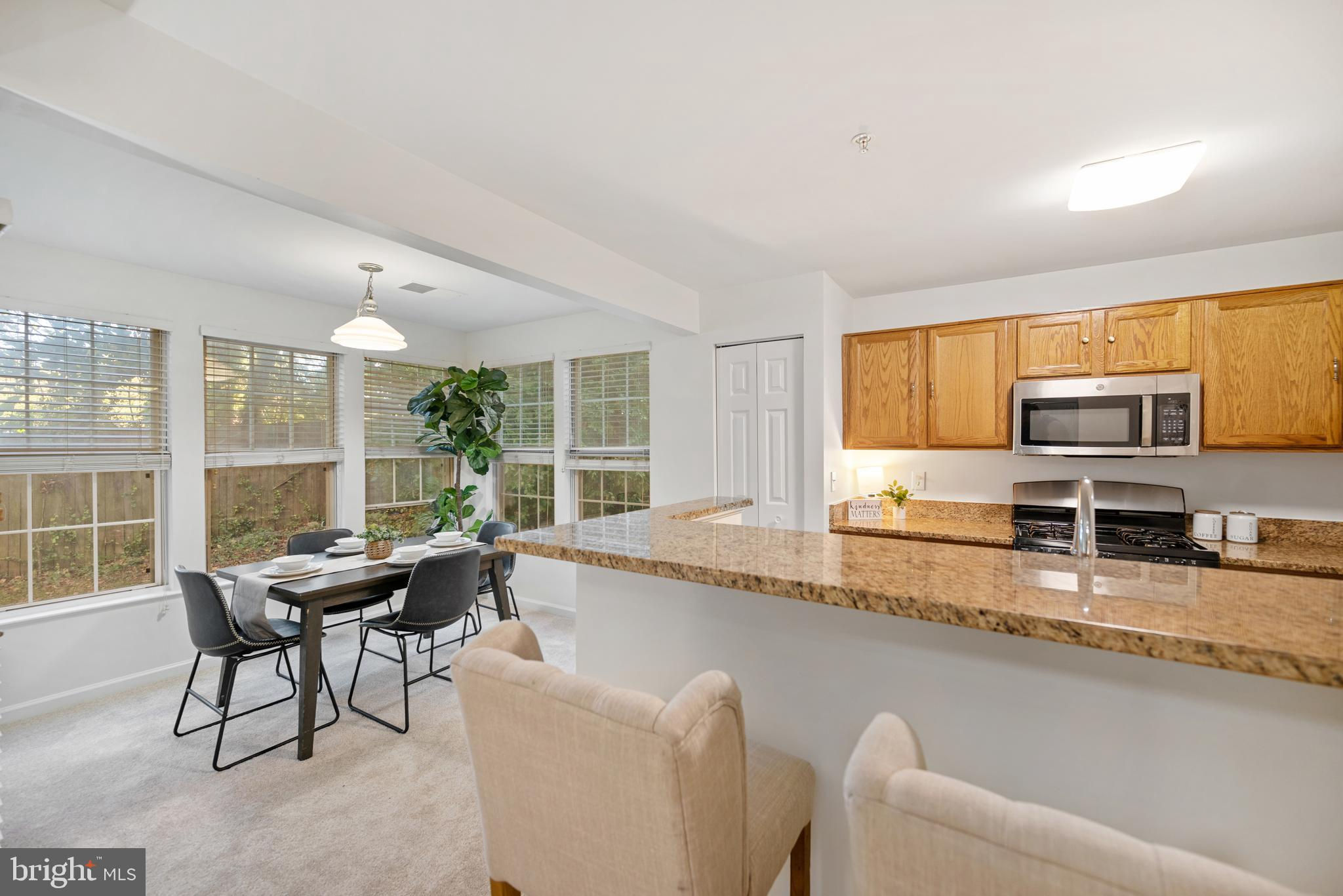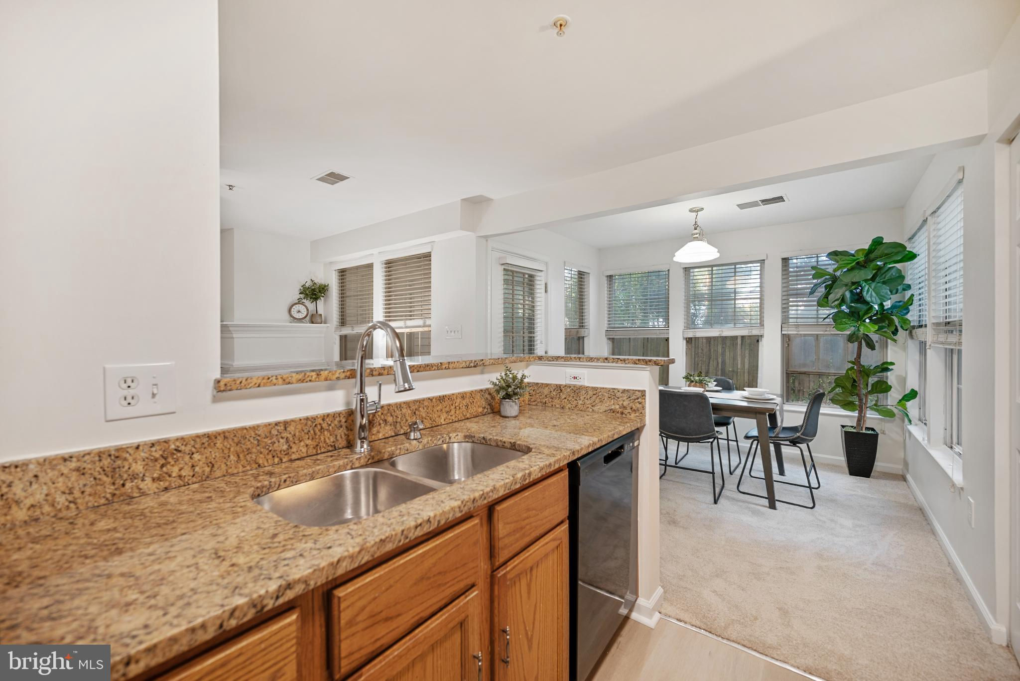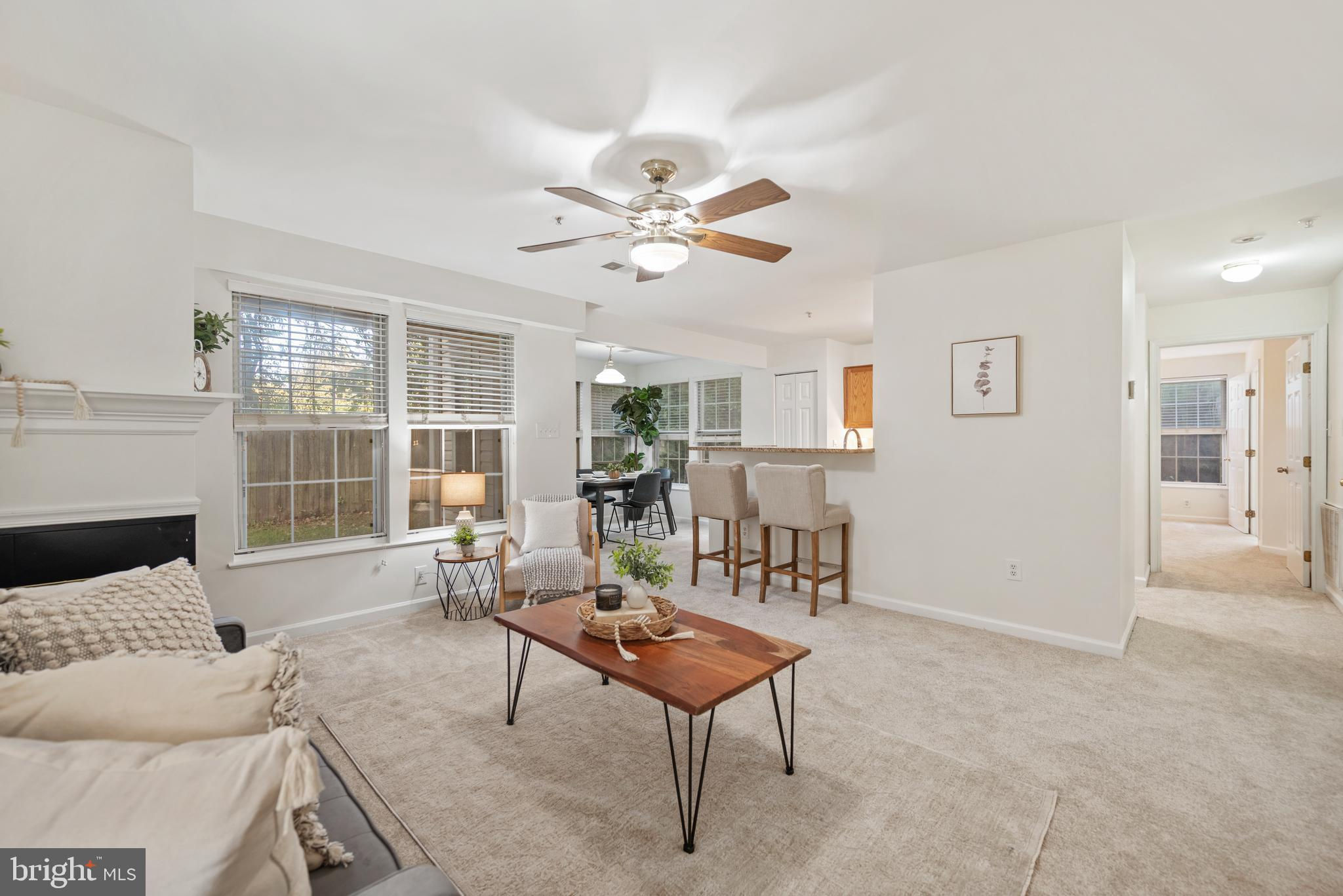 Welcome home! This lovely two bedroom condo offers an open floorplan flooded with abundant natural light for a comfortable one-level living experience. Inside the kitchen you’ll discover plentiful rich wooden cabinetry and sleek granite countertops.A peninsula breakfast bar opens into the sunny dining area, framed by wall-to-wall windows, and the spacious living room, centering on a cozy gas fireplace. This open layout is ideal for both everyday living and effortless entertaining! Plush carpeting leads to an expansive primary bedroom suite with ample closet space and a private attached bathroom. The second bedroom serves equally well as a guest room or home office, with access to the second full bathroom. Convenient in-unit laundry adds everyday ease. Step outside to a covered patio that opens into a grassy common area surrounded by mature trees and fencing for privacy and shade. Enjoy community amenities including an outdoor pool and playground, plus you’ll be less than a half-mile to Mount Vernon Plaza where you’ll find Shoppers Food, Home Depot, McAlister’s Deli, Coldstone Creamery and more! Only minutes to Springfield Town Center, Huntley Meadows Park, Fort Belvoir, and The Pentagon. Quick access to I-95, Route 1, I-495, GW Parkway, and Franconia-Springfield Metro Station for easy commuting and traveling around the DMV. Schedule a private tour of your new home today!