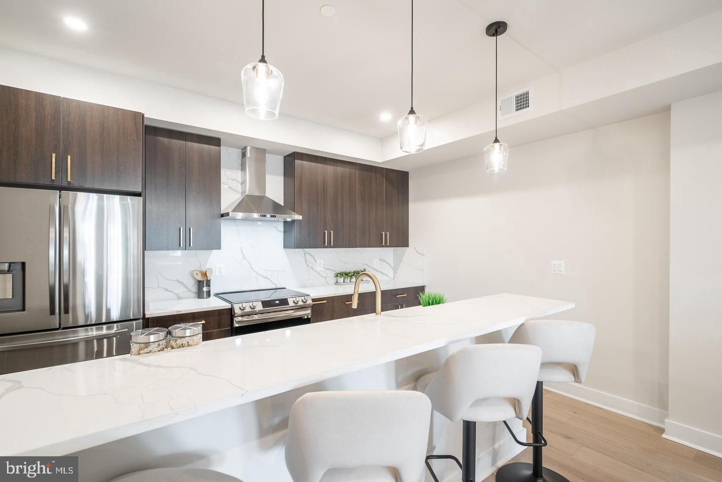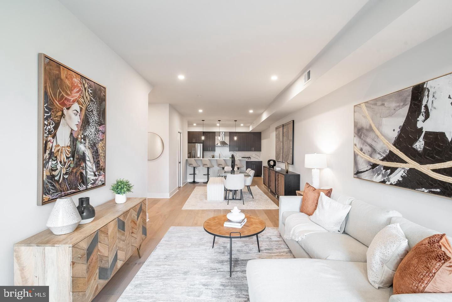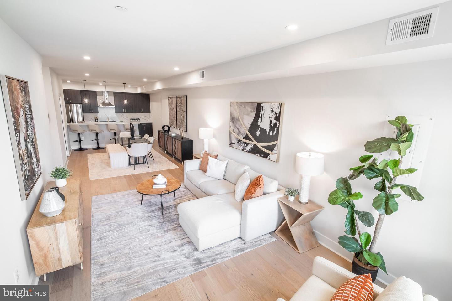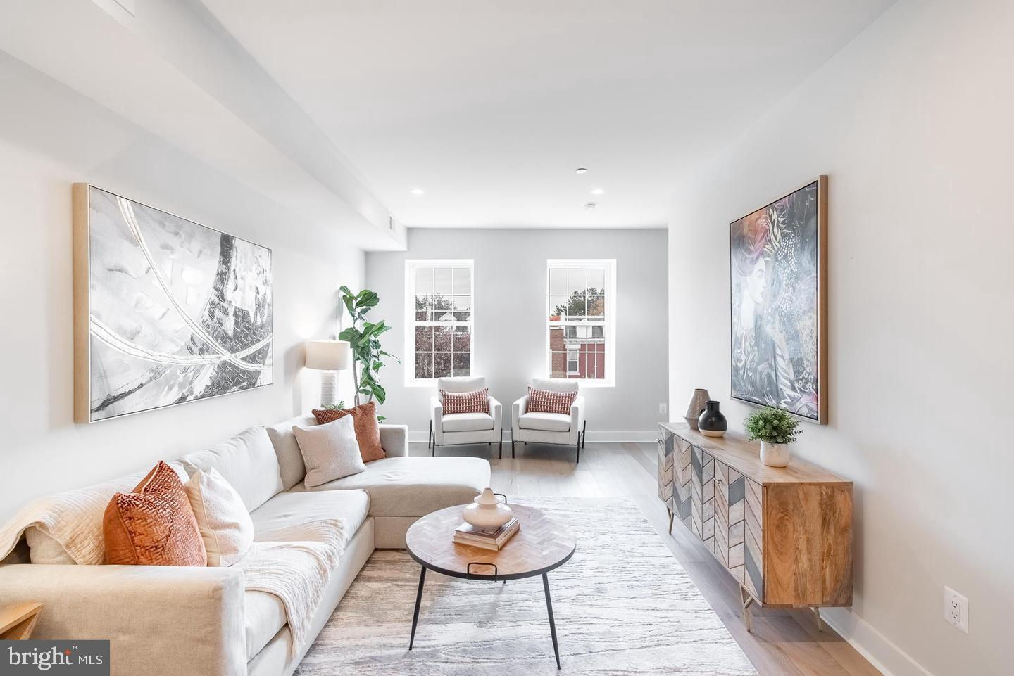 *Last Penthouse Floorplan Available* Welcome to 755 Columbia Rd NW - A brand new luxury condominium minutes from the heart of Columbia Heights! Step inside this one of a kind penthouse unit and experience luxury at every turn. The modern two-tone kitchen is a true masterpiece, boasting deep brown cabinets, white quartz countertops, and top-of-the-line stainless steel appliances. Whether you prefer dining at the breakfast bar or in the adjacent dining room space, this kitchen is perfect for both practical everyday cooking and entertaining guests. The condo offers two generously sized bedrooms, both capable of accommodating king-size beds, ensuring ample space for comfort and relaxation. Additionally, there is a versatile bedroom/den that can also be used as a library, office, or personal fitness area, providing flexibility to suit your needs. The secondary bedroom features a private balcony, perfect for enjoying a morning coffee or a good book. Prepare to be captivated by the primary bathroom, a true oasis of tranquility. Featuring an oversized shower with two rain shower heads, a luxurious soaking tub, and large double vanities with tons of counter space, it offers a spa-like experience in the comfort of your own home. The condo also includes a designated laundry/mud room, something you rarely find in new construction these days. Spanning across 2063 square feet, this impeccable residence provides a spacious and open-concept layout. With high ceilings and large windows, the space is filled with natural light, accentuating the luxury finishes that adorn every corner of this extraordinary condo. Located next to the Bruce Monroe community park & garden, a short walk to the metro station and a few blocks from downtown 14th and U Streets. You'll have convenient access to a vibrant dining scene, plenty of shopping options, entertainment and centrally located for commuters. Parking is available for purchase, and it operates on a first-come, first-served basis.