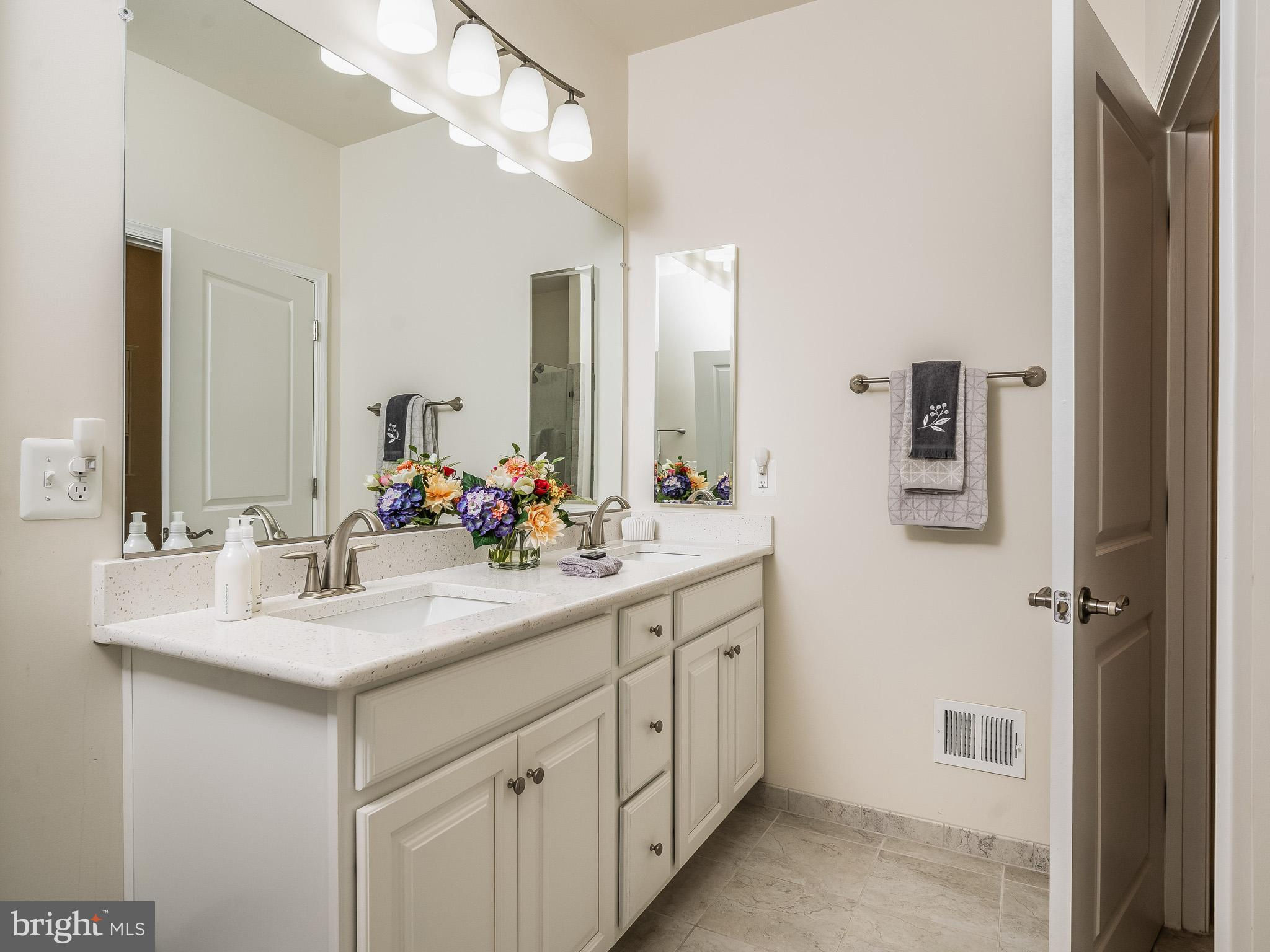 Over 55? Thinking of moving to a delightful, well located, full of amenities over 55 community? Consider this three-finished-level, upgraded throughout, single home with two car garage in The Crest and the only floor plan in the community with a main level primary suite as well as a second primary suite on the upper level!!!! The front porch offers a gracious welcome which is enhanced in entering the great room: wonderfully light filled via numerous large windows, nine-foot ceilings, well designed space: living room with cozy gas log fireplace flowing into the gourmet kitchen (stainless appliances, granite counter and island tops, double oven, gas cooking, ceramic back splash, built in microwave, soft close cabinetry, +++) and dining space beyond. Perfect for whipping up a meal while still a part of the activities. Best of all on this level are the primary bedroom suite including multiple closets (one walk-in) and large bath with walk-in shower (three shower jets, bench, grab bar) and dual sinks; powder room; and the very generous sized mud/laundry room with convenient chore sink and direct access to the totally upgraded garage (sealed/decorative flooring and wall organizer). In other words TRUE one level living. Up the stairs are a TV/family/gathering room; three bedrooms, one of which is very generous sized with a walk-in closet and ensuite shower bath (the second primary bedroom suite); hall bath with tub and dual sinks; large storage room for those only occasionally utilized treasures. Lower level includes a huge recreation/media room with second gas log fireplace and space for a game area; den/at home office/exercise room; second large storage room; importantly: exterior egress. This fabulous house has so many extras not apparent to the naked eye such as hardwired internet extension system, Gutter Helmet guards and hardwater treatment system. All of this in the exceptional Crest of Alexandria community just down the road from the Hilltop Village Center Shopping Center with a great variety of restaurants, shopping and services. Even a Wegman’s. What more could one ask for? How ‘bout easy access to military amenities like at Fort Belvoir only a few minutes’ drive away. Franconia-Springfield Metro stop less than 2 miles. Hard to get better connected than this. Plus Huntley Meadows Park a short drive as well for hiking and exceptional bird watching. The Crest community provides a 5,546 square foot community center with living and dining area, cafe/bar area, small kitchen, yoga room, well-equipped gym, outdoor grill, patio and garden area, and a fire pit. Additionally, there are walking trails, Pickleball Courts, Picnic Shelter, four outdoor exercise stations; rest and reflection benches are positioned along the trail.