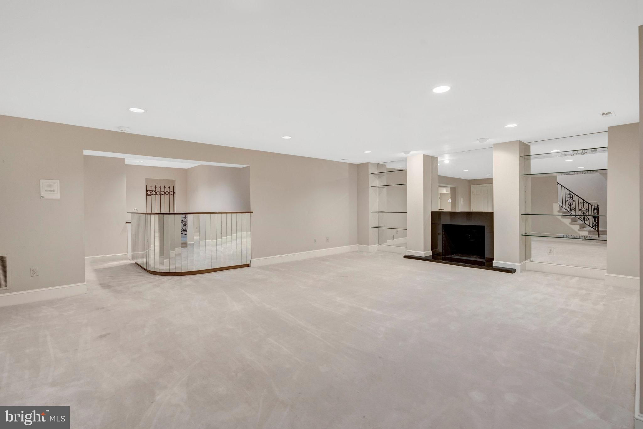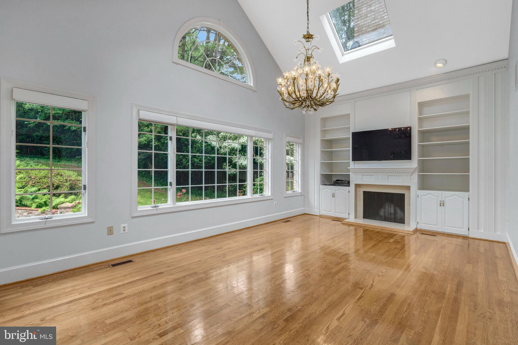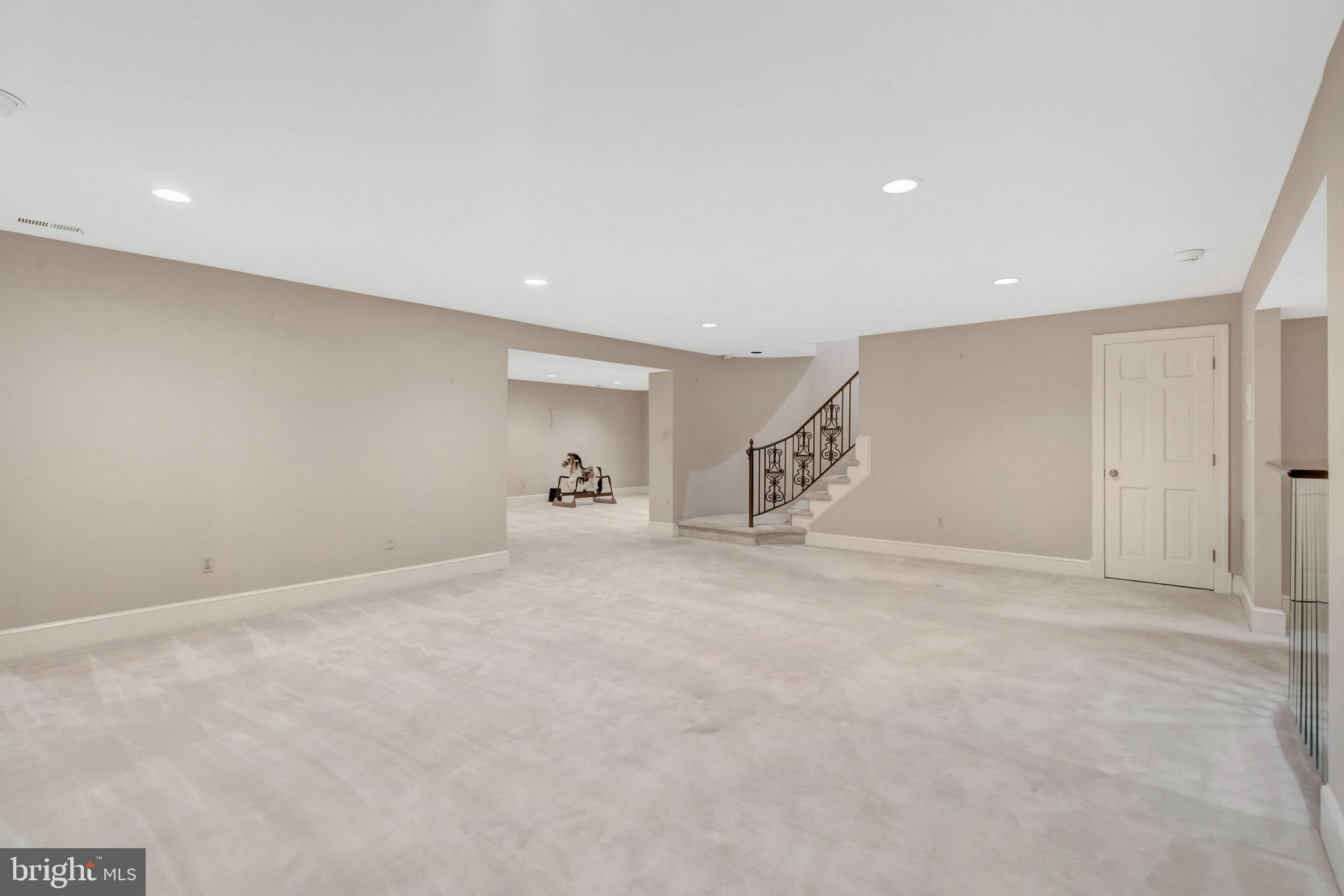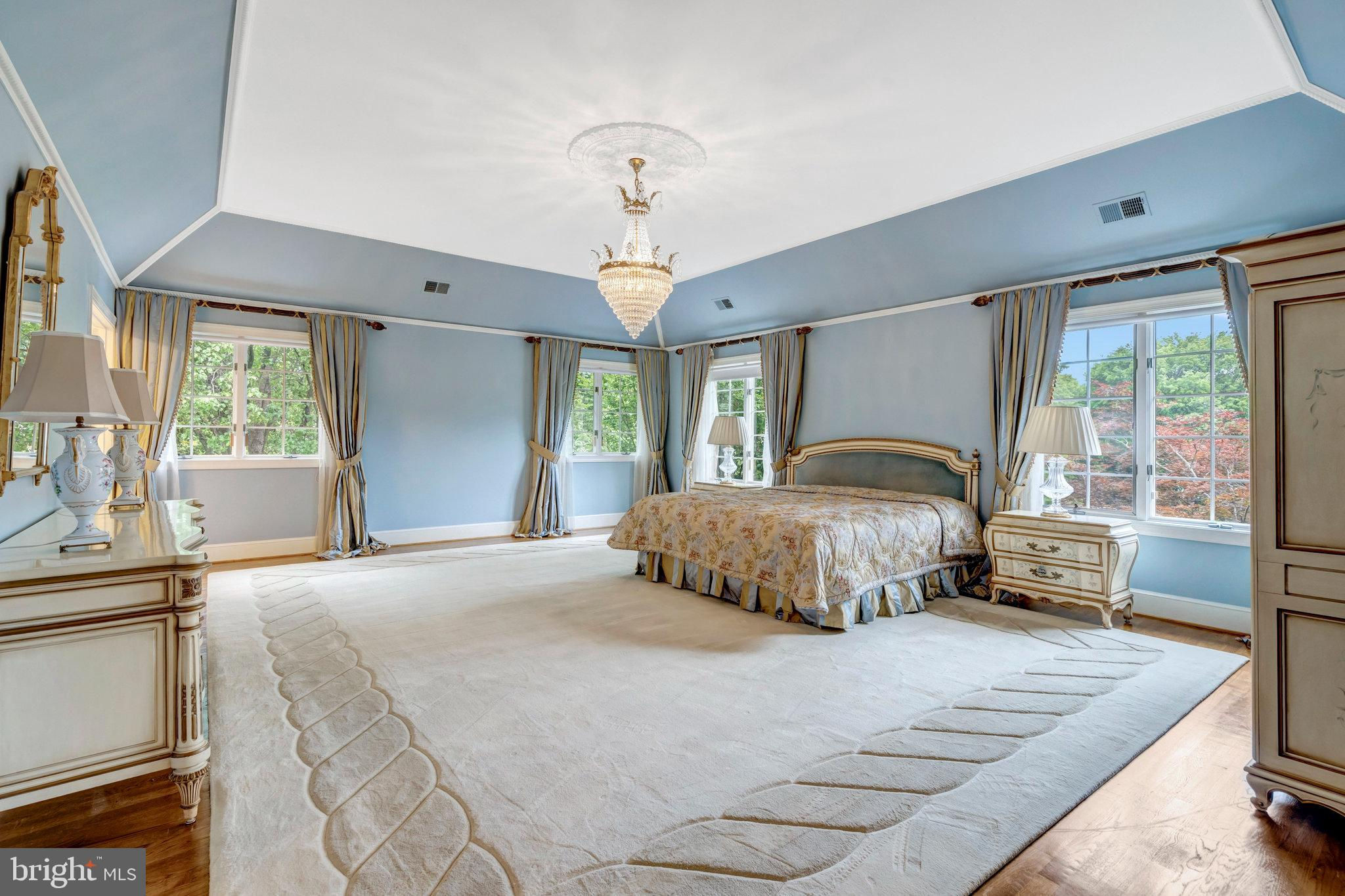 Nestled on nearly a full acre of beautifully landscaped grounds, this exquisite brick colonial offers 7672 square feet of luxurious living space. This is an exceptionally well built and beautifully maintained home by the original owner, very light and bright. The circular drive is flanked by stately brick pillars with outdoor lighting, and a side-load 3-car garage. The double front doors open to a welcoming 2-story marble foyer with a dramatic central staircase. Elegant panel wainscoting, and gracefully arched doorways mirror the shape of the large, beautiful arched transom windows. Just off the foyer, large wooden double doors open to a handsome library with hardwood floors. Chestnut-colored built-in bookshelves and cabinetry are bathed in natural light from two large, beautiful, arched windows. Across the foyer, a spacious powder room boasts marble floors and a stunning marble vanity, adding a touch of opulence. The family room features a gorgeous, stone, woodburning fireplace, hardwood floors, recessed lighting, crown moulding. A large glass door opens to the rear patio. The formal living room is exquisite, with soaring 2-story windows, hardwood floors, an elegant fireplace, and charming doorways. The dining room is equally refined, with its own set of arched doorways, hardwood floors, and exquisite mouldings, making it ideal for entertaining in style. The gourmet kitchen is stunning. It features elegant antique white cabinetry including an integrated panel refrigerator. The gas stove is a Dacor with 6 burners. The jet-cut marble mosaic backsplash adds an artistic touch. There is a second oven in the island, plus there is a built-in microwave and trash compactor. Marble countertops and diagonally laid marble floor tiles harmonize beautifully with the cabinetry. The sunny breakfast area features a vaulted cathedral ceiling and 2 skylights. A large window and a large cozy window seat overlook the back yard. An arched window lets more light onto the upper level. An additional staircase leads from the kitchen area to the primary bedroom. Connecting the kitchen to the garage is a convenient mud room/laundry room with a pantry closet, new GE Profile washer and dryer, a sink, and ample cabinetry. The sun room features hardwood floors, a cathedral ceiling, 2 skylights, and a marble fireplace between built-in cabinetry and shelving. A large glass door leads to the expansive rear patio, perfect for enjoying the serene surroundings. The upper level has hardwood flooring throughout, featuring the primary suite plus four additional generously sized bedrooms, a jack-and-jill bath with a double vanity and water closet, a hall bath, and a sitting area. The bathrooms feature elegant wallpaper, stylish light fixtures, and a skylight in the hall bath. The enormous primary bedroom features a dramatic cove ceiling and a walk-in closet with custom shelving. A luxurious en-suite bathroom with a double vanity, a bidet, and jetted corner tub with picturesque windows. The lower level is quite large and completely finished, with neutral wall to wall carpeting, neutral walls, and recessed lighting. There is a rec room, game room, den/potential 6th bedroom, a full bath with a bidet, and utility rooms. In the rec room there is a fireplace flanked by built-in mirrored shelving, a granite wet bar with a mini fridge, and a wine room. The expansive treed back yard offers privacy and relaxing views, perfect for a pool. The giant 1400+ sq .ft. Flagstone patio wraps around and is accessible from multiple rooms on the main level. This fabulous patio is particularly picturesque and perfect for parties. The spacious garage features a built-in refrigerator, built-in storage cabinets, and automatic door openers. There is an indoor-outdoor intercom system that conveys as-is. Located on quiet cul de sac of 20 estate homes, with convenient access to Tysons, DC, Reagan National Airport, Dulles, Silver Line Metro, Great Falls Park, and Langley Schools.