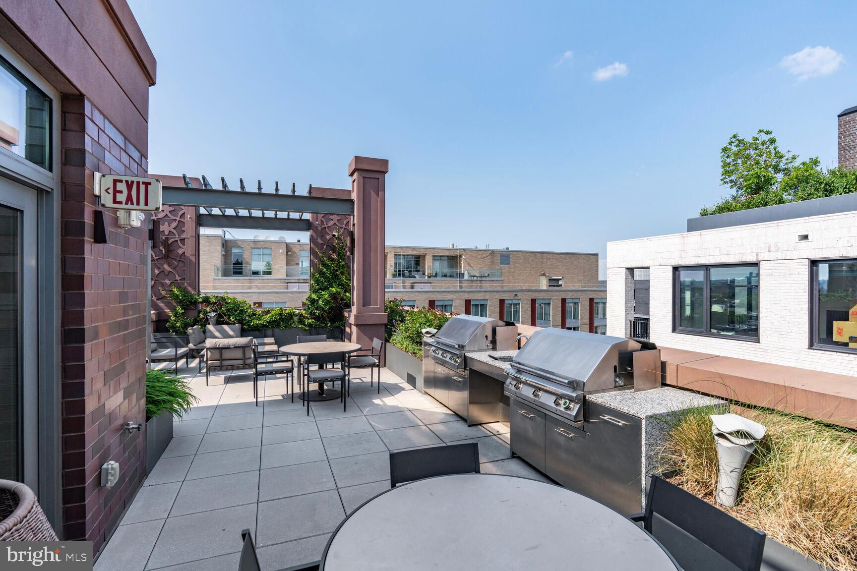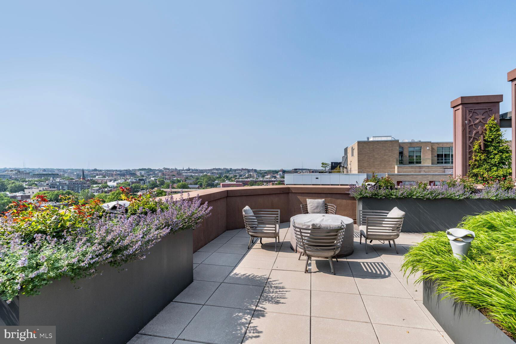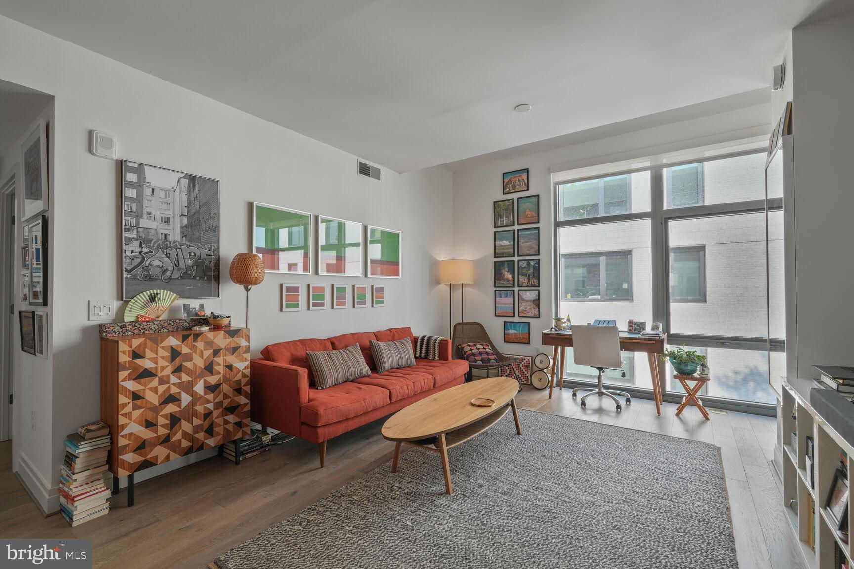 Welcome to The Perla, a beautifully designed two-bedroom, two-bath residence completed in 2020 in the heart of Shaw. This home offers high ceilings, oversized windows, white oak floors, spa-inspired Porcelanosa baths, and a modern kitchen with Thermador appliances, quartz countertops, and Italian cabinetry. The primary suite has been thoughtfully converted into a bright art studio, providing flexibility for your lifestyle. A private balcony extends from the living area, while the rooftop sky lounge and terrace showcase panoramic views of the city. Monthly dues include heating, air conditioning, hot water, and gas, as well as access to bike rooms with a repair/wash station. One garage parking space conveys, with additional spaces available for rent. LEED Gold-certified, The Perla offers contemporary luxury, sustainability, and convenience just steps from the Metro, acclaimed restaurants, and all that Washington, DC has to offer.