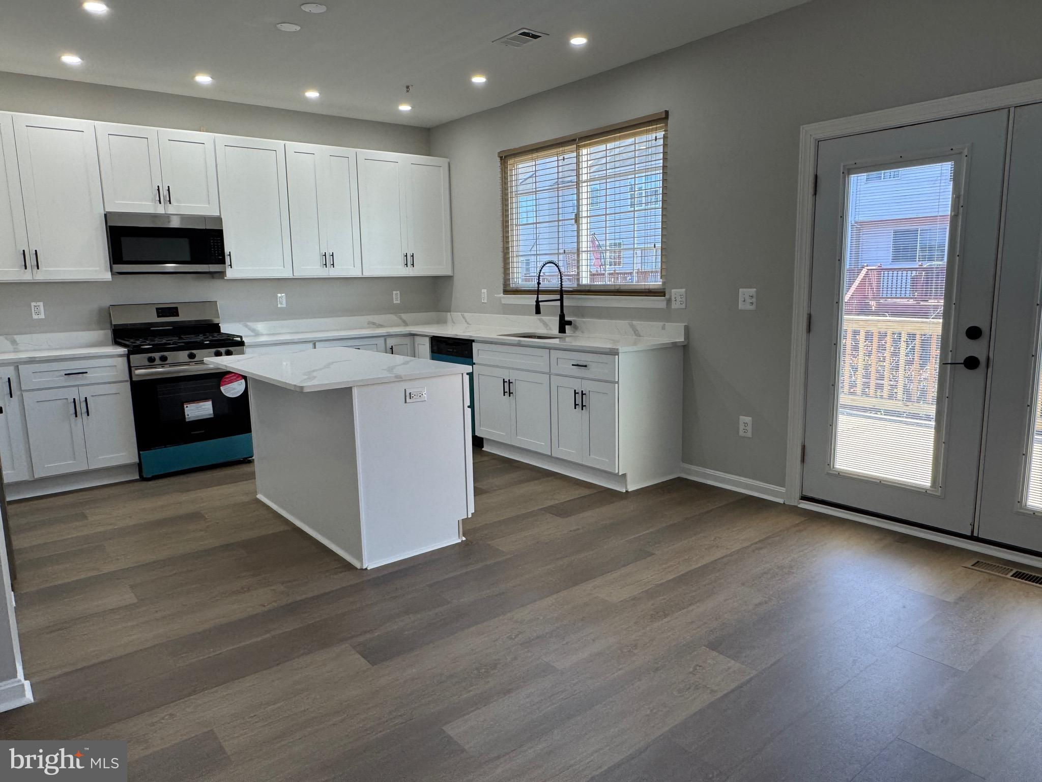 Beautifully renovated garage townhome in desirable Russett! Lower walkout (entry) level has a garage, half bath and family/living/rec room. The main level features another half bath, a stunning gourmet kitchen with white, soft close cabinets, quartz counters and stainless appliances. Open concept living area, great for entertaining! Brand new deck! Upstairs there are 2 generous sized bedrooms and a full bath. The Primary Bedroom has a large walk in closet, an En Suite with a double vanity, soaking tub AND a shower! The upper level also has a laundry room! New LVP and carpet throughout. This one won't last!