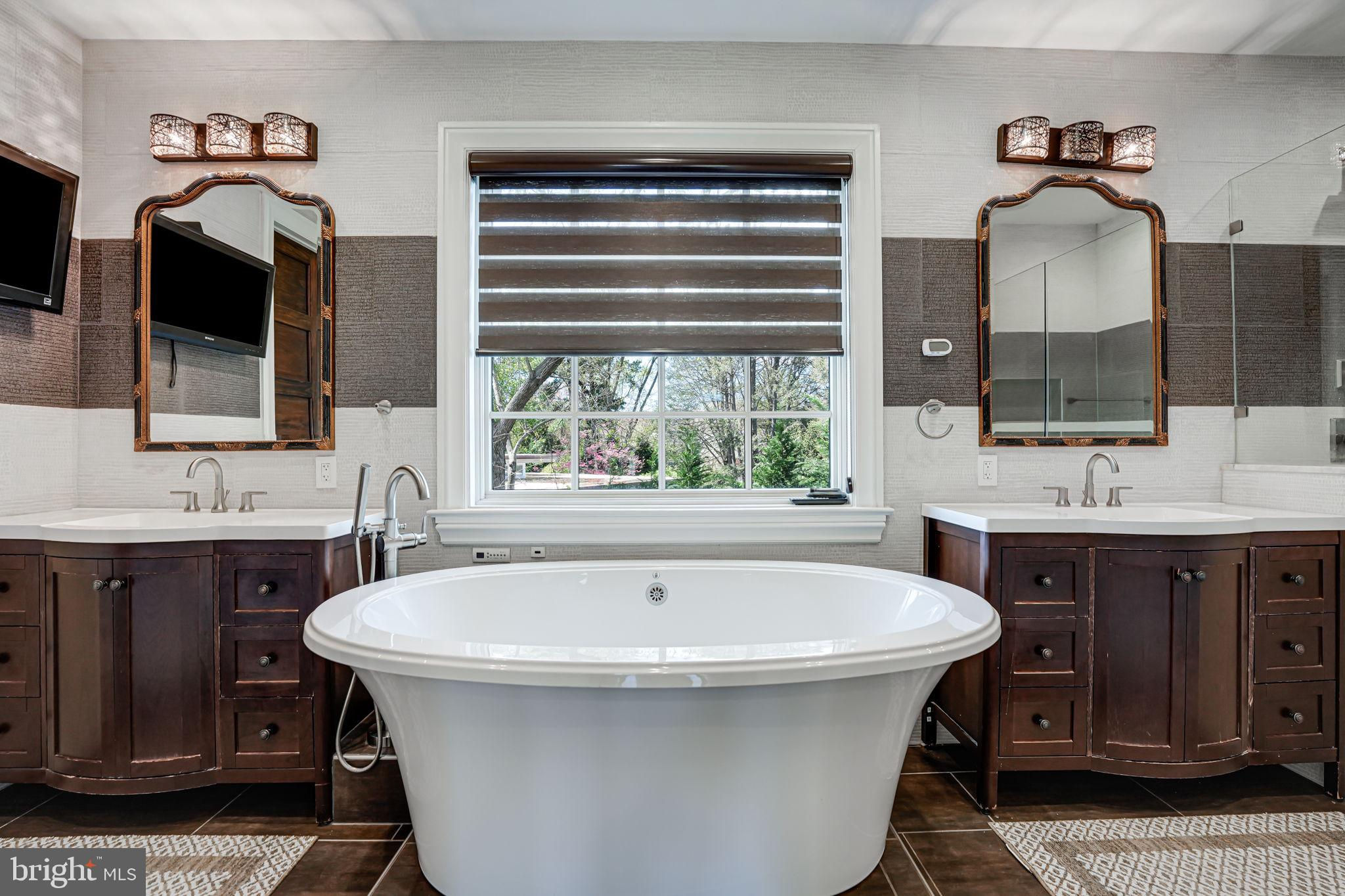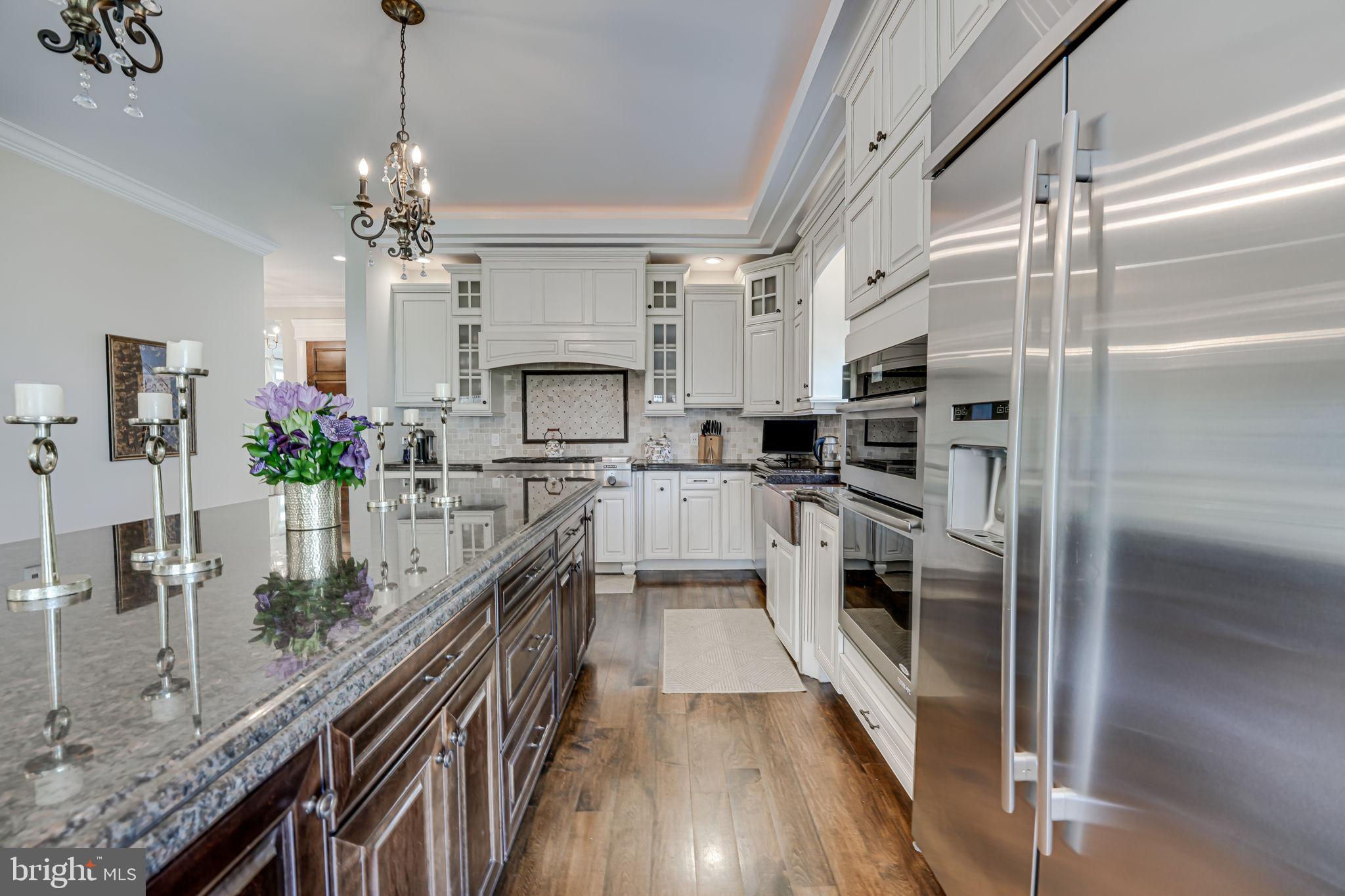 "Welcome to your oasis of tranquility, where impeccable design meets natural beauty in this exquisite 5-bedroom, 6-full bath 1- 1/2 bath home. Situated in a coveted community, this residence offers a harmonious blend of luxury living and outdoor splendor. Sought after Mclean Hamlet! Corner Lot! Approaching the home, you're greeted by immaculate landscaping that sets the stage for the breathtaking beauty that awaits within. Meticulously manicured lawns, lush gardens, and colorful blooms create a picturesque setting that enchants at every turn. Step inside to discover a world of refined elegance, where the seamless flow of indoor and outdoor spaces invites you to relax and unwind. The gourmet kitchen, adorned with upgraded countertops and Jenn Air stainless steel appliances, overlooks the stunning backyard, providing a picturesque backdrop for culinary adventures. Entertain guests in style in the spacious living and dining rooms, or retreat to the cozy family room off the kitchen for more intimate gatherings. A main floor office offers a quiet sanctuary for work or study, ensuring both productivity and privacy. The master suite is a luxurious retreat, boasting a spa-like ensuite bathroom with exquisite tile floors and a soaking tub, offering the ultimate in relaxation and rejuvenation. Outside, the allure of the landscaping continues with two decks (trex decks) (one off the main level kitchen and one off the master bedroom. Above ground Basement level walks out to a patio and greenery. Additional highlights include a finished above-ground lower level with a wet bar, a two-car attached garage, and custom finishes throughout. 8 feet solid wood custom doors, 5 in Maple wood flooring on main and upper level. Spanish marble in Living and Dining Room. The lighting and sound system can be operated through your smart phone. Built in speakers throughout the home. (2) 120 gallon hot water heaters. Located in a desirable community and offering an array of upscale amenities, this immaculate home is the epitome of luxury living.