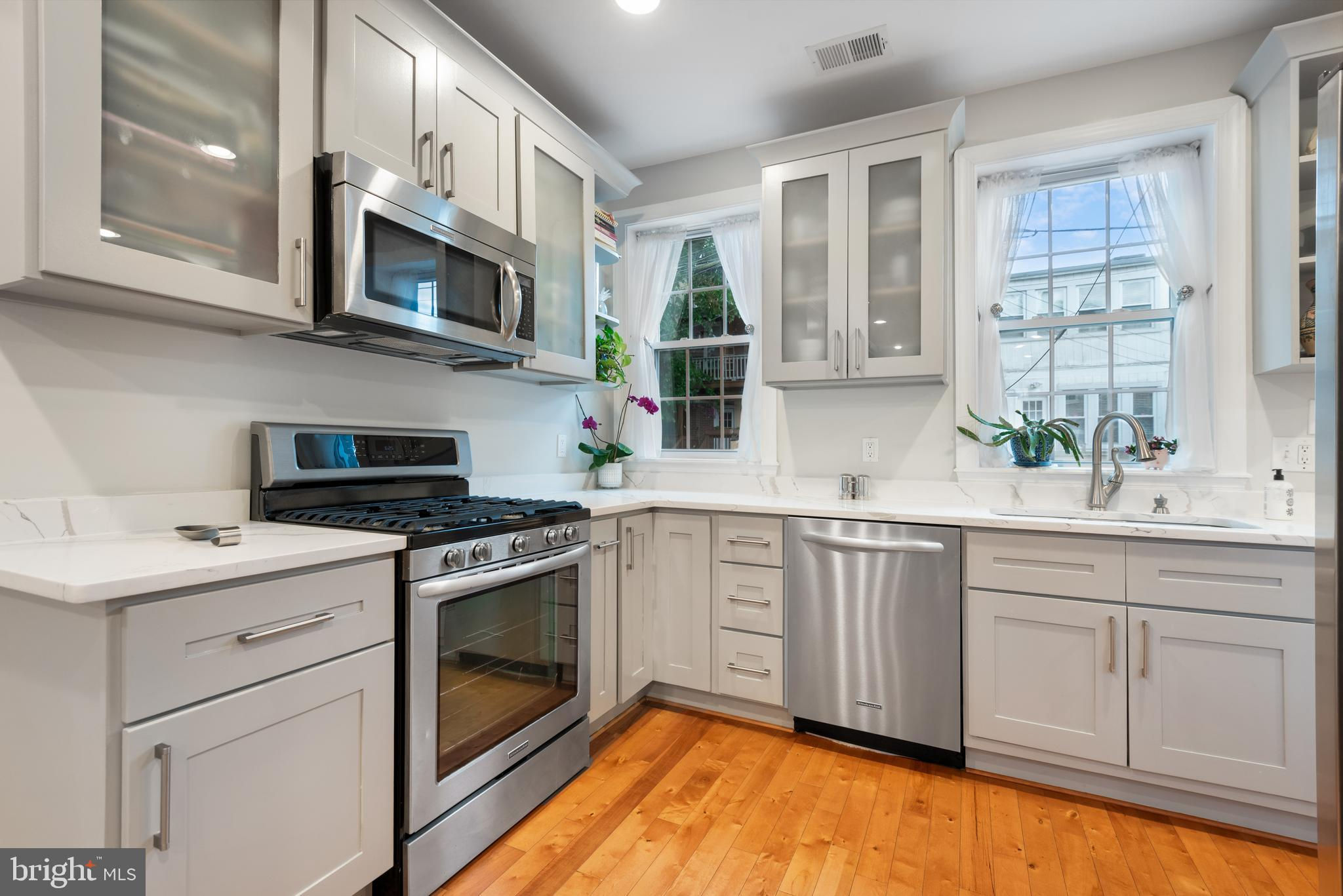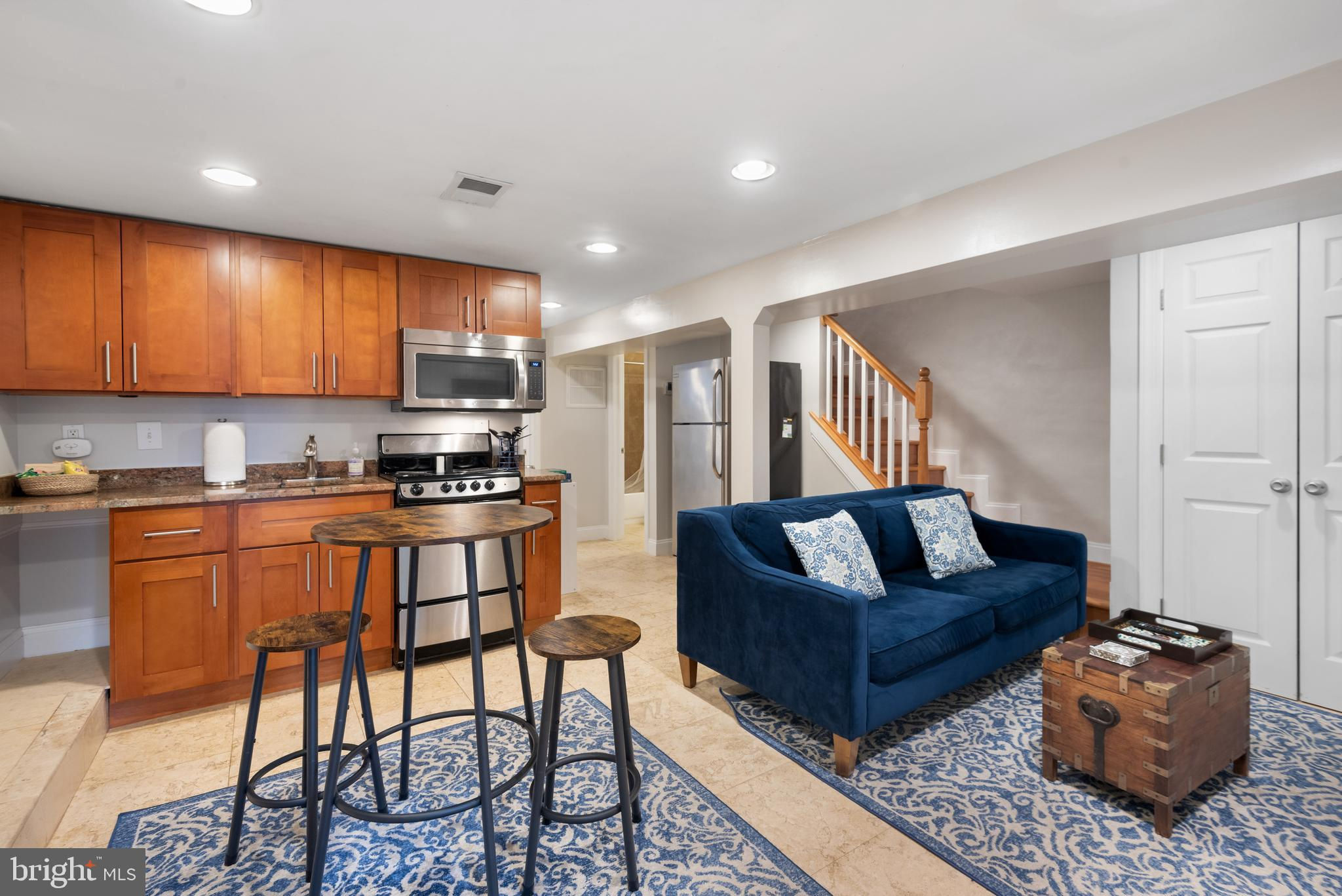Welcome to this exquisite 5 bedroom 4.5 bath rowhouse with parking, patio, porch, and perfection. With a fully outfitted lower level suite with front and rear separate entrances, full kitchen, bedroom, bath, w/d, separate a/c and tankless water heater you can share it with your Airbnb guests, your adult kids, in-laws, visiting friends, whatever suits the moment! The current owner uses it as a SUCCESSFUL & PROFITABLE short- term rental and is happy to share all her numbers and knowledge! Situated on a quiet one-way block curb appeal abounds with its welcoming front porch. Open the front door and be greeted by an open floor plan delineated by graceful arches, beautiful crown moldings, and hardwood floors throughout the upper 3 levels. Exposed brick enhances the wonderful ambiance of this home which is flooded with natural light. This main level is perfect for relaxing evenings at home or entertaining and preparing for those guests with its upgraded kitchen, large pantry, coat closet, and 1/2 bath with a beautiful new marble-top vanity. As you arrive on the second the level, the splendid primary bedroom welcomes you with a graceful double door entry, an enormous walk-in closet with built-in shelving and an elegant ensuite marble bath that features a spacious shower with built-in seating and lovely dual vanity sinks. The nicely sized additional 2nd floor bedroom also offers an ensuite bath with tub. The first of 2 washer/dryer is conveniently located the hallway on level 2. But wait, if you prefer, the third level can be a primary all to itself with a large bedroom, bath with tub, and additional office/den bedroom space, plus a flexible storage area that could be converted to living space, for whatever you choose. This meticulously maintained home was fully gut renovated in 2012 with more recent upgrades including: Newer roof (2018), new kitchen counters & repainted cabinets (2020), custom blinds (2021), marble primary bathroom, and newer exterior (2021), interior paint (2020), and soundproofing in the basement (2016). This house truly checks all the boxes. This home functions beautifully with dual zoned HVAC & 2 tankless water heaters. Settle in and enjoy all of this while still being walkable to loads of city living amenities. 824 Otis Place is 2 blocks to Petworth Metro and short walks to Safeway, Call Your Mother Bagel Shop, Yoga Heights, The Midlands & Hook Hall Beer Gardens, and all the lounges and restaurants on 11th St in Columbia Heights.