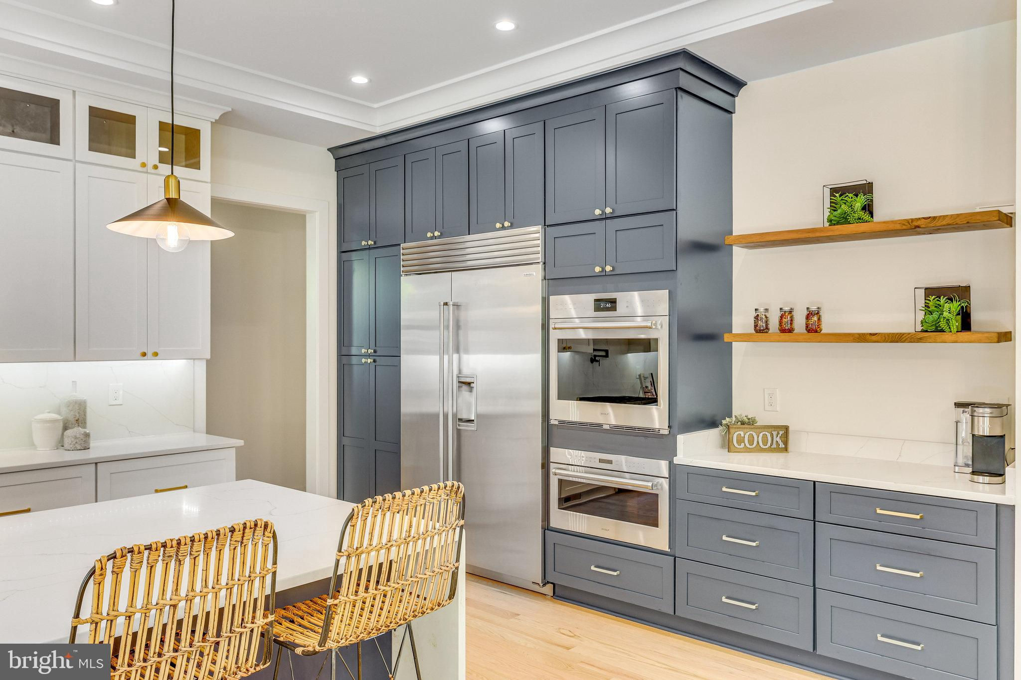 Experience unparalleled luxury in this magnificent 7,000 square foot residence boasting 5 bedrooms and 5 - full and 2 - ½ baths, meticulously crafted with the finest attention to detail. Nestled on a ½ acre lot in a prime location near Great Falls village. Indulge in the epitome of modern living with sleek design, premium construction materials and an array of amenities, all within a tranquil environment. Step inside to discover lofty ten-foot ceilings, grand eight-foot-tall doors, and premium hardwood flooring throughout. The oversized, side entry, 2 -car garage provides two 50 AMP outlets for EV Chargers. Enter through the custom double entry front door into a gracious Foyer, where you’ll find an inviting office and elegant Dining Room, complete with a nearby Butler’s Pantry for effortless entertaining. At the heart of the home lies the Family Room, adorned with a gas fireplace perfect for cozy evenings with loved ones. Adjoining the Family Room is the gourmet kitchen and casual dining area, where expansive windows and doors seamlessly connect indoor and outdoor living spaces, leading to the patio and pool area. The gourmet Kitchen is a chef’s delight, showcasing a commanding center island, quartz/waterfall countertops, and top-of-the-line appliances including a Wolf 6- burner gas range, Sub-Zero refrigerator, double dishwashers, and a convenient microwave drawer, complemented by a spacious walk-in pantry in the adjacent mudroom. Upstairs, retreat to the luxurious Owner’s Suite, featuring a cozy sitting area, two expansive walk-in closets, and a convenient wet bar. The spa-inspired Owner’s Bathrooms boasts an oversized frameless glass shower, freestanding tub, double quartz-topped vanities, water closet and exquisite herringbone marble floors. Three additional upper-level Bedrooms each offer ensuite baths and walk-in closets, while a generous Laundry Room with utility sink, cabinets and hanging space adds convenience. The epitome of luxury living continues on the Lower Level, designed for entertainment and relaxation, with a Recreation Room, Ensuite Bedroom with full bath and walk-in closet, Media Room, Gym and Powder Room. A wet bar with seating completes the entertainment space, ideal for hosting gatherings. This home is a true entertainer’s paradise, offering a private sanctuary to unwind and work in opulent surrounding, all within the enviable setting of Great Falls.