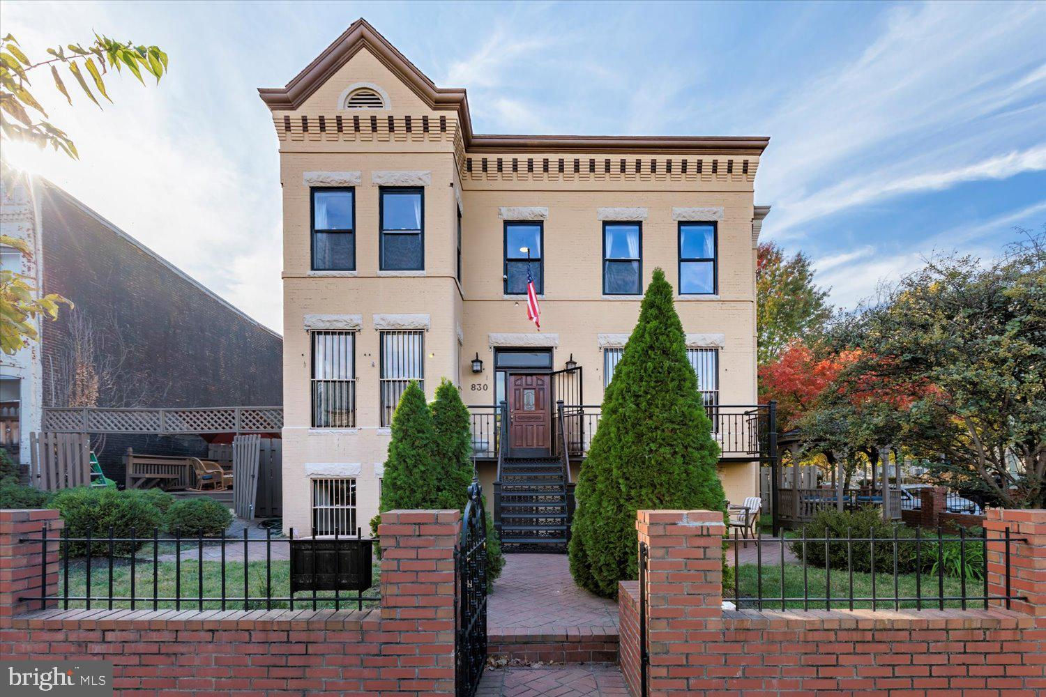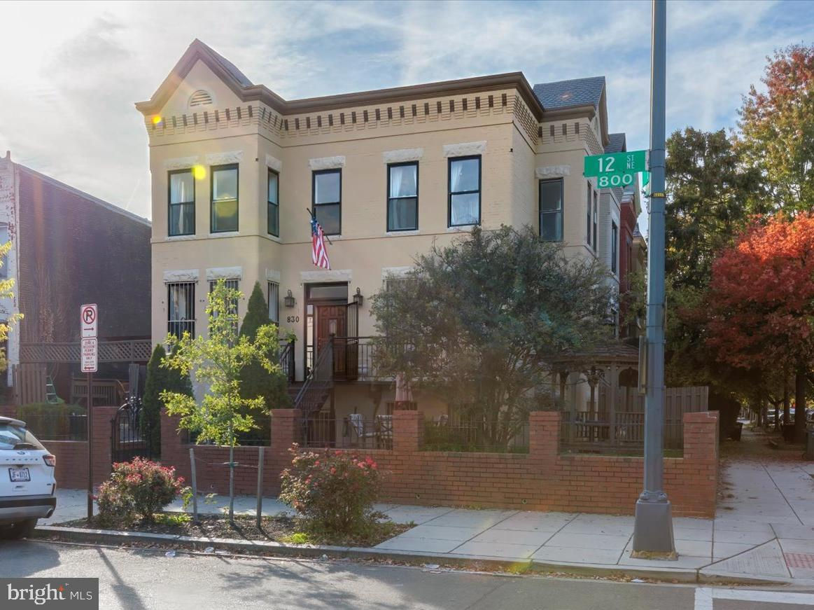 Welcome to 830 12th St NE - Built at the turn of the last century, this light-filed corner manse has been thoughtfully updated while keeping many original details intact. Live life on a grand scale in this 4+ bedroom house spread over 3 stories plus a corner and rear yard for amazing outdoor living/entertaining. The center hall entrance foyer opens to the kitchen/dining area on one side, and the living room on the other. A perfect blend of open living yet separated spaces for formal entertaining. On the top floor there are 3 bedrooms, a large landing perfect for office/workout space and a large bathroom with dual sinks, walk in shower and jetted tub. Custom closets have been installed in the bedrooms to provide plenty of storage for clothes, and more. On the lower level, there is a large bedroom plus a sitting room that could be a bedroom as well as a magazine-worthy bathroom with a steam shower and laundry that was recently renovated. This level has been closed off (with door) and can potentially generate rental income. Surrounded by a sturdy brick wall, the front garden is the perfect playground for children, pets and all kinds of entertaining. Behind the house is a large deck that is ideal for more intimate outdoor entertaining. There is tremendous history in this house, and it awaits its next chapter with you! Shown by appointment only - call us today for a private tour of the home!