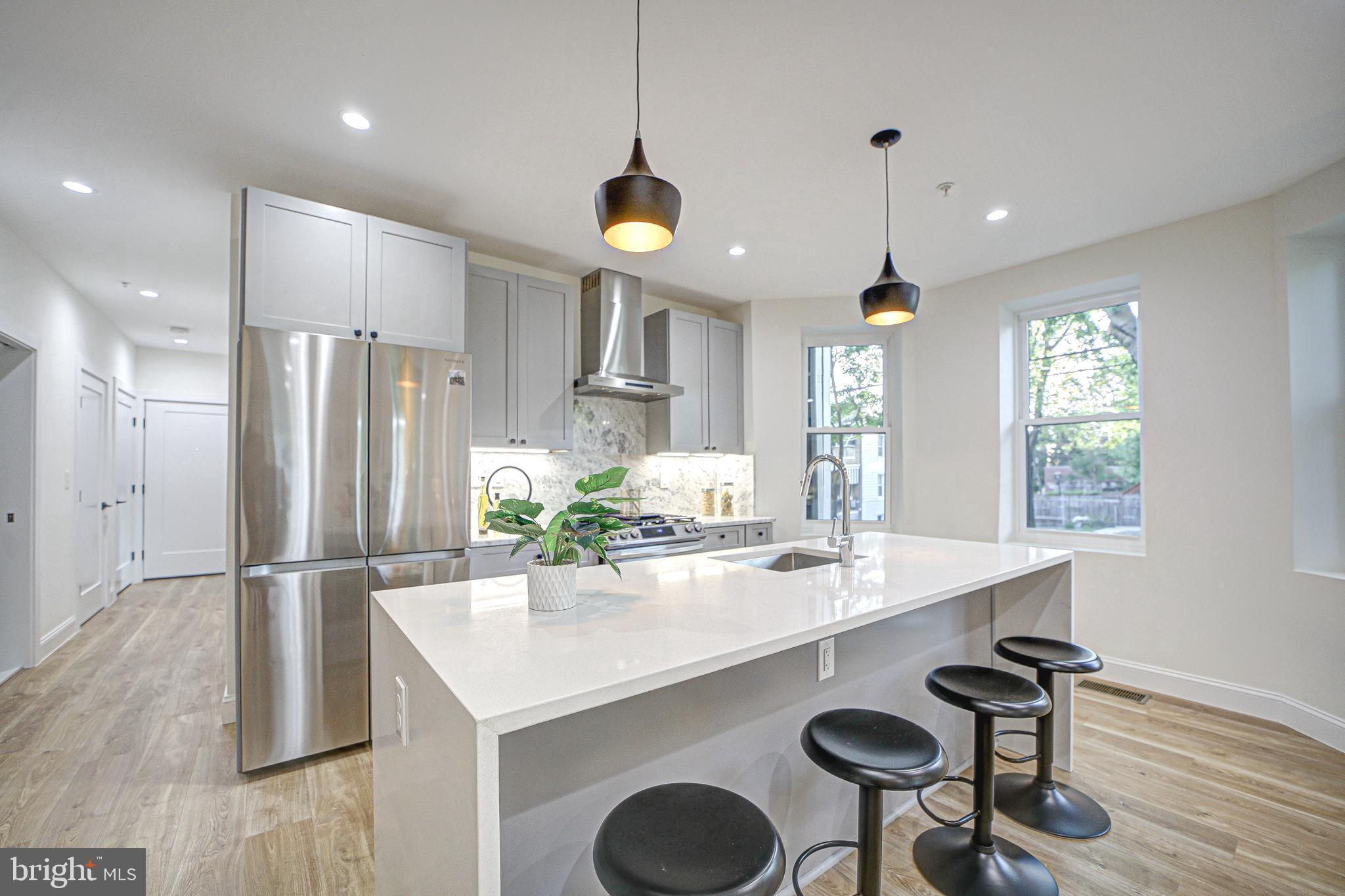 This stunning two-unit end-row townhome offers the epitome of modern urban living. Unit A is a two-level 4 bedroom, 3.5 bathroom layout with a private patio and off street deeded parking for 2 cars. With the perfect blend of move-in convenience and elevated finishes, this boutique condo offers the best of both worlds—a home that's ready to embrace your vision from day one, while still allowing you the freedom to make it uniquely yours. Entertain with ease in the sunny and expansive living areas, where an open-concept layout allows for seamless flow between the gourmet kitchen, dining and living area. Chef’s kitchen includes stainless steel appliances, pendant lights over the large island with amazing counter space, and unique stone backsplash. Down the hall you will find the primary bedroom with a spacious walk-in-closet and private en-suite bathroom. Down the stairs you will find the remaining three bedrooms, complete with ample closet and storage space. As with the rest of the home, the en-suite bathrooms contain luxury finishes, and are designed with practicality and efficiency in mind. This newly constructed condo is an ideal combination of a low condo fee with minimal maintenance requirements. Nestled in the vibrant neighborhood of Petworth, adjacent to the serene expanse of Rock Creek Park, this location can’t be beat. Not only are you near the Rock Creek Park golf course, soccer fields, and tennis center, you are also next to local favorite restaurants such as Simple Bar & Grill, Taqueria Districto Federal, and Brightwood Pizza.