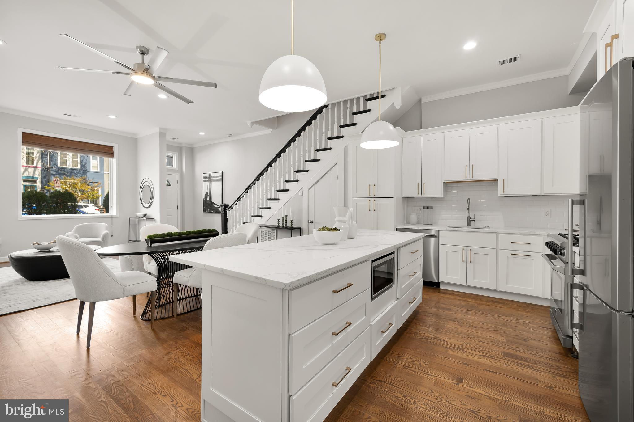 SIGNIFICANT PRICE REDUCTION. Discover sophisticated urban living in this remarkable 4-bedroom, 3-bathroom rowhome located in the vibrant Truxton Circle neighborhood. This home features many distinguishing features that elevate it above other homes in the area. Notably, upon entering the home you experience a sense of space, openness, and light due to the wide floor plan, high ceilings, and large windows. The main level showcases handsome hardwood floors, seamlessly flowing throughout a generous open concept living area and gourmet chef’s kitchen, meticulously renovated in 2021, while a convenient laundry closet and a well-appointed bedroom with a full, ensuite bathroom complete this level. The living area spills out into your own private, back yard with lush grass, tree canopy, and a large deck ideal for hosting gatherings. At the front of the home, find an additional landscaped garden that provides privacy and serenity. On the second level, discover three additional bedrooms, including the primary suite with a luxurious, spa-like bathroom, also renovated in 2021. Two more bedrooms and a shared guest bathroom provide plentiful space for family and guests. Further enhancing the appeal, a cellar underneath the home provides an astonishing amount of storage space. Parking is a breeze with more than enough on-street parking available. Located on a friendly, residential street, Bloomingdale, Union Market, the US Capitol, and Downtown are in close proximity, as are I-395 and major thoroughfares, while Metro stops on the green, yellow, and red lines are just a short walk away. Embrace the convenience and sophistication of this extraordinary home. Your oasis in the heart of the city awaits!