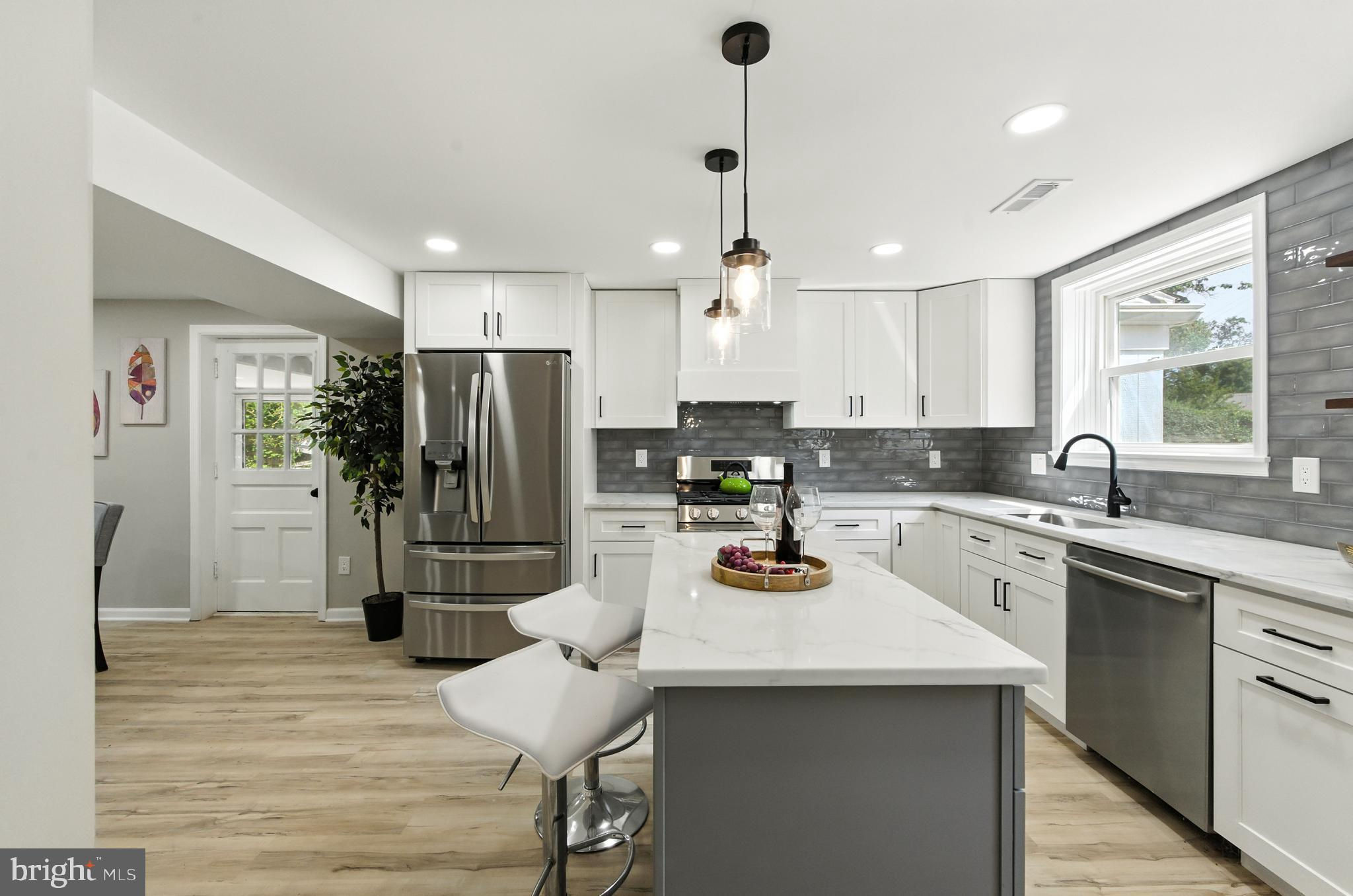 Updated in Waynewood! Come see this updated split level. Home boasts new windows, deck, kitchen, bathrooms, hvac, hot water heater, flooring, garage and more. Walk in to large living space that leads to oversized deck and nice flat backyard with shed. Kitchen boasts stainless appliances, new cabinets, quartz countertops, microwave in island. Open area to living room, sunroom and full bath complete this level. Lower level had egress window added so can be used as a bedroom with full bath close by. Upper level has 3 nice size bedrooms with 2 full baths. Don't miss this one.