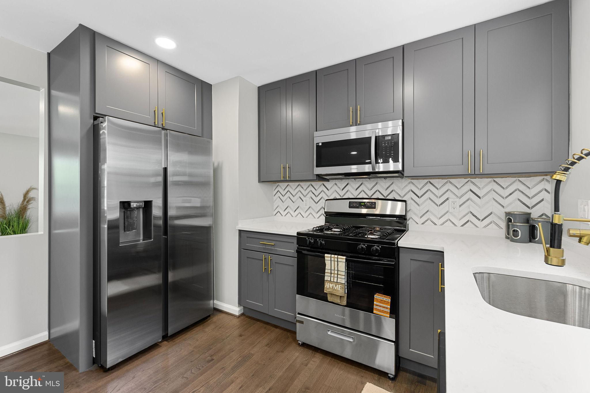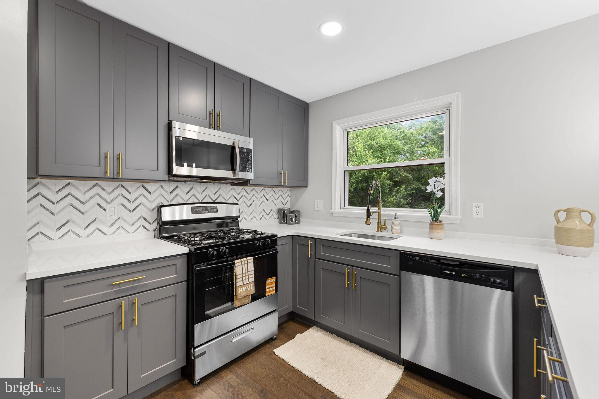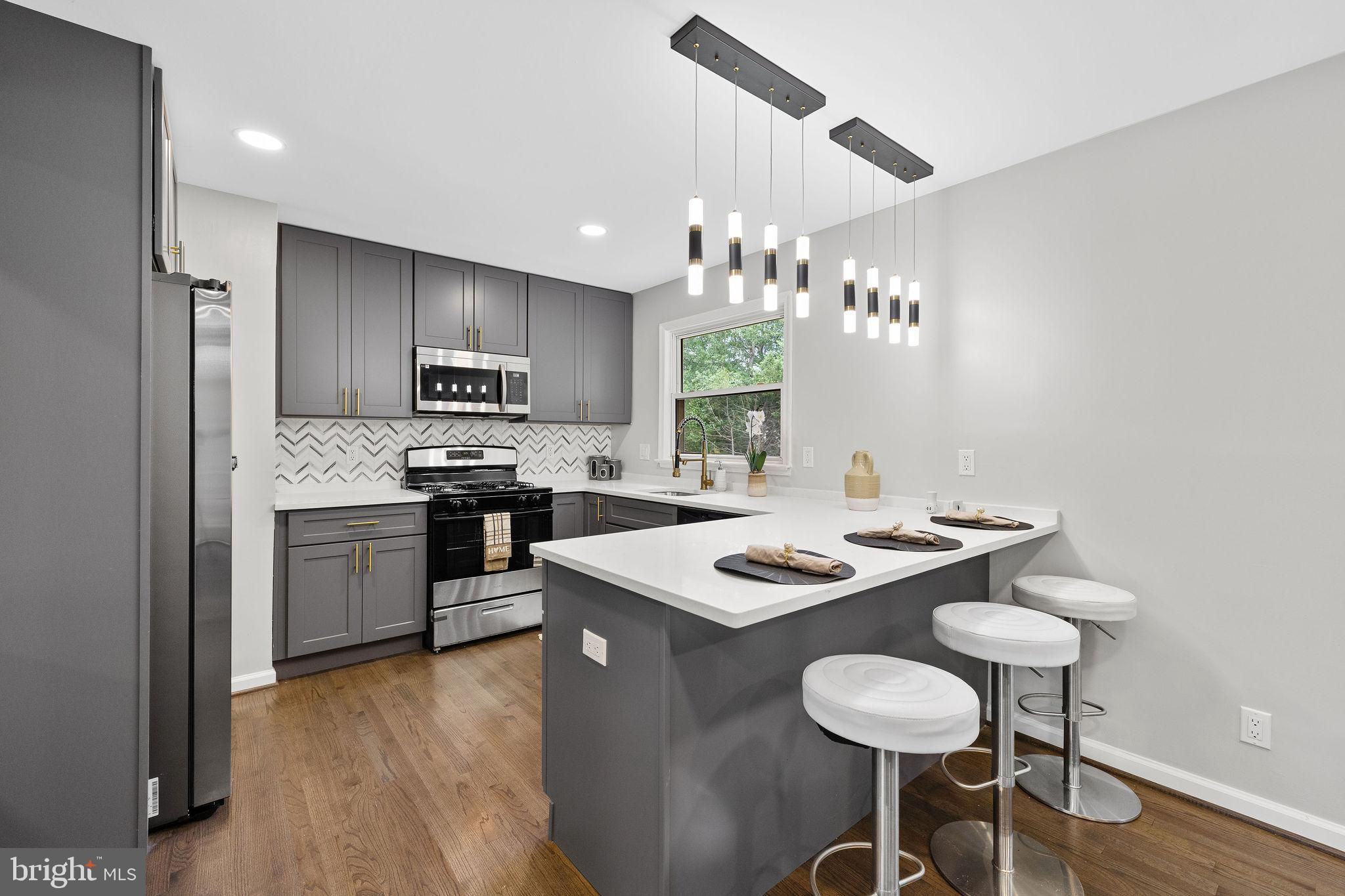 Best value in the highly sought after Mount Vernon Manor community. HOME IS PERFECT FOR SINGLE FAMILY LIVING OR RENTING ONE LEVEL WITH $2600 RENTAL potential. Home has 2 kitchens and 2 separate entrances. This 4 bedroom and 3 bath home with a garage features 2 beautiful new gourmet kitchens with quartz countertops, stainless steel appliances and a stunning backsplash! The main floor has an open plan with contemporary style living, dining and an island kitchen opening up to a deck perfect for entertaining. All 3 bathrooms are upgraded meticulously with style. New, superb state-of-the-art light fixtures give the home a warm, comforting feeling! Lots of recessed lighting as well! You will love the awesome hard floors throughout. This house boasts a large driveway! Check out the spacious backyard with a nice deck! What else do you need? No details missed and too many to mention! Don’t miss out, must see!