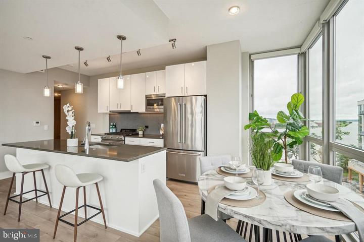 A stunning 1 bed, 1 bath condo in the vibrant Southwest Waterfront neighborhood. This upper-floor unit offers serene views overlooking the water, creating a peaceful city retreat. Currently tenant-occupied with 1.5 years remaining on the lease, this property is perfect for investors seeking immediate rental income. Best of all, it comes with an assumable mortgage at an ultra-low 2.99% interest rate – a rare opportunity in today’s market! Located near The Wharf, Nationals Park, and Metro access, this is city living at its finest with unbeatable potential.