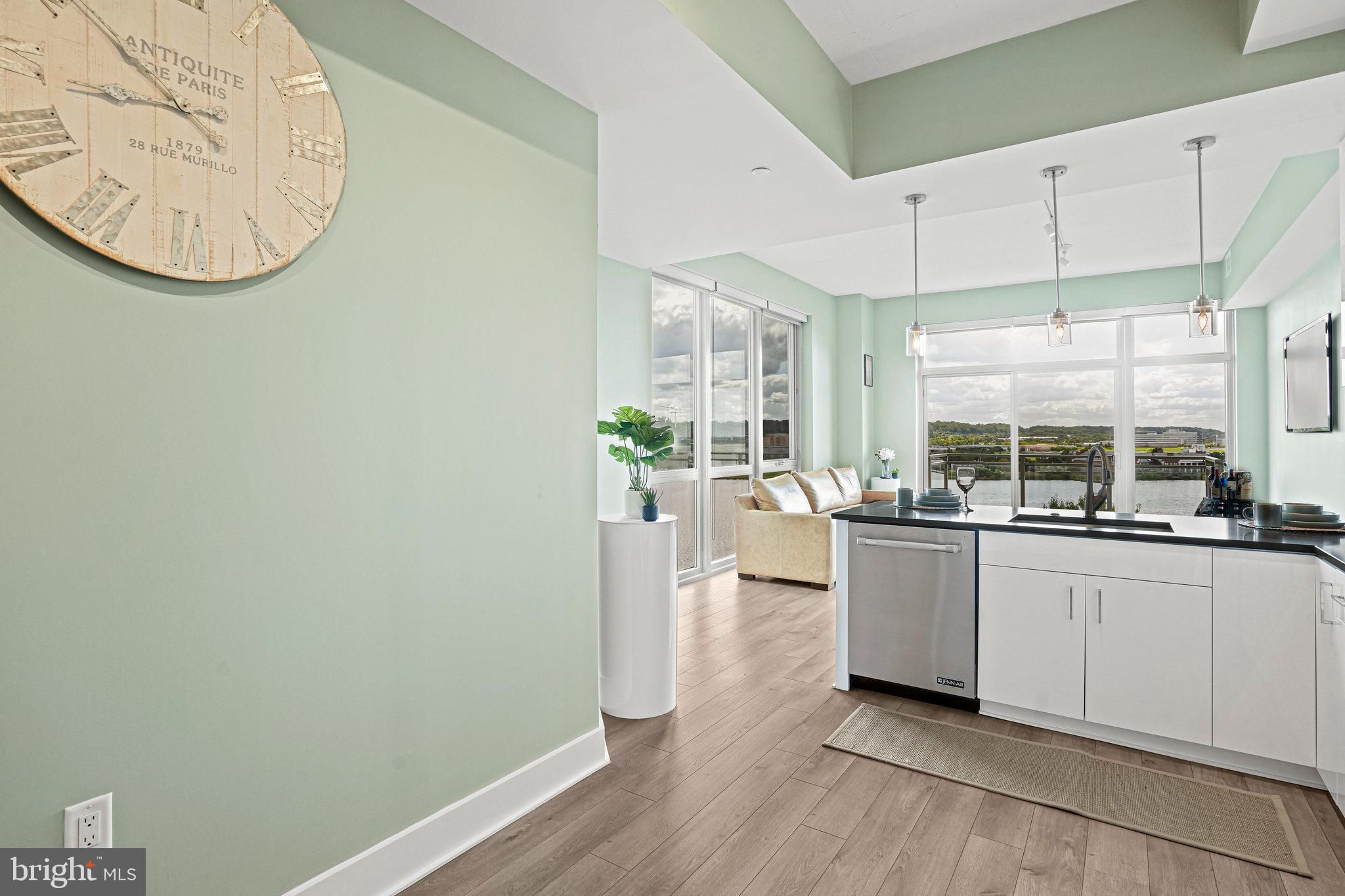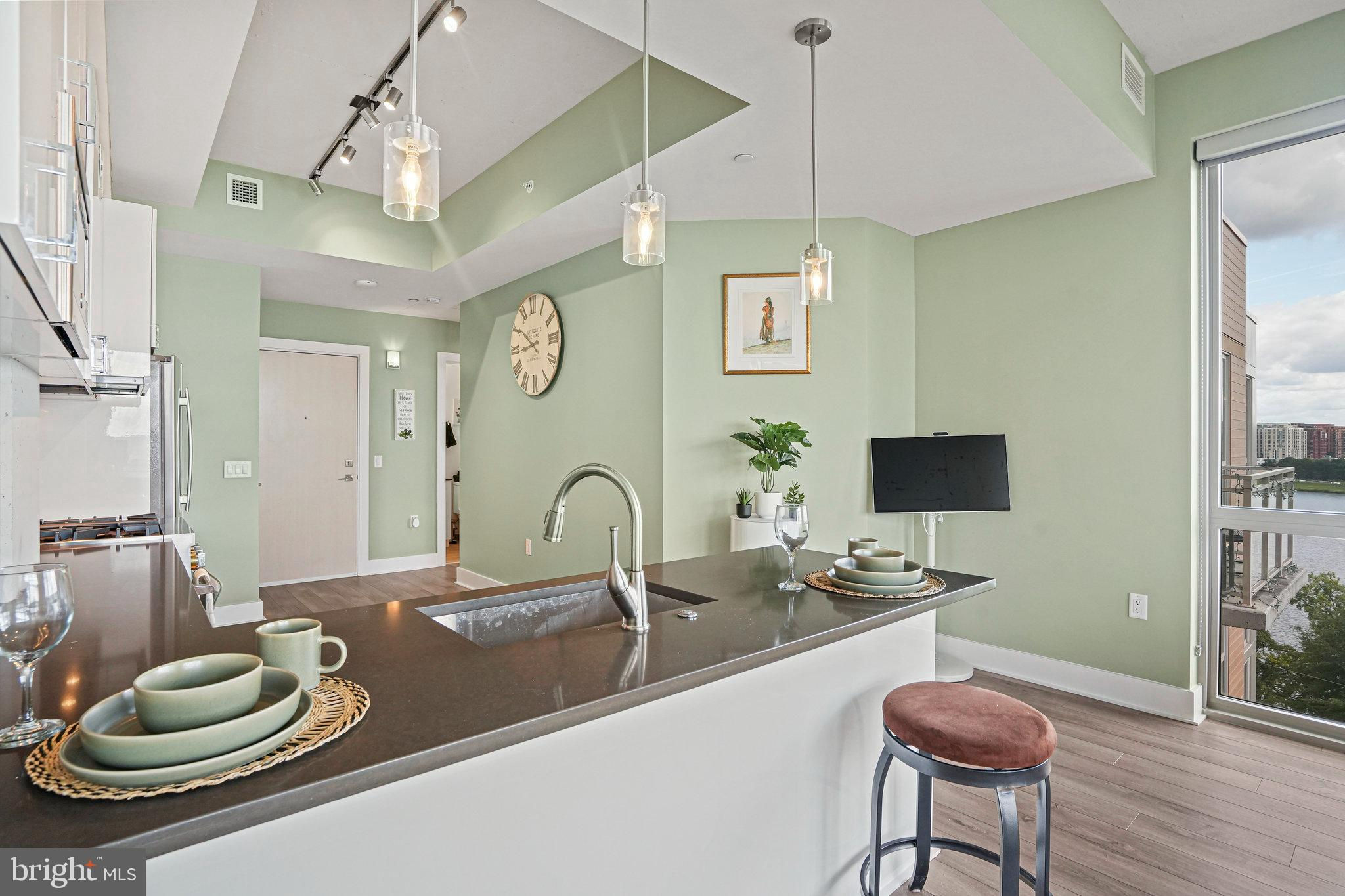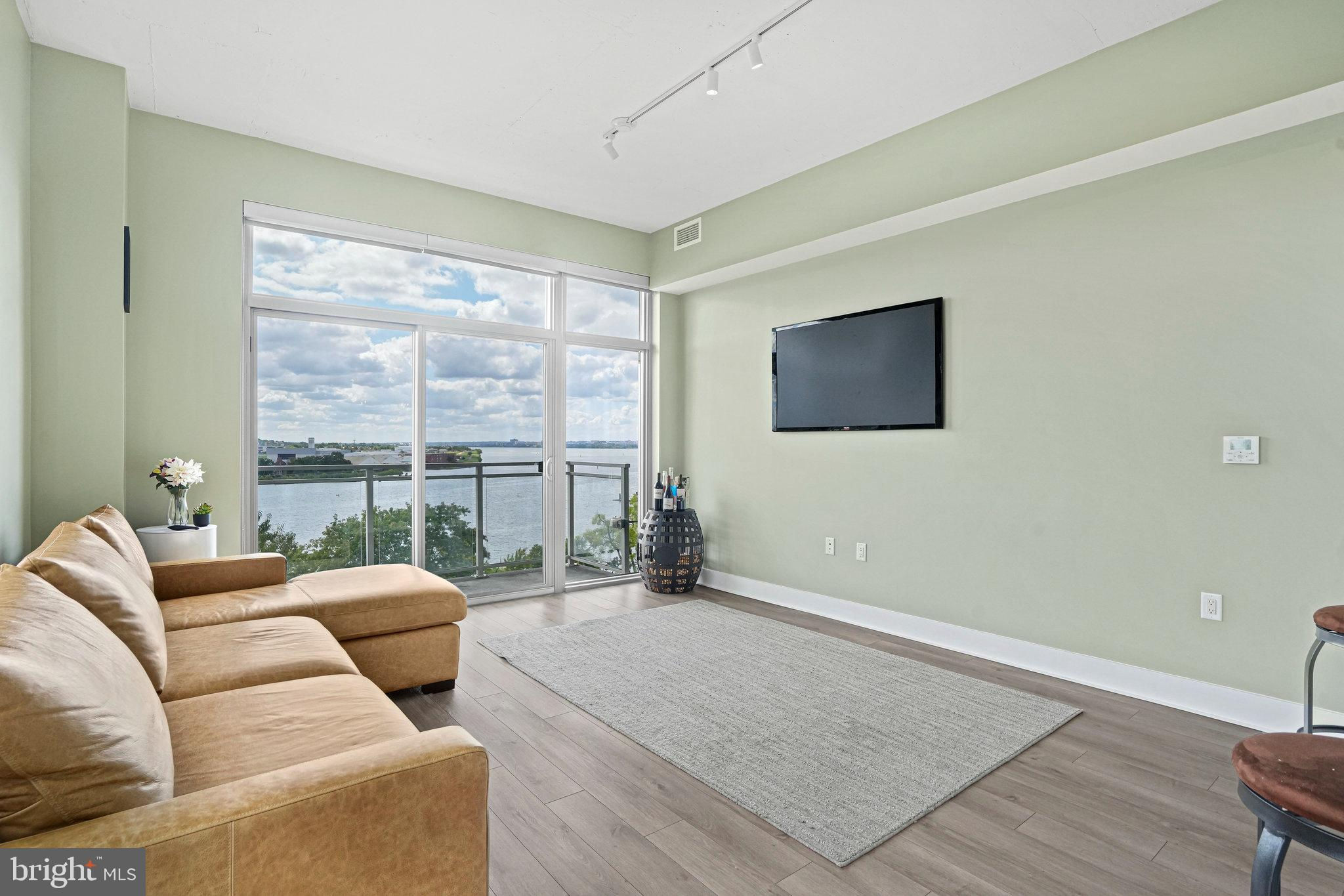 Don’t miss one of DC’s most dramatic river panoramas. Perched on the 8th floor—Residence #807 sits 100 feet from the water with nothing between you and the river. Floor-to-ceiling windows and a private balcony frame sweeping, unobstructed views of the Anacostia and Potomac along with iconic DC landmarks. Inside, 10' ceilings, wide-plank wood floors, and a sophisticated open layout create an effortless backdrop for daily living and entertaining. The gourmet kitchen impresses with stainless steel appliances, quartz countertops, and luxe white cabinetry. Your waterfront lifestyle continues at Peninsula 88 with a sky terrace featuring fire pits, dining areas, and cinematic river views, plus a stylish community room. Conveniences include onsite property management, secure entry, Luxor package lockers, dry-cleaning service, and refrigerated storage for grocery deliveries. A dedicated garage parking space and separate storage unit convey; building amenities also include bike/kayak storage, EV charging, and a dog-wash station. Set within a vibrant riverfront neighborhood, you’re moments from Audi Field, Nationals Park, and favorite dining spots like Dacha Beer Garden, The Salt Line, and destinations at The Wharf. This is the rare “on-the-water” vantage—unobstructed, serene, and truly special. Schedule your tour today.