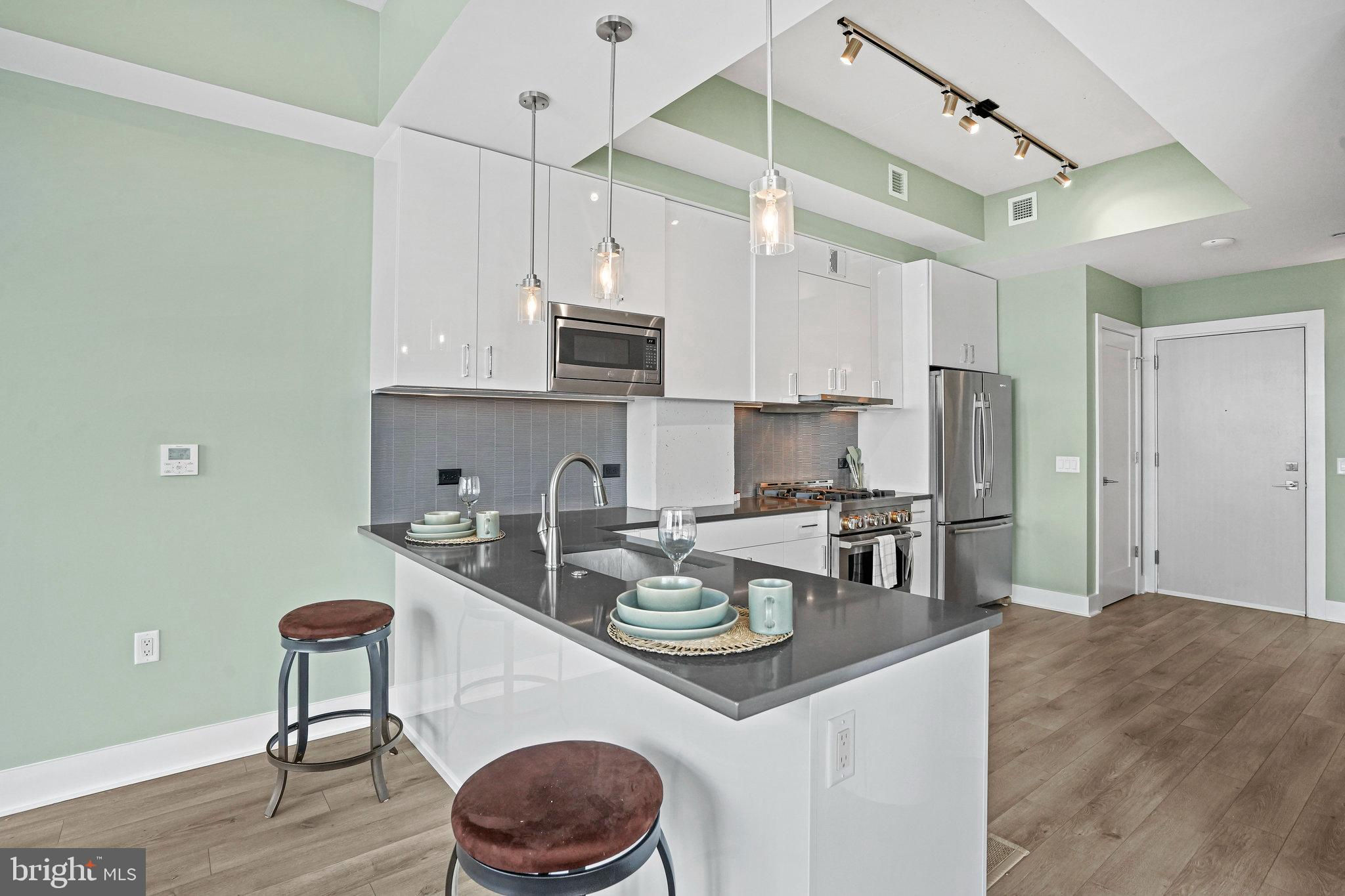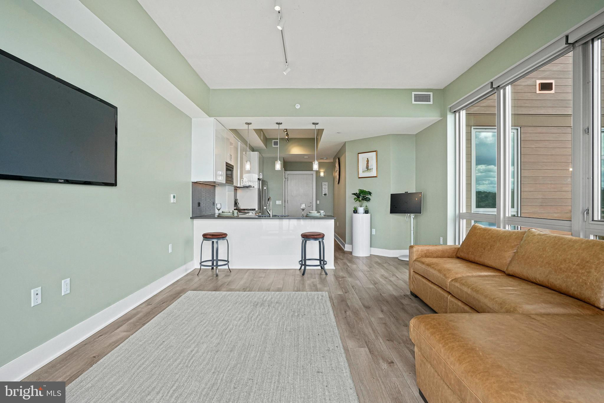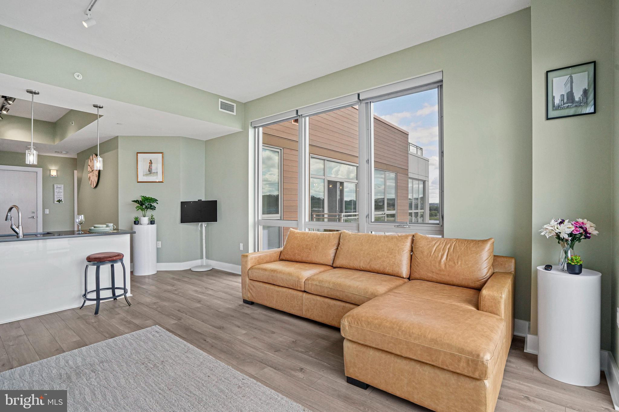 Don’t miss one of DC’s most dramatic river panoramas. Perched on the 8th floor—Residence #807 sits 100 feet from the water with nothing between you and the river. Floor-to-ceiling windows and a private balcony frame sweeping, unobstructed views of the Anacostia and Potomac along with iconic DC landmarks. Inside, 10' ceilings, wide-plank wood floors, and a sophisticated open layout create an effortless backdrop for daily living and entertaining. The gourmet kitchen impresses with stainless steel appliances, quartz countertops, and luxe white cabinetry. Your waterfront lifestyle continues at Peninsula 88 with a sky terrace featuring fire pits, dining areas, and cinematic river views, plus a stylish community room. Conveniences include onsite property management, secure entry, Luxor package lockers, dry-cleaning service, and refrigerated storage for grocery deliveries. A dedicated garage parking space and separate storage unit convey; building amenities also include bike/kayak storage, EV charging, and a dog-wash station. Set within a vibrant riverfront neighborhood, you’re moments from Audi Field, Nationals Park, and favorite dining spots like Dacha Beer Garden, The Salt Line, and destinations at The Wharf. This is the rare “on-the-water” vantage—unobstructed, serene, and truly special. Schedule your tour today.