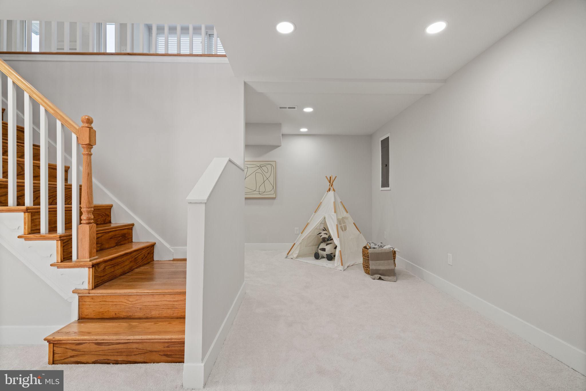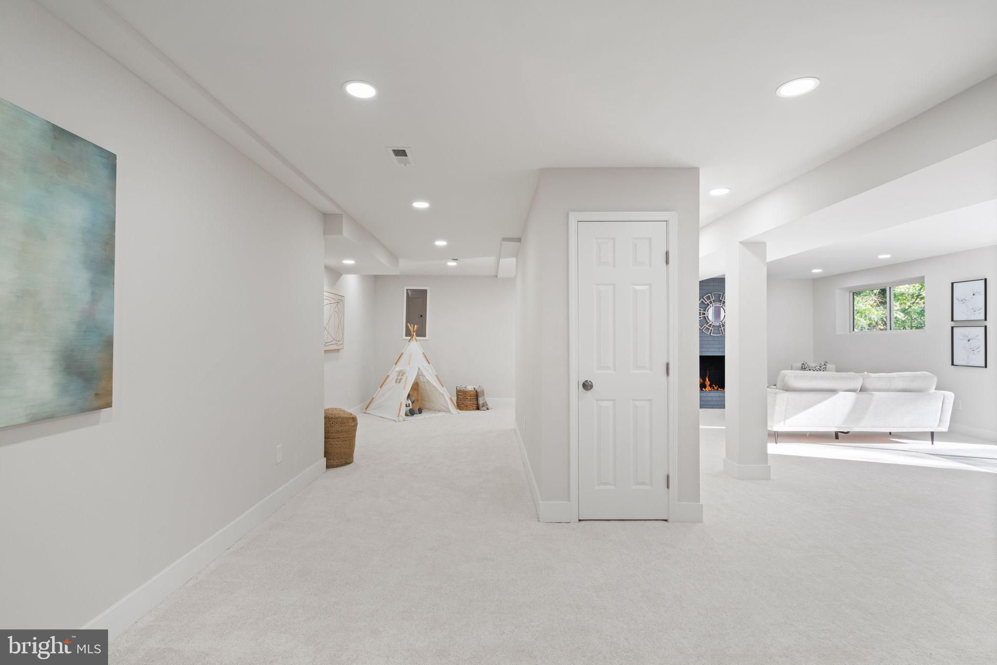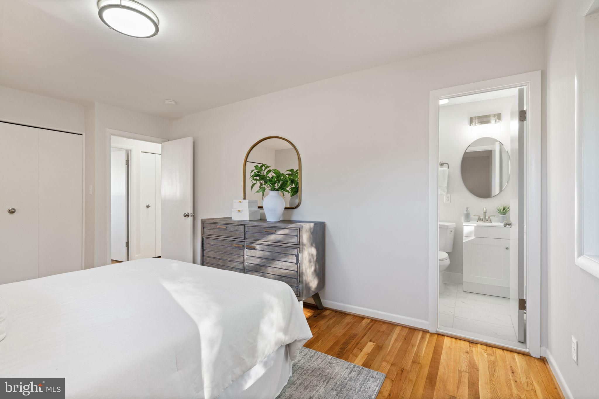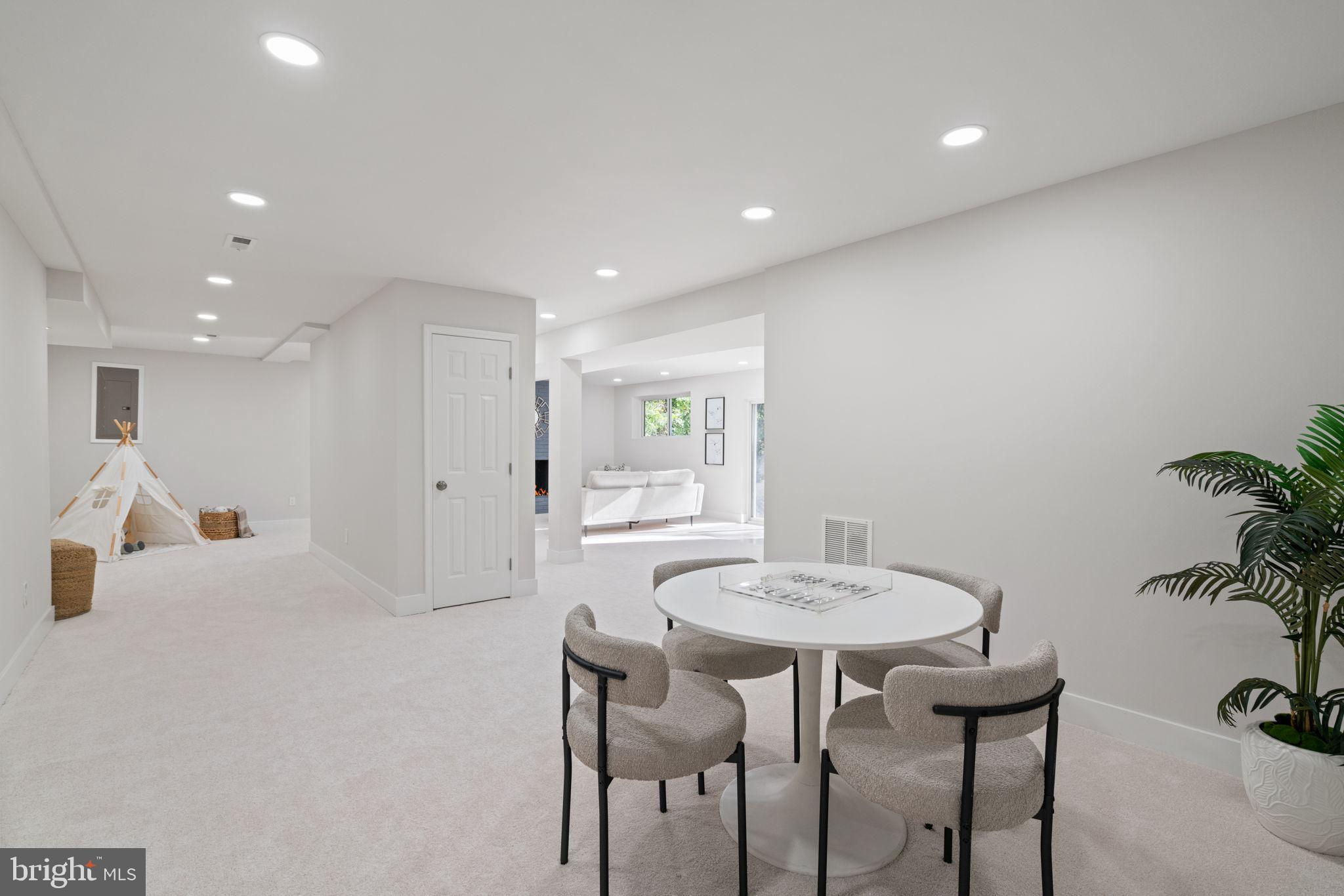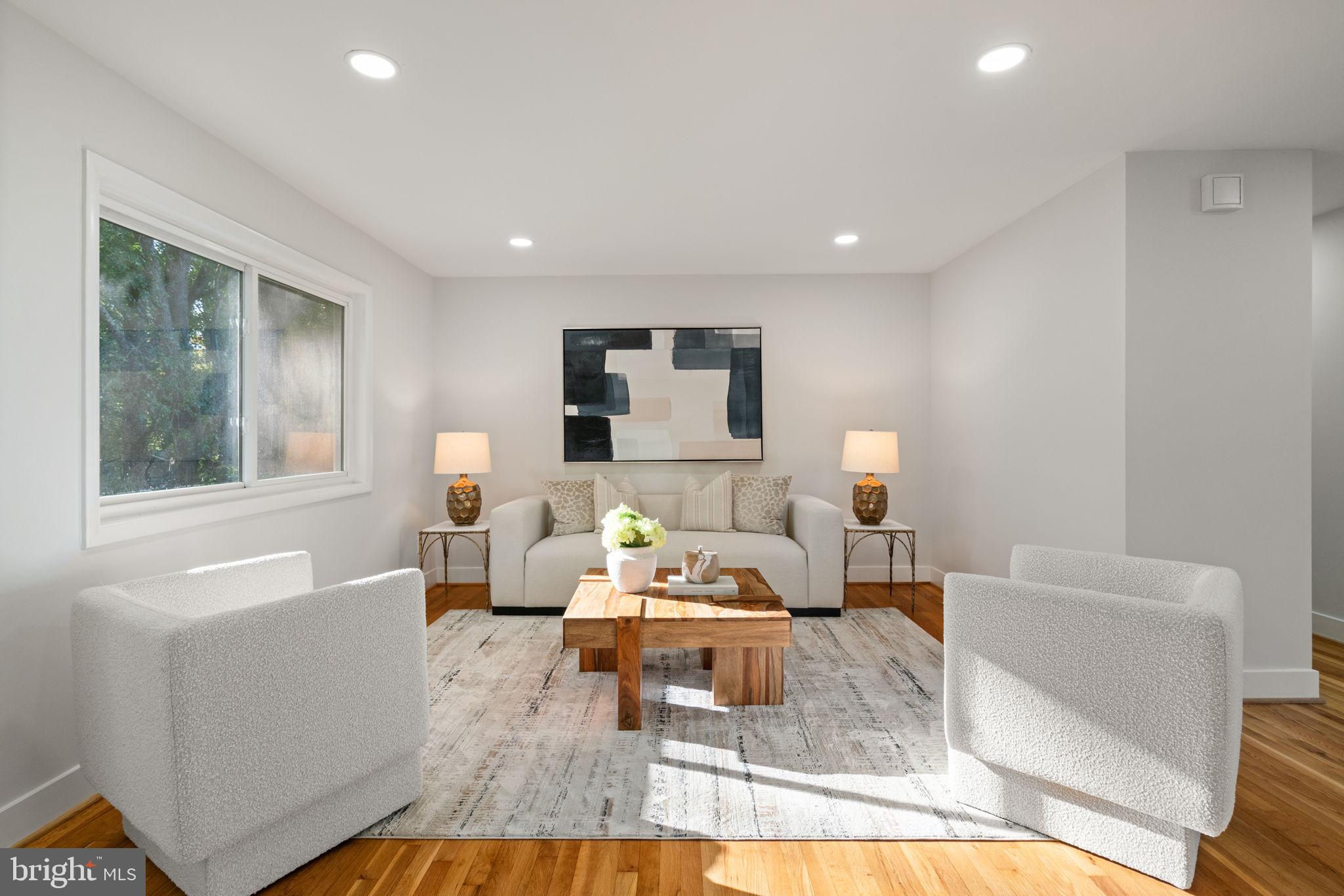 Tucked away on a quiet street, this completely turn key home boasts a full renovation in addition to its top notch location. 4 bedrooms and 3 full baths on 2 finished levels. Step inside to find gleaming hardwood floors flowing throughout the open concept main level complete with walls of windows. The gourmet eat in kitchen features modern white shaker cabinetry, stunning Premata quartz counters, a custom tiled backsplash and new stainless steel appliances. The eat-in nook with its large front window is perfect for that morning coffee! Just off the kitchen you have a large dining and living room. Bright new recessed lighting and ample oversized windows allow for an abundance of natural light and stunning views of the private backyard oasis. Make your way down the hall to find two spacious guest bedrooms each featuring new lighting and hardwood flooring with loads of natural light. Across the hall is a fully renovated bathroom with a modern vanity and a custom tiled shower and bath. The 3rd bedroom, a main level primary suite is a true retreat! Sitting on the rear of the home, this bedroom features the same hardwood flooring along with views of the backyard. The en-suite bath is a true show stopper with a beautifully tiled shower. As you make your way down to the fully finished walkout basement, the oversized rec room features a wood burning fireplace, fresh carpet, a brand new wet bar, recessed lighting and a sliding door walk-out to the flat and spacious backyard. Enjoy entertaining inside or outside on the newly poured large concrete patio! Back inside, you’ll find a third fully renovated full bathroom and the bright and sunny fourth bedroom, complete with egress window. The laundry and storage room with a separate entrance to the outside can also be found down here. Brand new 2025 roof, 2022 Lennox HVAC system, 2025 water heater, newer vinyl windows. Carport with side entrance into the main level. Backs to woods/creek. Quiet street.