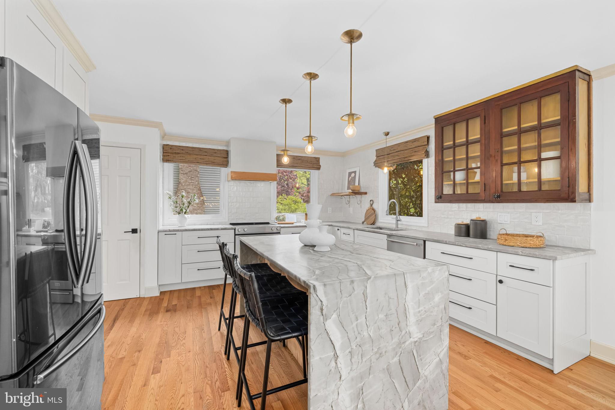You'll love living at this stunning residence in the charming River Bend Estates community. This meticulously updated home seamlessly blends classic design with modern finishes, and offers a private sanctuary for tranquil living tucked between two National Parks. Backing directly to historic Fort Hunt Park the property offers a serene and private oasis approximately 15 miles from bustling Washington DC. Enjoy a peaceful commute on the George Washington Parkway. As you step inside, you can’t help but stop to take in the treetop views through the new Pella windows. Sunlight glistens off the hardwood floors that flow throughout the open-concept main level with a spacious living room and dining area, perfect for entertaining. The remodeled kitchen is a chef's delight, featuring premium leather finish quartzite countertops, upgraded stainless steel appliances, and ample sourced cabinetry. The home offers four generously sized bedrooms and updated baths with beautiful modern fixtures and tile. The primary retreat includes a fireplace, en-suite bath and walk-in closet. On the lower level a large versatile room can be used as a bedroom, a large office, or a dedicated studio space. The limestone floors of the family room set the tone for an inviting and cozy family room that opens to a serene backyard oasis, twinkle lights included. An oversized 2-car garage and workshop complete the space. Enjoy sunset strolls along the Potomac River or walk through history in Fort Hunt Park, this home seamlessly combines location, tranquility, and modern . living, offering the perfect setting for your forever home. Welcome to a lifestyle of serenity and sophistication.