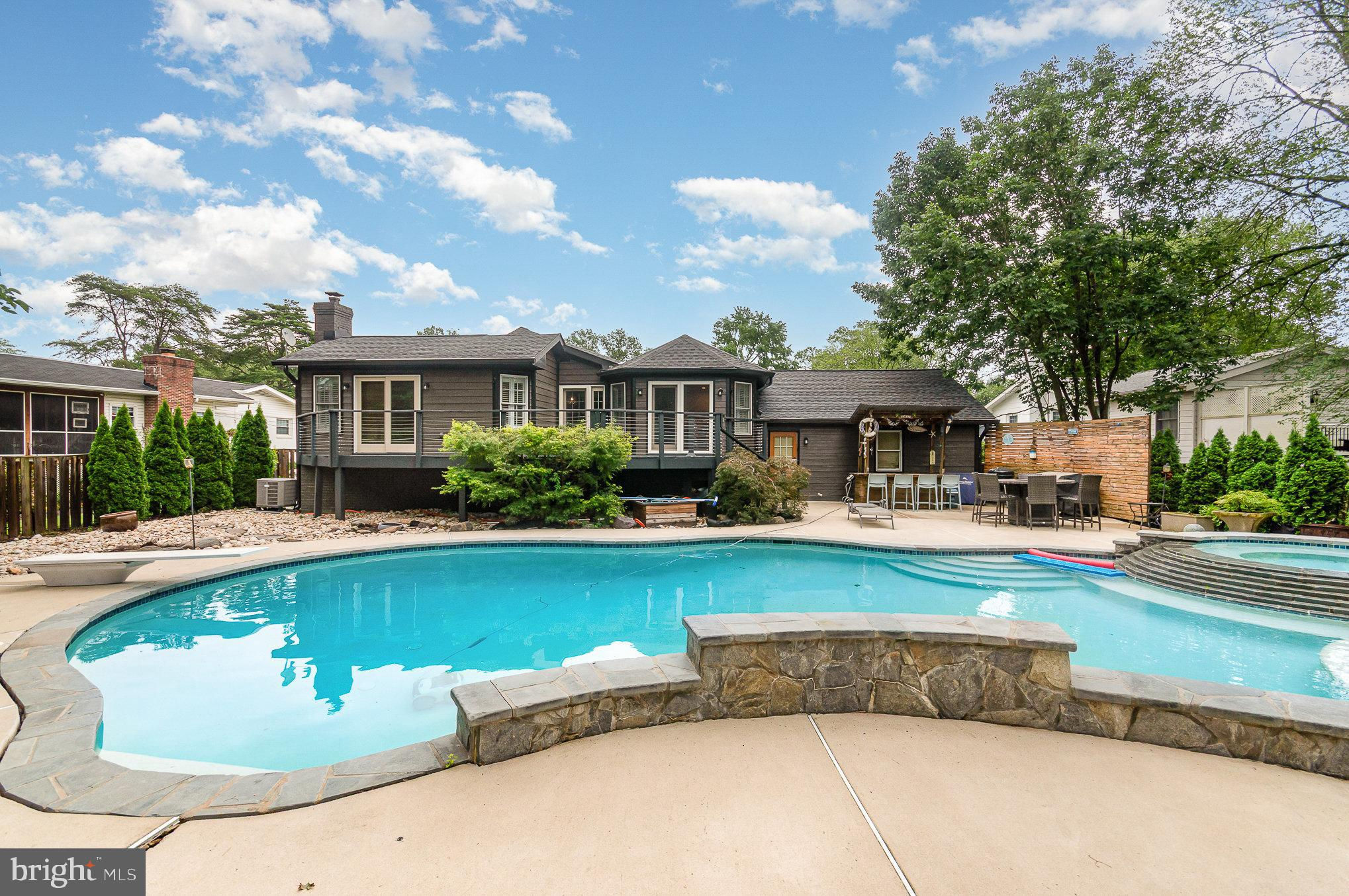 Updated 5 BR, 3.5 BA Retreat with Hardwood Floors, Pool, Hot Tub & Outdoor Oasis in Stratford Landing Bright, spacious, and beautifully updated, this 5-bedroom, 3.5-bath home in sought-after Stratford Landing combines comfort, style, and resort-style living. Recently painted inside and out, the home features gleaming hardwood floors throughout the main living areas, adding warmth and elegance to the space. The renovated kitchen offers white cabinetry, sleek countertops, and stainless-steel appliances, opening seamlessly into a cozy family room with a wood-burning fireplace—perfect for everyday living and entertaining. Open-concept Dining and Living Rooms flow to a large back deck, ideal for indoor-outdoor gatherings. A versatile main-level bedroom serves equally well as a home office, while the expansive primary suite includes a walk-in closet and an updated en suite bath. The fully finished lower level features a spacious rec room, dedicated laundry area, half bath, and three additional bedrooms—plus a stylishly updated full bath. Step outside to your private backyard retreat, complete with a large inground pool, hot tub with a waterfall feature, firepit, tiki bar, and a roomy storage shed. The fully fenced yard provides ample space for relaxation, play, and entertaining. With an attached 2-car garage, EV charger, and a generous driveway, this move-in ready home offers an exceptional lifestyle—inside and out. Updates: Tankless hot water heater 2025 Pool pump 2025 Roof 2022 HVAC 2018 Dishwasher 2025 Fridge 2025 Exterior house/shed painting 2022 Interior house painting 2025 Kitchen cabinets painted 2025