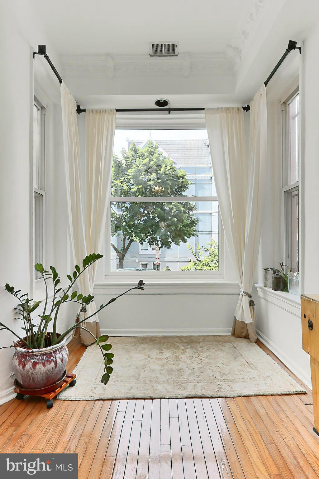 Welcome to 902 Westminster Street in Northwest Washington, DC! Nestled in the heart of the nation’s capital in the sought-after Shaw neighborhood, this exquisite 5 bedroom/2 den/5 full bath Federal Colonial row house delivers plenty of space for living and still maintaining its original charm. A quintessential stucco and brick exterior, courtyard-style patio, two-level balcony, warm hardwood floors, decorative millwork, 8 new wood framed Marvin windows, 2 new Pella windows, 2 new Pella doors, contemporary and recessed lighting, and designer paint, are only some of the reasons this home is such a gem. An abundance of windows bestow a light airy atmosphere and the unique, owing floor plan is a perfect t for today’s lifestyle needs. Warm tile floors welcome you home and transition to rich hardwoods in the living room where a brick accent wall serves as the focal point of the room. The formal dining room offers plenty of space for all occasions, while decorative moldings and an elegant, shimmering chandelier add tailored distinction. The family room provides the ideal spot for media and relaxation and a full bath updated with a vessel sink vanity rounds out the main level. Hardwoods continue upstairs to the light- primary suite boasting a separate sitting room and a private bath with a sumptuous jetted tub and spa-toned tile with decorative inlay. An additional bedroom down the hall plus an uppermost level bedroom share access to the beautifully updated hall bath. A large storage room adds convenience. Fine craftsmanship continues in the lower level living space that is highlighted by a kitchenette, two bedrooms, two full baths, and a private entrance—thus completing the comfort and luxury of this wonderful home. All this can be found in a peaceful community that feels miles away from the hustle and bustle yet virtually everything is available right at your fingertip. Experience all the bene ts to living in the nation’s capital— museums, theaters, stellar dining, diverse shopping, endless historical sites, the National Zoo, beautiful parkland, nightlife, and entertainment galore! Commuters will appreciate its close proximity to the Metro, Massachusetts Avenue, K Street, I-395, and other major routes. The picture of style and ease, your new home awaits at Westminster Street!
