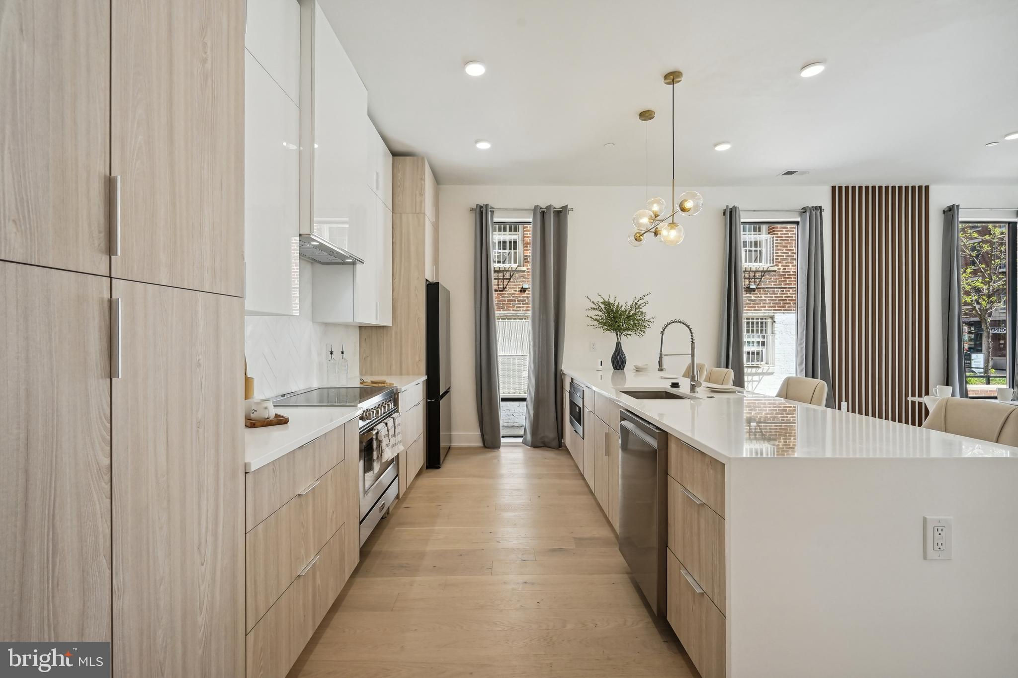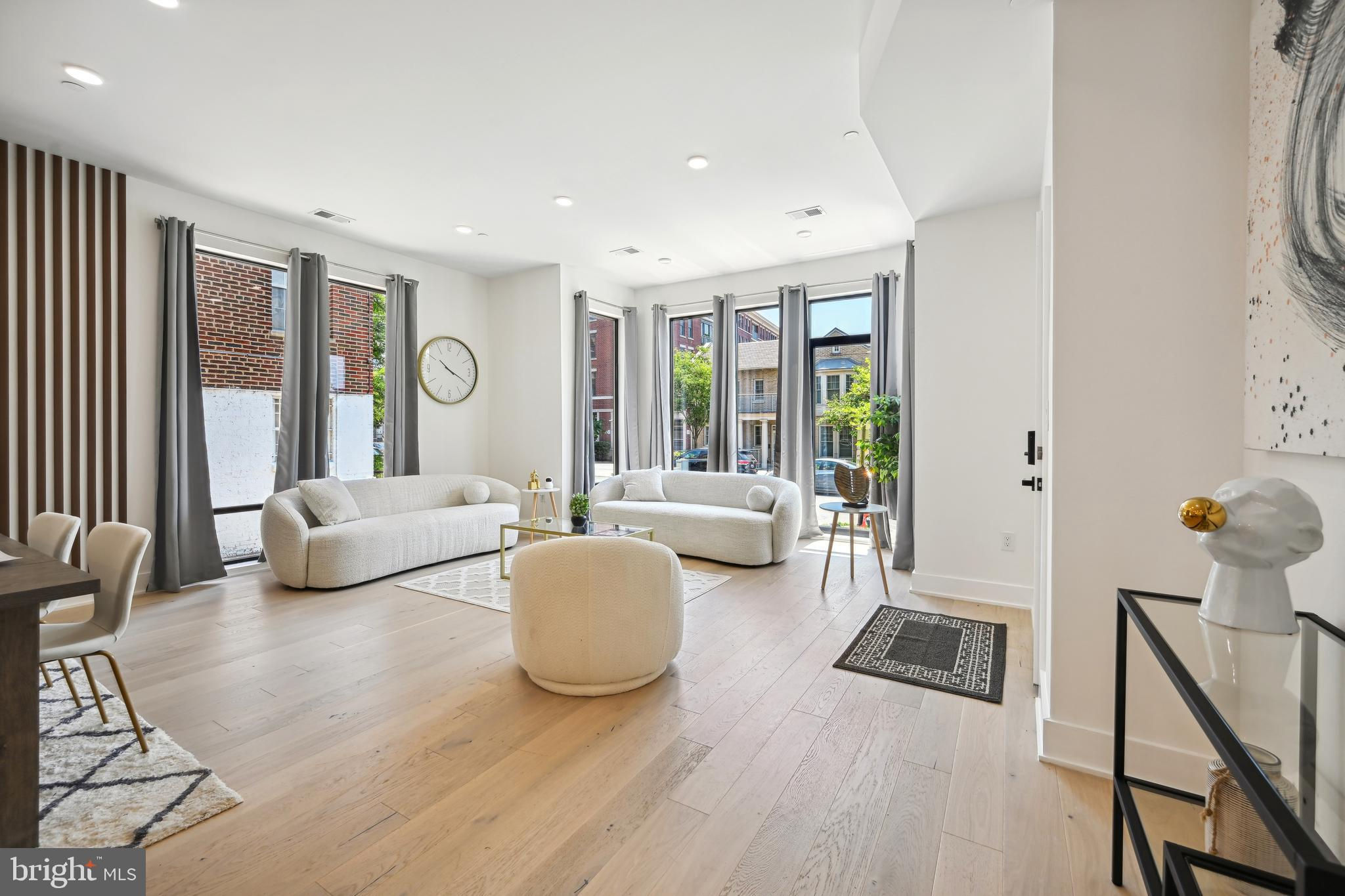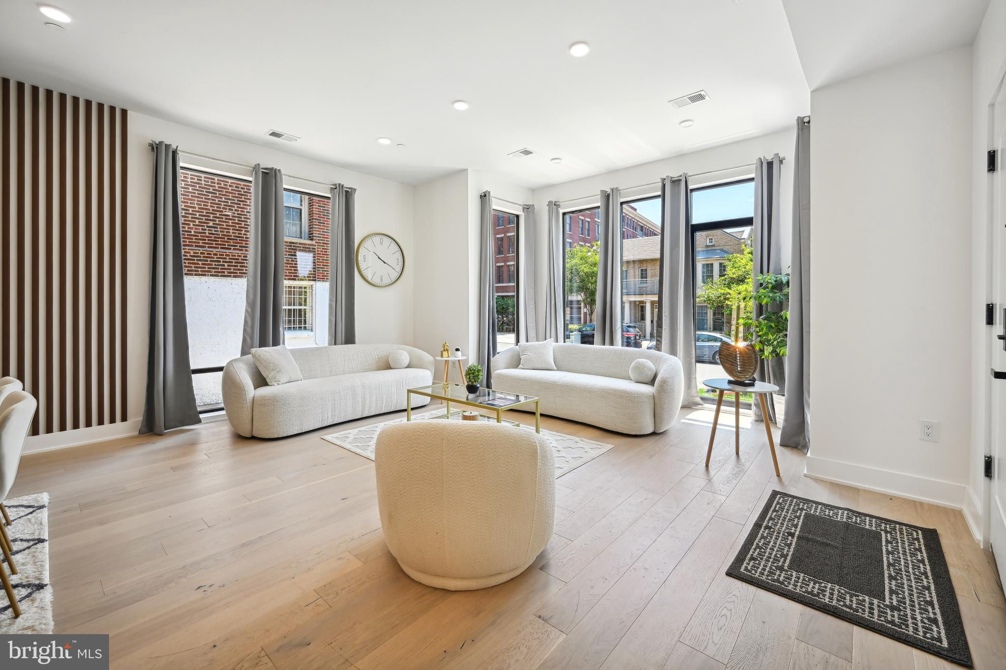 Experience the pinnacle of modern living in the heart of Columbia Heights at 903 Quincy St NW Condominium. a four-bedroom, three and a half-bathroom residence with parking that exudes contemporary sophistication. 25’ feet wide brand-new construction home boasts a spacious, open-concept layout that seamlessly connects the living, dining, and kitchen areas, flooding the space with natural light and two private balconies. The designer kitchen features a unique combination of white and natural wood cabinetry, white quartz countertops, and a stunning waterfall island that doubles as a gathering space. Modern pendant lighting adds a touch of sophistication to the design, while stainless steel appliances complete this culinary haven. All bedrooms in this residence are generously sized, providing ample space for relaxation and rest, and the modern bathrooms offer an elegant yet functional space. Step outside to discover your private back patio—a serene oasis perfect for outdoor dining, gardening, or simply unwinding after a long day. Convenience is key with 2 spots of off-street private parking. Located in the vibrant Columbia Heights neighborhood, you'll have easy access to a wide array of nearby restaurants, the metro, grocery store such as Safeway, and all the amenities that make city living a breeze. Schedule your private tour today and experience the best of city living in style and comfort.