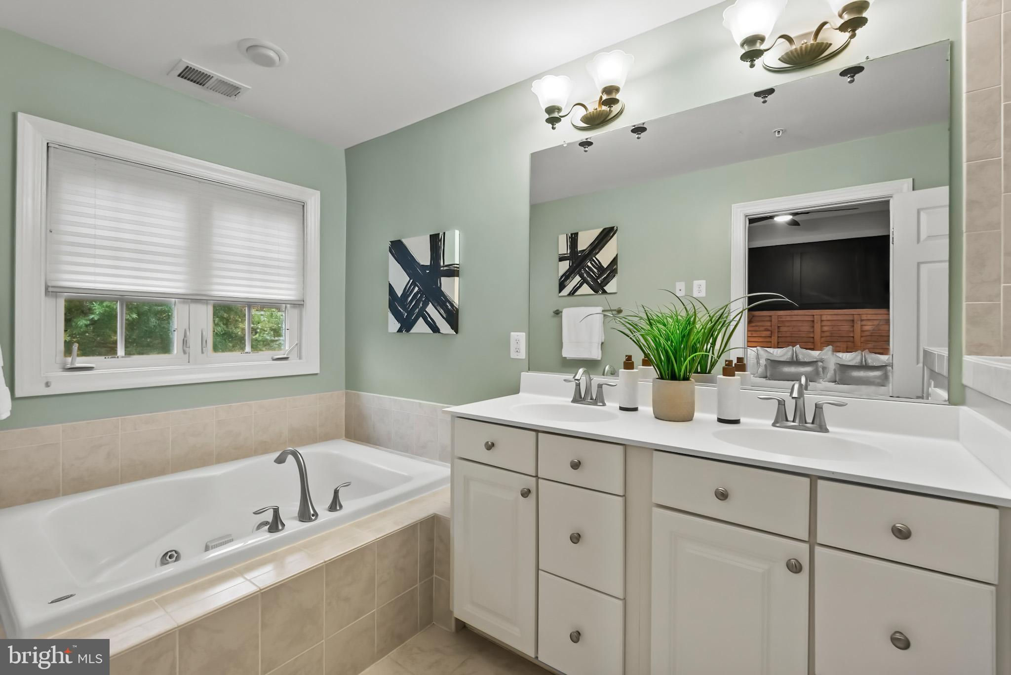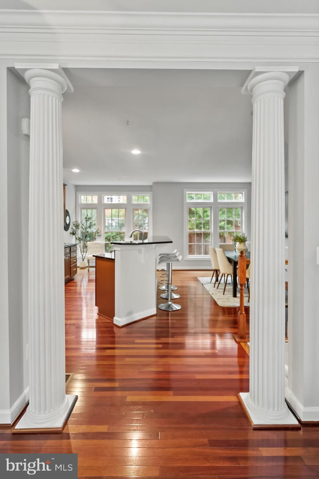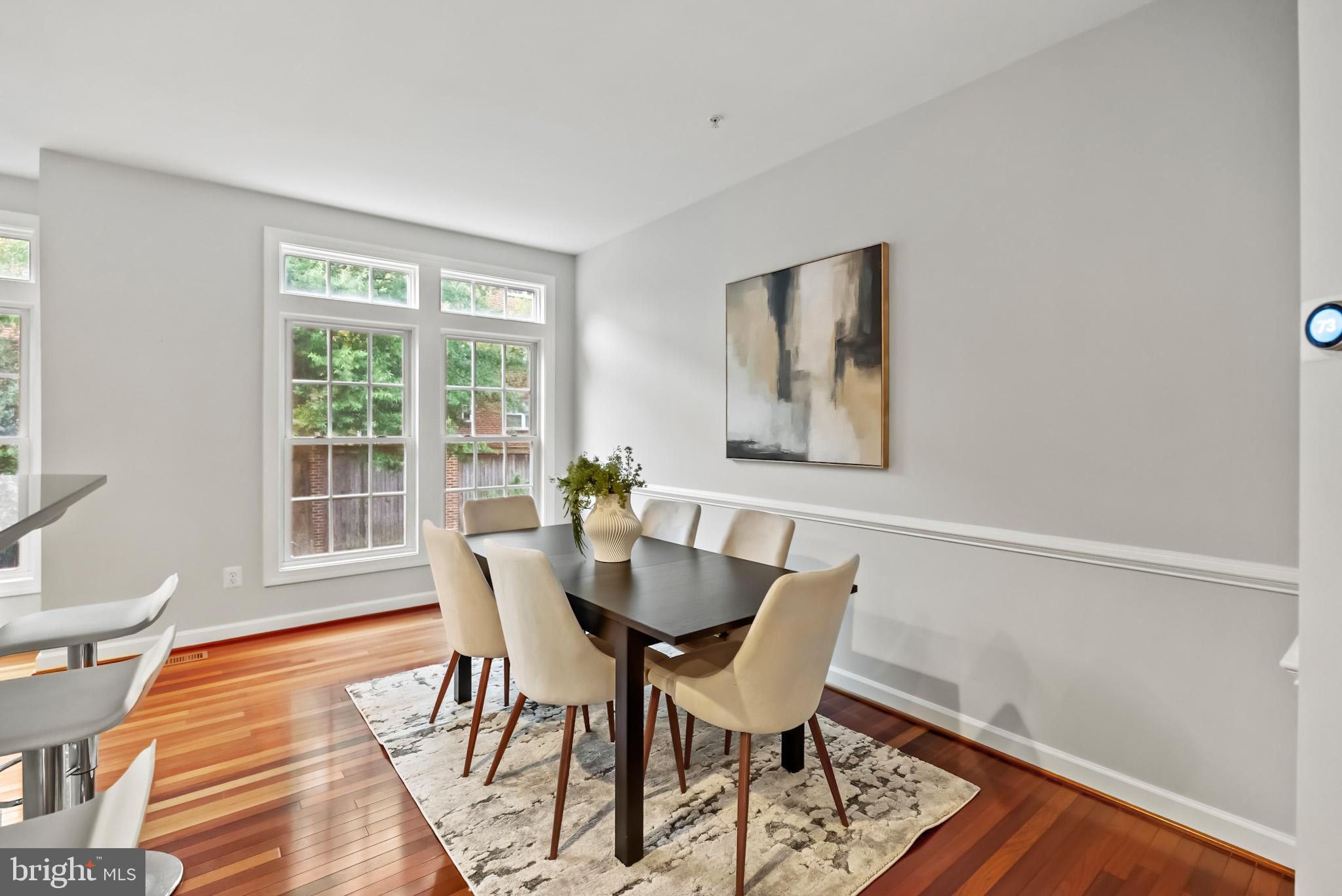 Welcome to this three-level townhouse offering 4 bedrooms and 3.5 baths with an open floorplan, high ceilings, and hardwood floors on the main level. The modern kitchen is designed with an island and bar seating, granite countertops, stainless steel appliances including gas cooking and a double oven, and space for both a dining table and a bar table. The living area features a fireplace, creating a comfortable setting for everyday living and entertaining. The upper level includes three bedrooms and two full baths, highlighted by a spacious primary suite with a tray ceiling, walk-in closet, and a bathroom with a frameless shower, jetted tub, and dual vanity. The first upper level also includes a convenient half bath. On the entrance level, a bedroom and full bath provide flexible space for guests or a home office. The entrance level offers laundry and direct access to an oversized two-car garage in back, providing both secure parking and storage. Set in Ellsworth Place, this home is close to DC, the Pentagon, Metro, Old Town Alexandria, Shirlington, and Del Ray, combining modern comfort with a sought-after location.