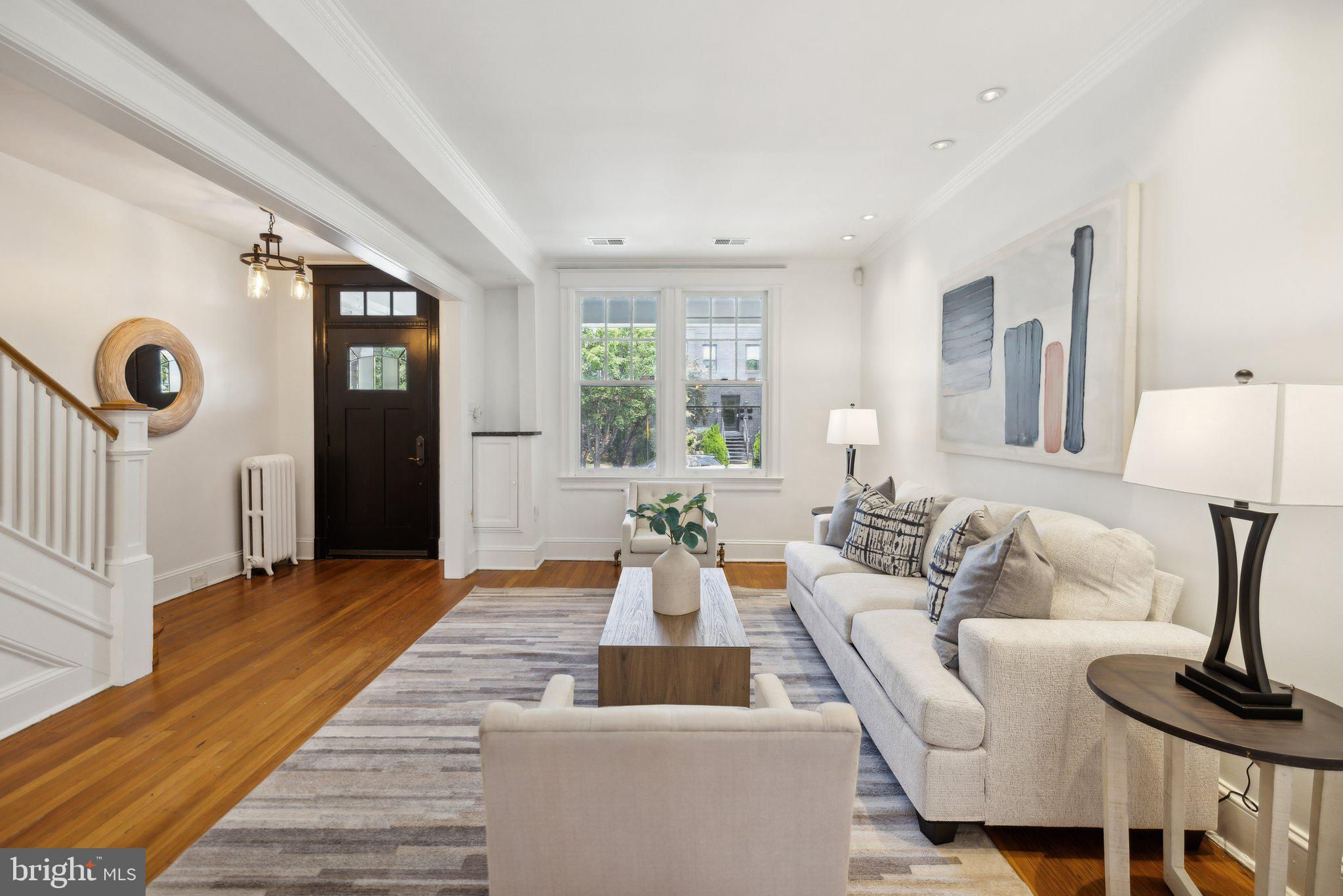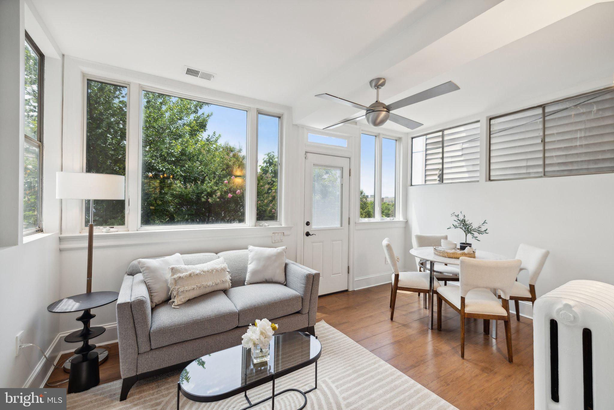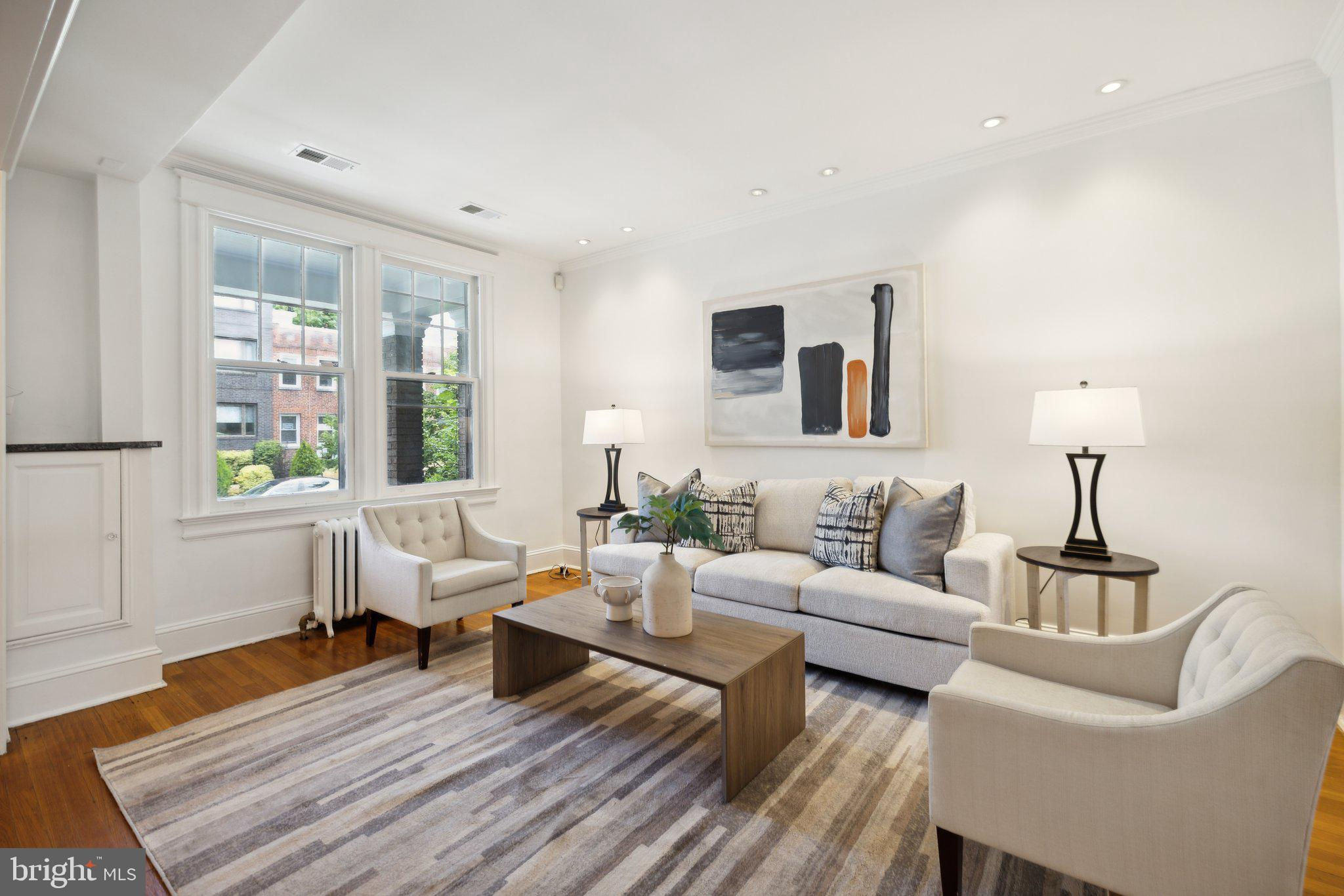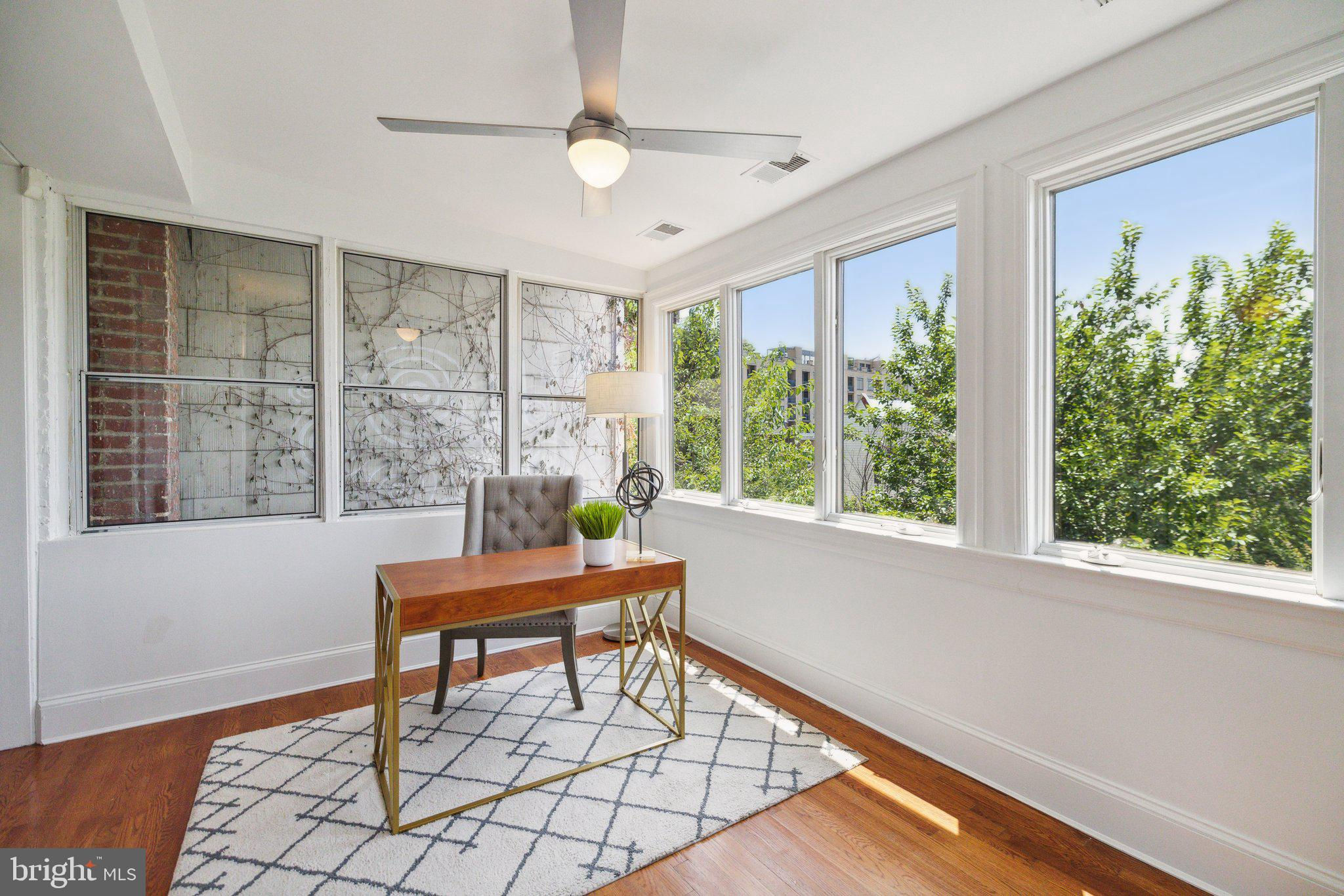 Welcome to this stunning rowhouse in Columbia Heights that's just steps to the heart of Petworth, where classic charm meets a modern aesthetic. The welcoming front porch greets you as you enter a home filled with beautiful hardwood floors, high ceilings, and airy sun-filled rooms. The updated kitchen, seamlessly opening to the dining room, is perfect for both everyday meals and entertaining. Freshly painted throughout, the home features a fantastic two-story sunroom at the back, providing a bright breakfast room and a cozy family room on the main floor while upstairs, you'll find a sunny office space accessible from both the second bedroom and the hallway. The lower level includes a generous rec room, which could easily be used as a third bedroom, a full bath, and ample storage space. The cherry on top is the unexpected, extraordinary roof deck with panoramic city views and a dedicated gas line for your grill. It’s sure to become a favorite spot for morning coffee as the sun rises and evening cocktails as the sun sets. In the back, enjoy the large, deep yard with a patio, perfect for gatherings and relaxation, along with the convenience of two off-street parking spaces. One of the most remarkable aspects of this property is its unbeatable location – just one block from the metro and Safeway, and a short stroll to an array of local shops and restaurants. Living here, you'll have everything you need at your doorstep, making owning a car optional. Experience the best of urban living in this exceptional Petworth home.
