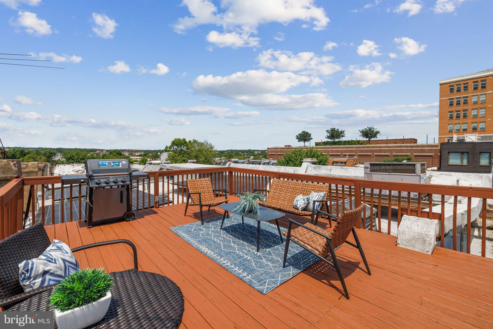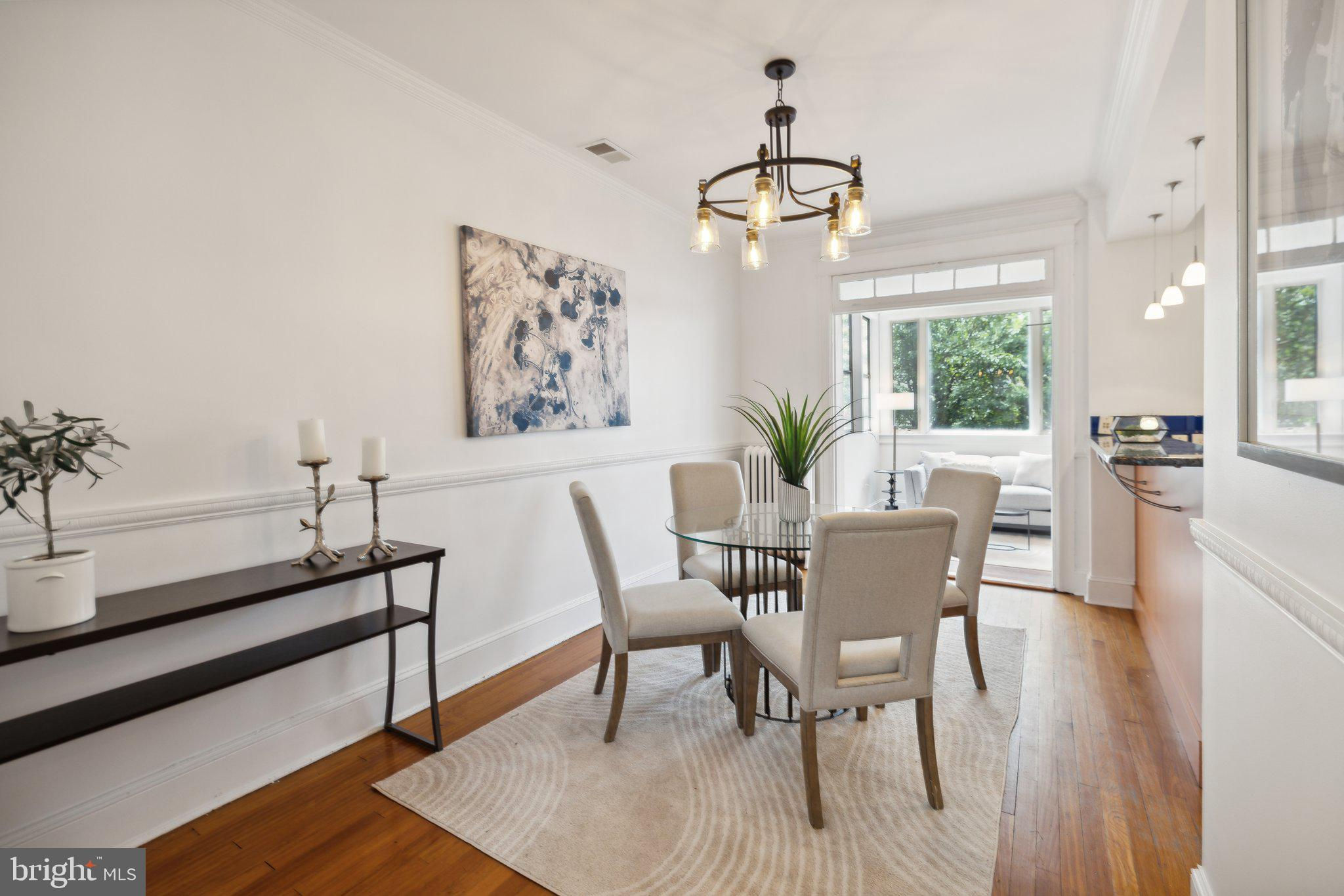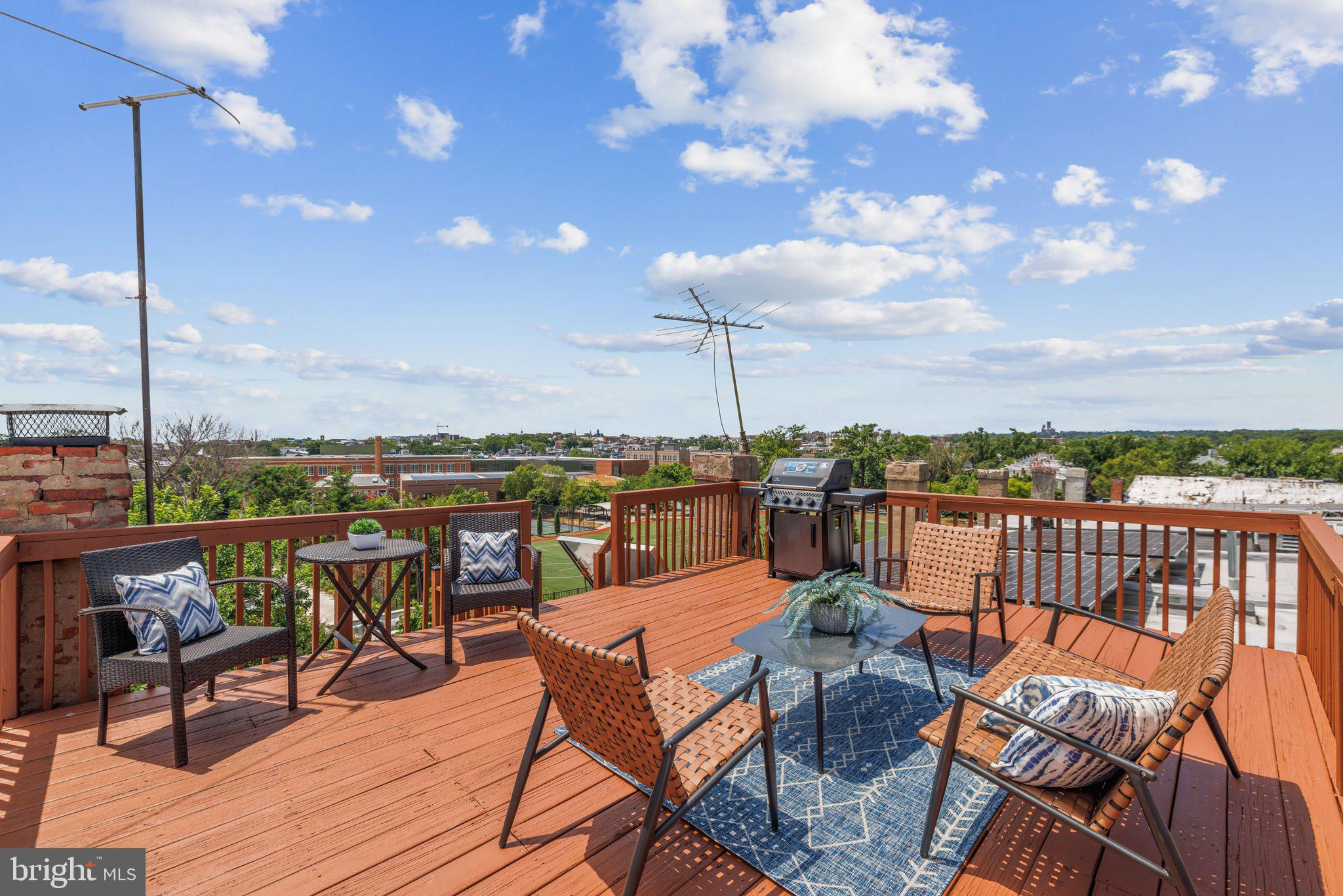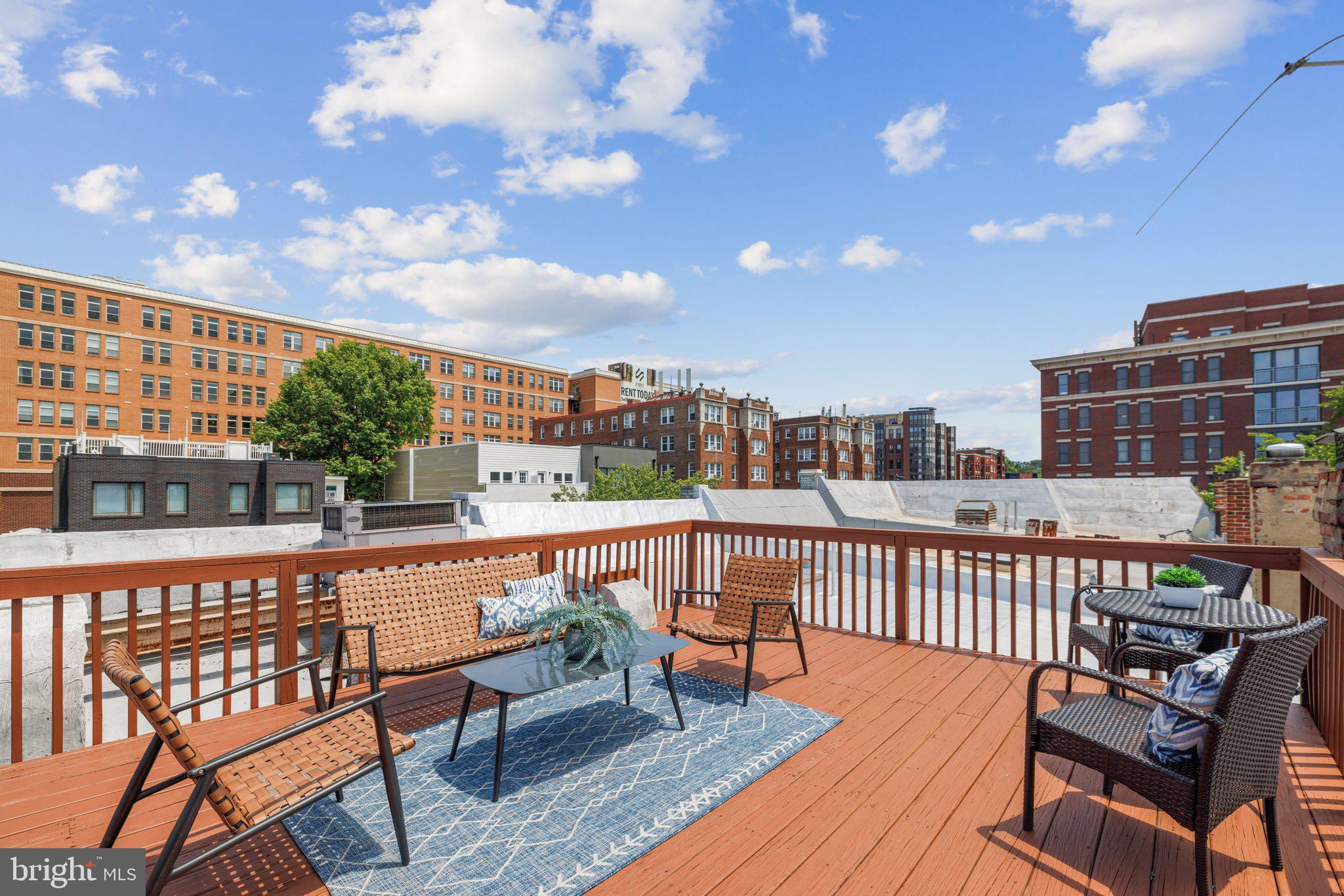 Welcome to this stunning rowhouse in Columbia Heights that's just steps to the heart of Petworth, where classic charm meets a modern aesthetic. The welcoming front porch greets you as you enter a home filled with beautiful hardwood floors, high ceilings, and airy sun-filled rooms. The updated kitchen, seamlessly opening to the dining room, is perfect for both everyday meals and entertaining. Freshly painted throughout, the home features a fantastic two-story sunroom at the back, providing a bright breakfast room and a cozy family room on the main floor while upstairs, you'll find a sunny office space accessible from both the second bedroom and the hallway. The lower level includes a generous rec room, which could easily be used as a third bedroom, a full bath, and ample storage space. The cherry on top is the unexpected, extraordinary roof deck with panoramic city views and a dedicated gas line for your grill. It’s sure to become a favorite spot for morning coffee as the sun rises and evening cocktails as the sun sets. In the back, enjoy the large, deep yard with a patio, perfect for gatherings and relaxation, along with the convenience of two off-street parking spaces. One of the most remarkable aspects of this property is its unbeatable location – just one block from the metro and Safeway, and a short stroll to an array of local shops and restaurants. Living here, you'll have everything you need at your doorstep, making owning a car optional. Experience the best of urban living in this exceptional Petworth home.