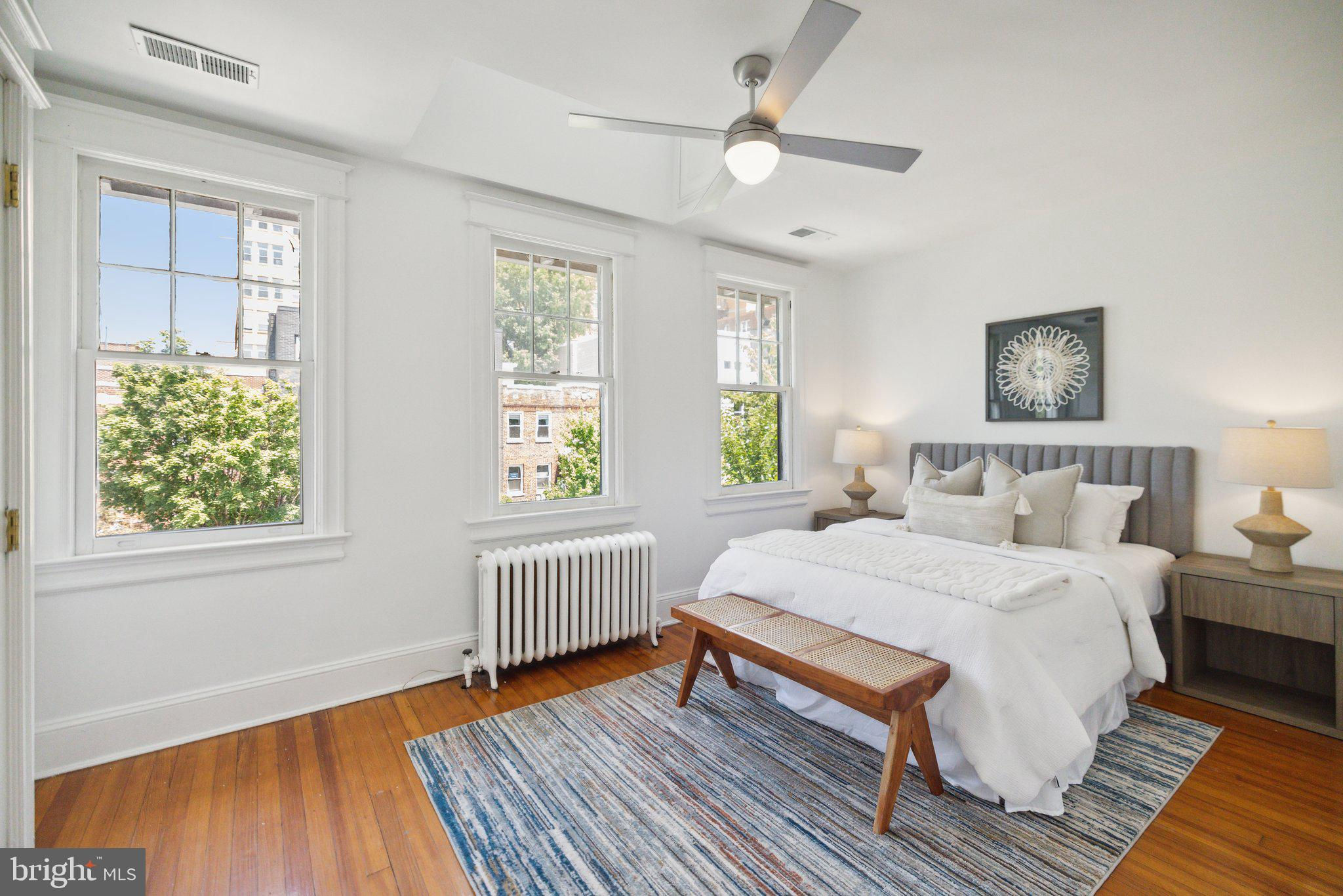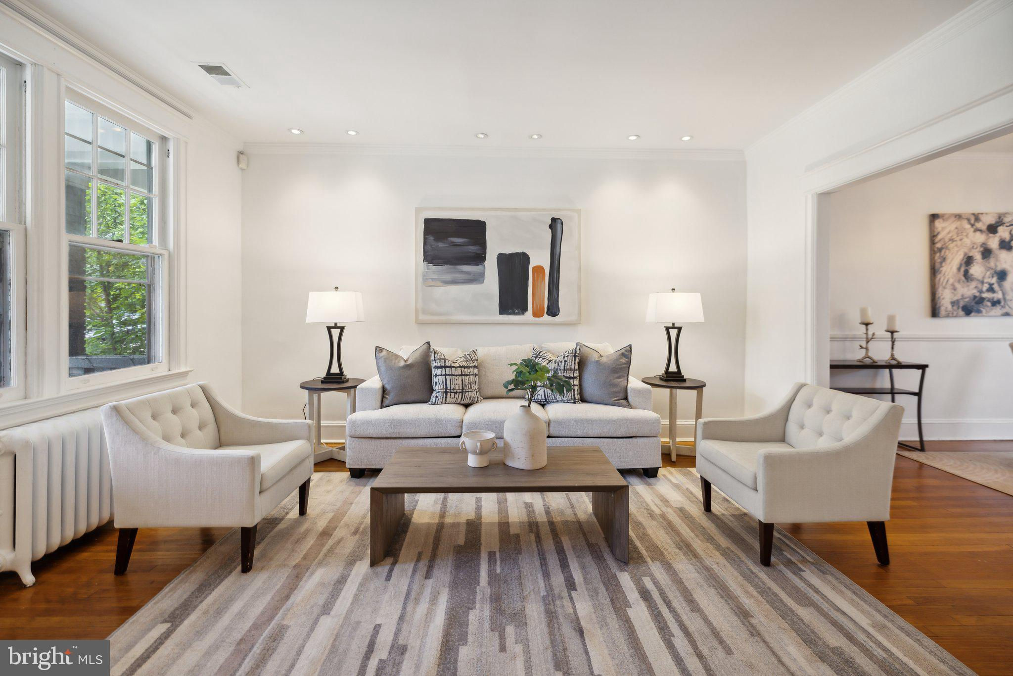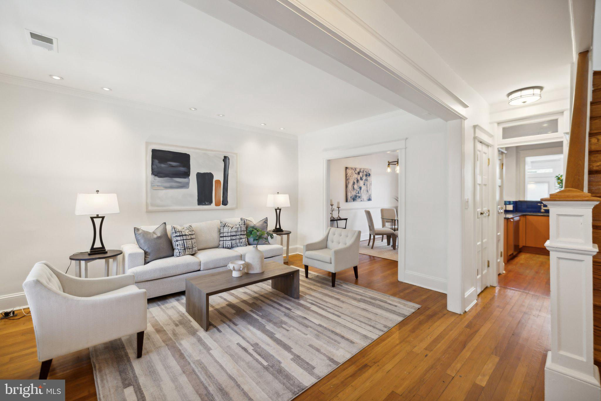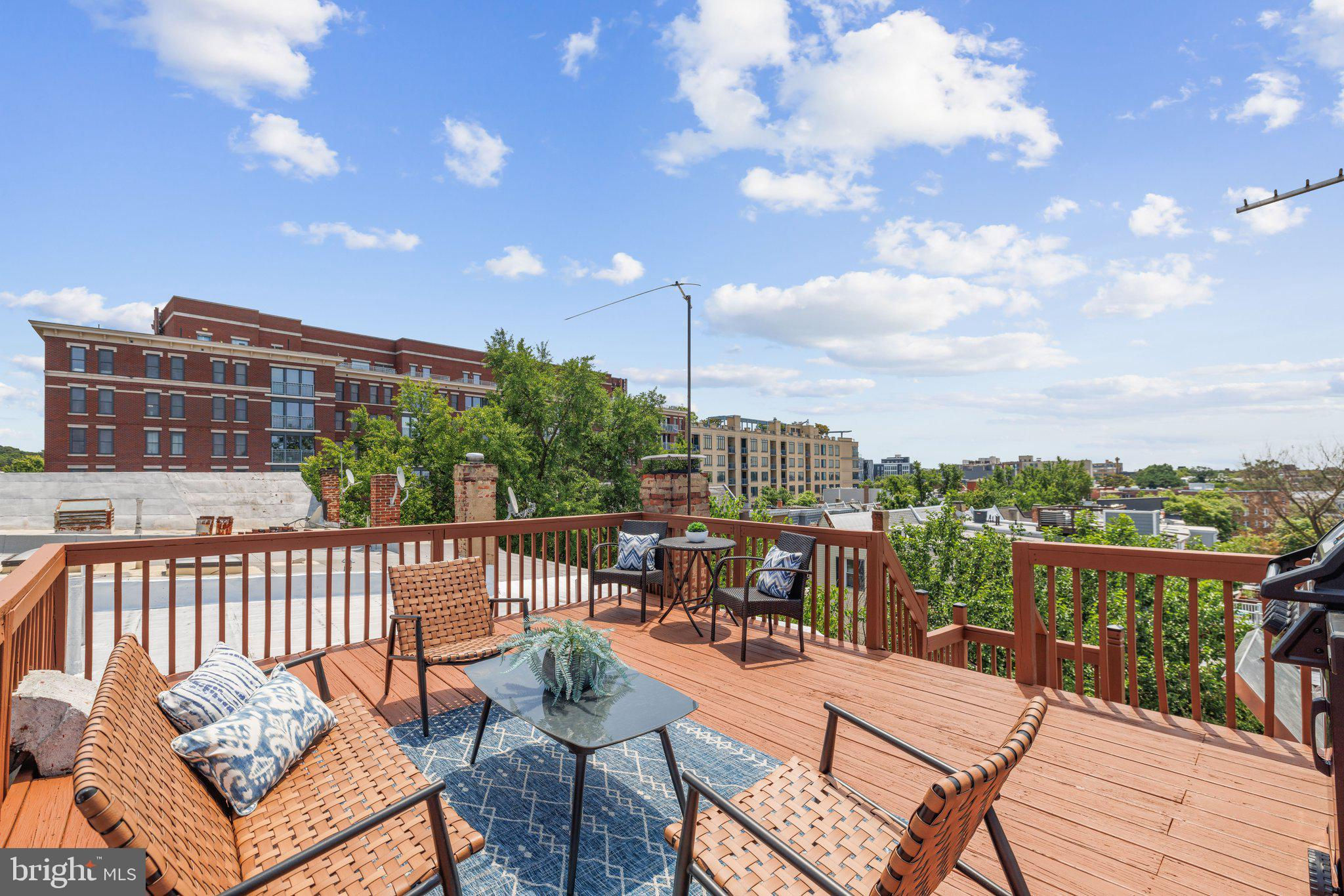 Welcome to this stunning rowhouse in Columbia Heights that's just steps to the heart of Petworth, where classic charm meets a modern aesthetic. The welcoming front porch greets you as you enter a home filled with beautiful hardwood floors, high ceilings, and airy sun-filled rooms. The updated kitchen, seamlessly opening to the dining room, is perfect for both everyday meals and entertaining. Freshly painted throughout, the home features a fantastic two-story sunroom at the back, providing a bright breakfast room and a cozy family room on the main floor while upstairs, you'll find a sunny office space accessible from both the second bedroom and the hallway. The lower level includes a generous rec room, which could easily be used as a third bedroom, a full bath, and ample storage space. The cherry on top is the unexpected, extraordinary roof deck with panoramic city views and a dedicated gas line for your grill. It’s sure to become a favorite spot for morning coffee as the sun rises and evening cocktails as the sun sets. In the back, enjoy the large, deep yard with a patio, perfect for gatherings and relaxation, along with the convenience of two off-street parking spaces. One of the most remarkable aspects of this property is its unbeatable location – just one block from the metro and Safeway, and a short stroll to an array of local shops and restaurants. Living here, you'll have everything you need at your doorstep, making owning a car optional. Experience the best of urban living in this exceptional Petworth home.