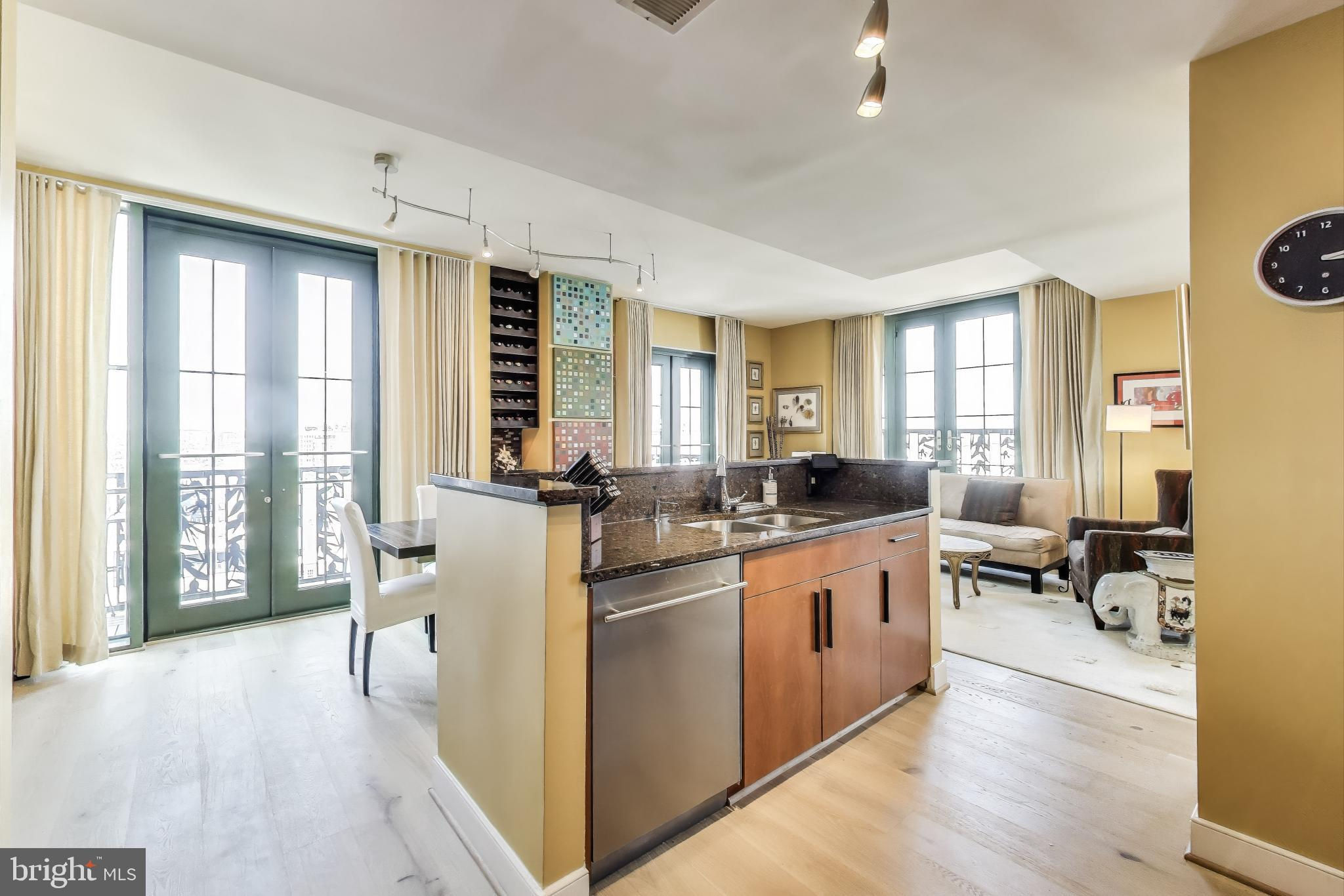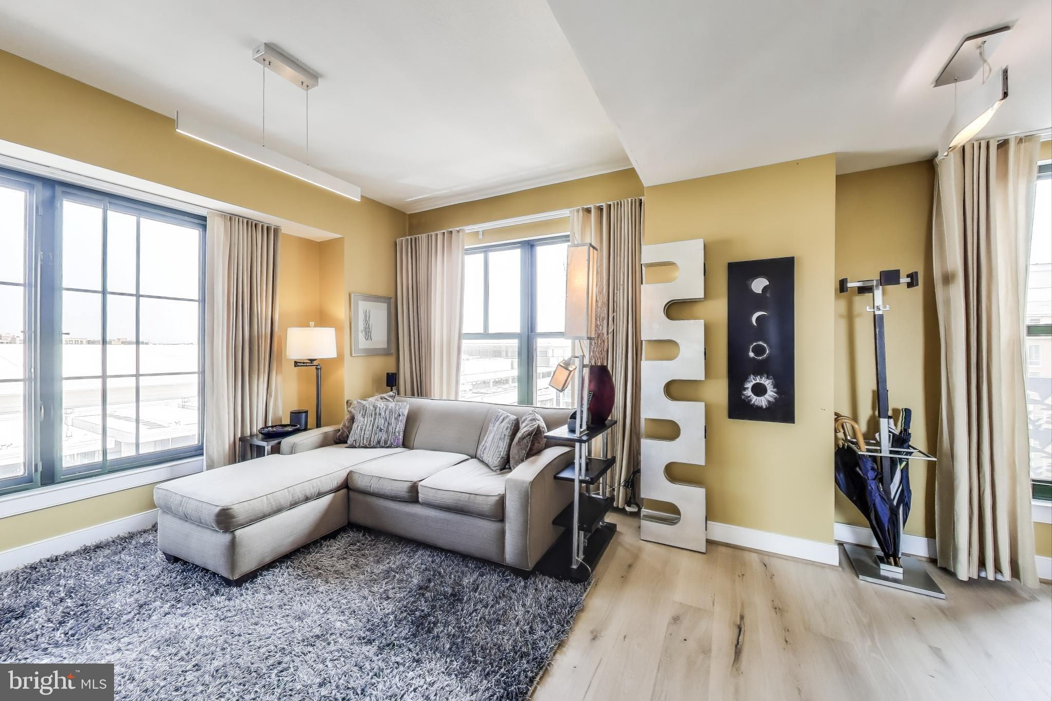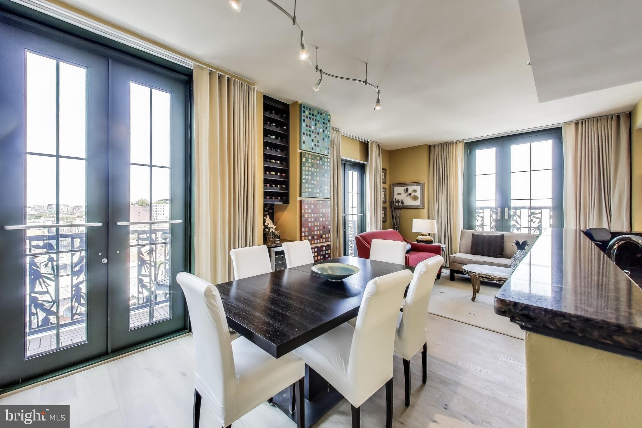 Spectacular property that lives like a house with the security and amenities of a high end condo building. Perched atop the prestigious Whitman Condominium, this elegant 3-bedroom + den, 2.5-bathroom, 2 level residence offers an exceptional urban living experience. Spanning 2157 square feet, the home is adorned with brand new wide plank floors throughout the main level. The gourmet kitchen is a chef's dream, featuring a large island, granite countertops, stainless steel appliances and a stylish backsplash enhanced by under-cabinet lighting. As a bonus, you will love the wine haven with a built in wine fridge and storage to accommodate several cases of your favorite vintages. The spacious living and dining areas boast northern, and eastern unobstructed views, with a large dinette conveniently located off the kitchen. The main level features a generously sized den or multi purpose room flanked with light that can be used as a family room, media room, office, conservatory or art studio - the possibilities are endless. A lovely foyer welcomes you to this exquisite home, where a powder room on the main level adds a touch of convenience. Seven balconies throughout the home offer various vantage points to enjoy cityscapes. The second level is home to the three spacious bedrooms including the two large secondary bedrooms with soaring ceilings, complemented by a dramatic bathroom. The primary suite impresses with its southern and eastern exposures, and a luxurious bathroom featuring a large vanity, sunlit windows, with custom Roman Shades, and an oversized relaxation driven soaking tub. The Whitman offers a wealth of amenities, including a stunning 360-degree rooftop deck complete with a pool open from May 1 to Sep 30, grills, seating areas and a reservable area, great for parties, with a catering pantry near the elevator to assist. Residents also enjoy access to a well-equipped fitness center, and party/media/recreation room. Additional conveniences include a 24-hour front desk concierge for in person delivery, storage and distribution of packages, two-car premium location secure garage parking (ask about the potential for electric car charging), convenient storage locker that conveys, and DC guest parking permit availability. All this is situated mere steps from Blagden Alley, dining, shopping, one block to Mount Vernon Square Metro Station and close to numerous others, offering unparalleled access to the city. Square footage is approximate via floor plan company. The unit was expanded from its original floor plan which is the reason for the difference with the public records.
