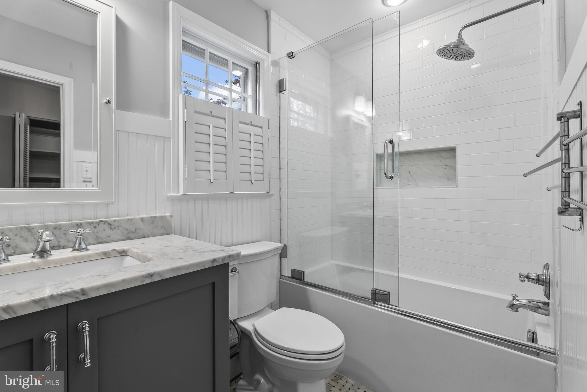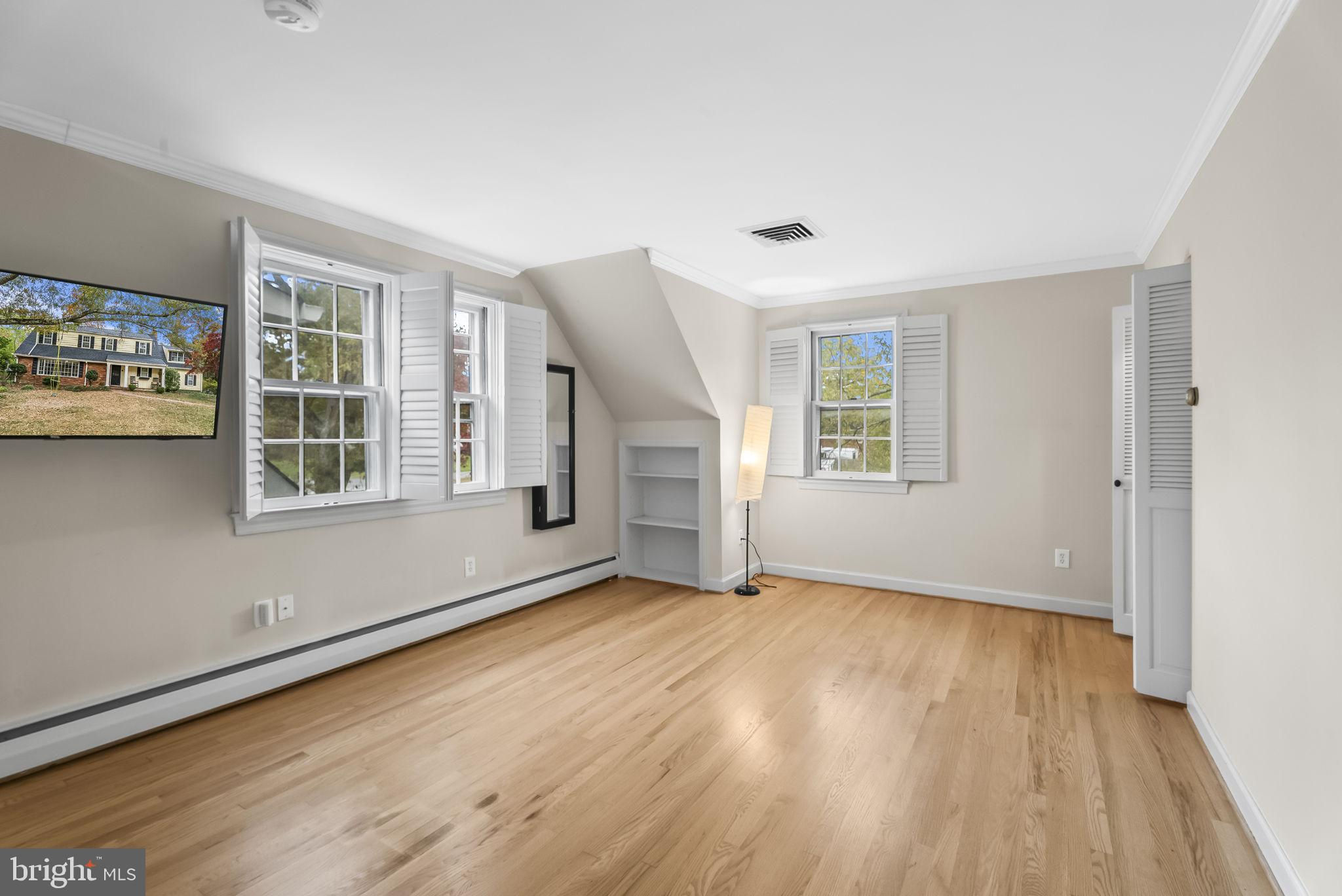 Thoughtfully updated home with both original charm and modern updates located in the Westgate community of Alexandria. The kitchen features stainless steel appliances and gas cooking. Functional built-ins throughout including additional cabinets, shelves, and a double desk. The primary bathroom features a dual sink vanity and large walk-in shower. Outside, enjoy a large yard with mature trees, front and back patio, 2 car garage and driveway. Convenient access to shopping, parks, and commuter routes.