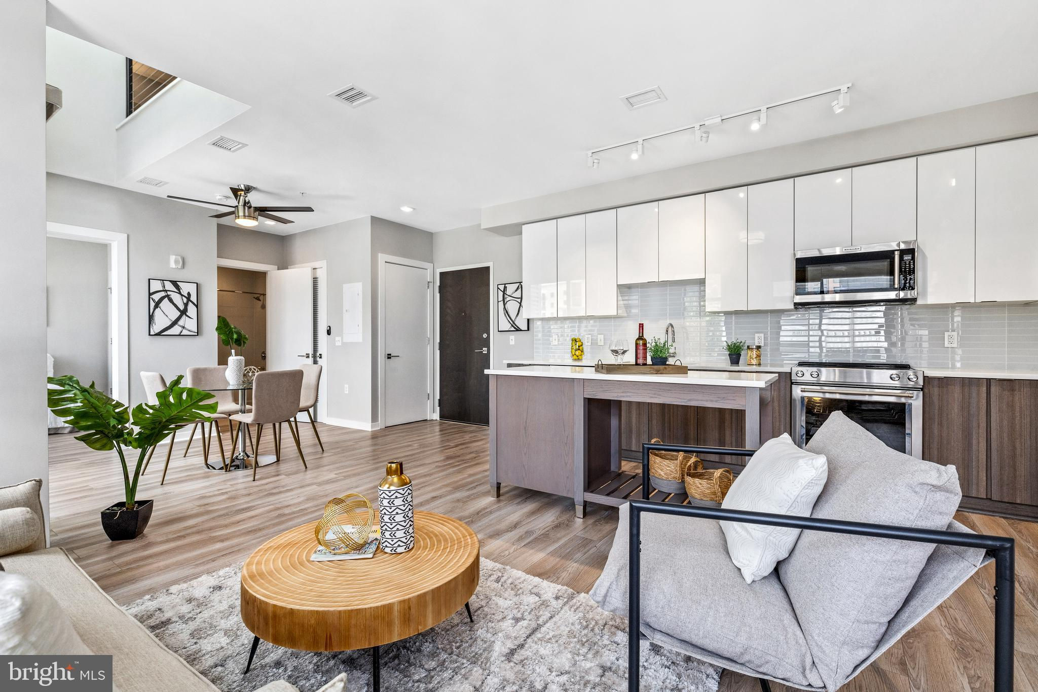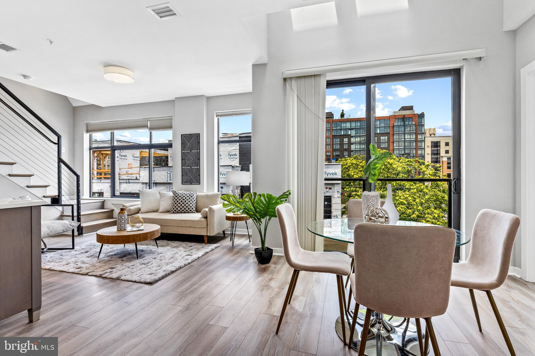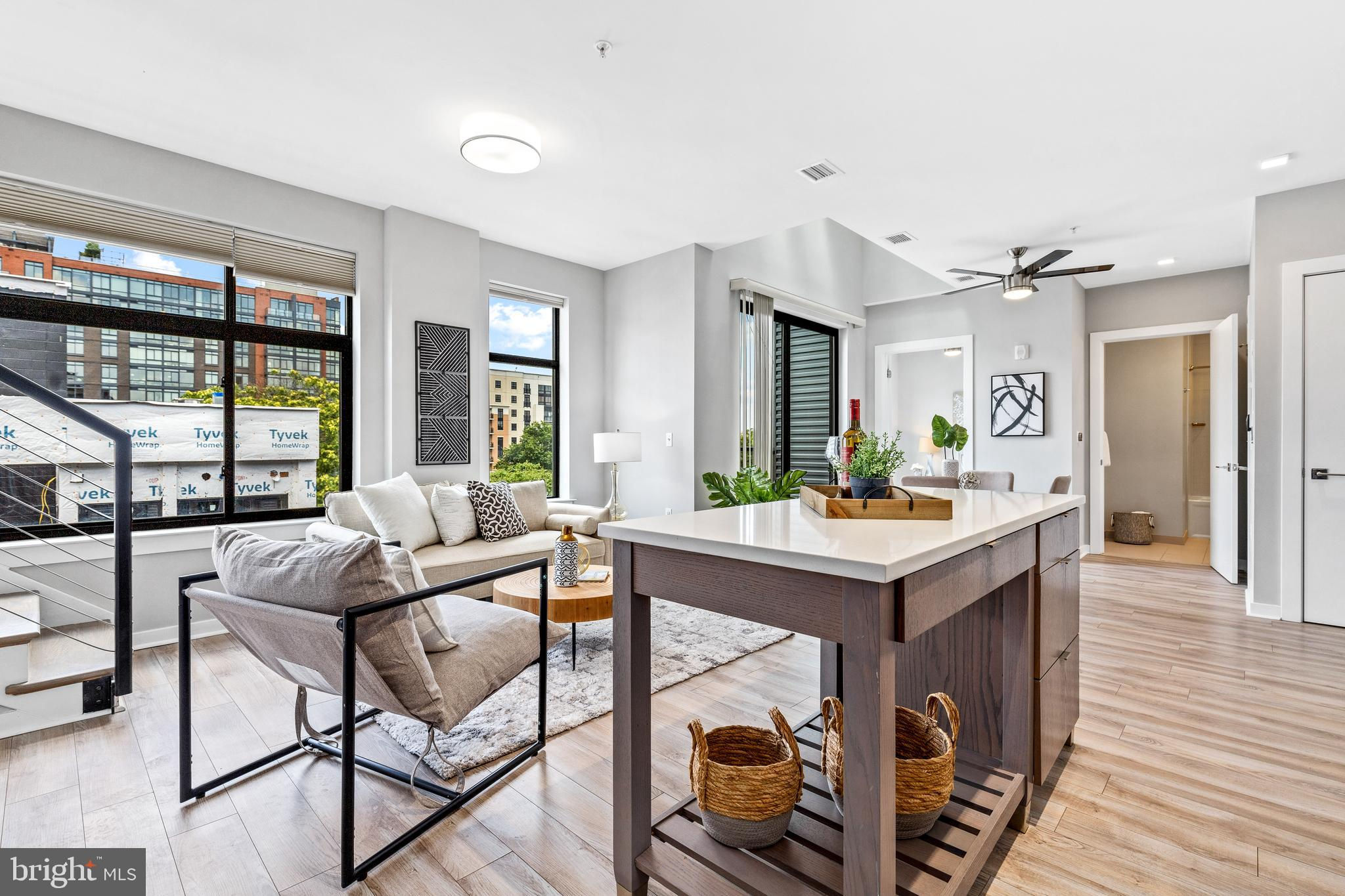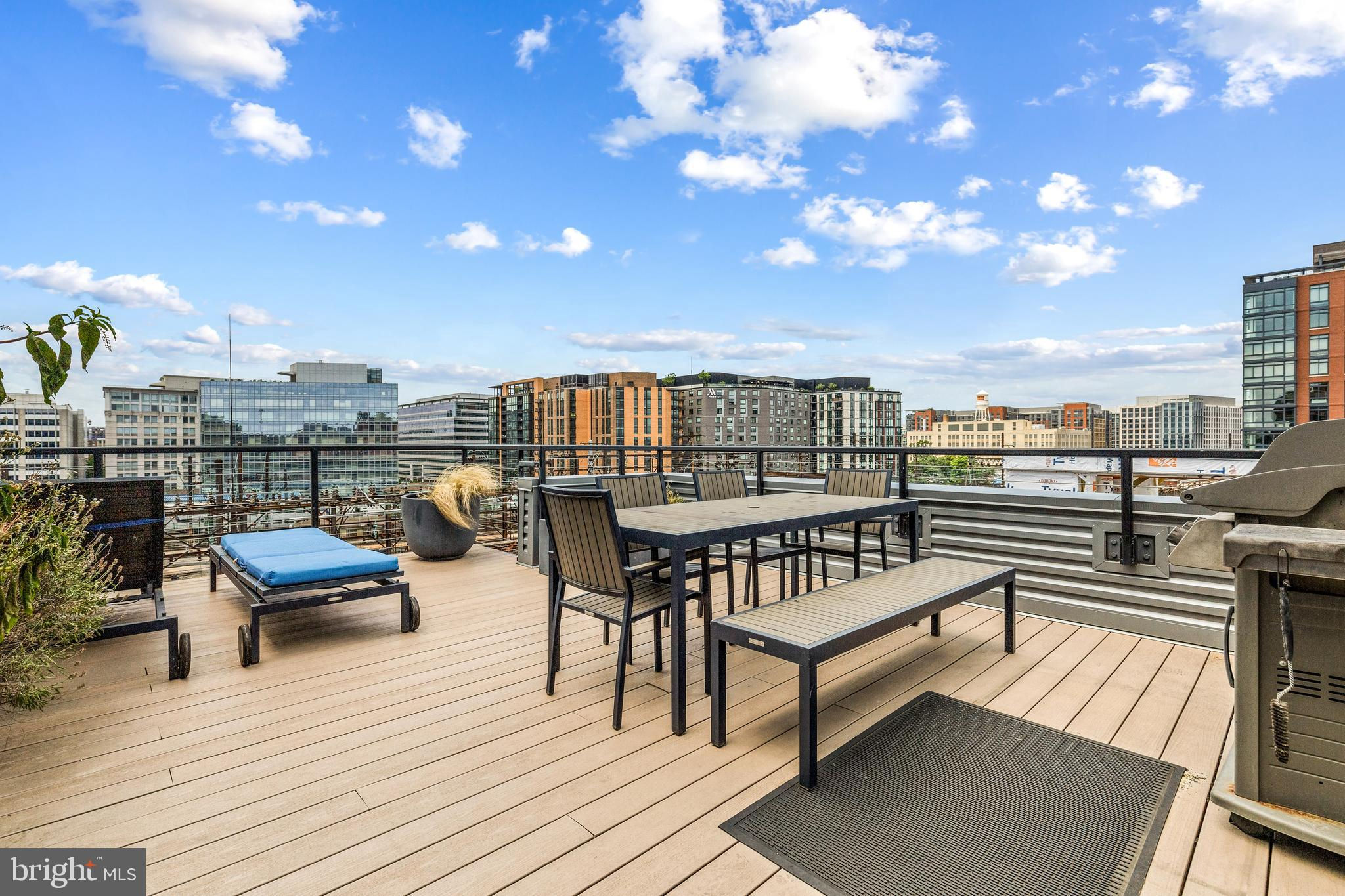 Experience unparalleled luxury in this 2 bedroom, plus versatile den perfect for extra living area space or office, 2 full bath penthouse loft, centrally located in the vibrant NoMa neighborhood. Nestled between the west end of the H Street Corridor and Union Market, this home offers the perfect blend of urban convenience and upscale comfort. Step inside to discover high-end European style finishes. The gourmet kitchen, features quartz countertops, an island for flexible dining options, and a custom backsplash. The open layout creates a light and airy ambiance, perfect for both relaxing and entertaining guests. This penthouse boasts two sun-drenched private decks. Start your day with coffee on one deck and unwind in the evening with a glass of wine on the second. These outdoor spaces extend your living area, providing perfect spots to enjoy the changing seasons and city views. An in-unit washer and dryer ensure everyday living is a breeze, and the modern bathroom complements the penthouse’s sleek design, offering a tranquil retreat. Residents of this building enjoy an on-site fitness facility, making it easy to maintain an active lifestyle. The rooftop terrace offers breathtaking views of the DC skyline, providing a serene escape from city life. Imagine hosting friends for a sunset cocktail hour or simply relaxing with a book while taking in the stunning vistas. Whole Foods is just a short distance away, making grocery shopping a breeze. Union Station Metro is less than two blocks from your door, ensuring effortless commutes and travel. The local scene includes dining, shopping, and entertainment options, all within walking distance. From gourmet restaurants to trendy boutiques, everything you need is right at your doorstep. Parking is included, offering convenience and peace of mind in the heart of the city. No more searching for street parking or dealing with meters—your private parking space awaits. Immerse yourself in the dynamic atmosphere of NoMa and enjoy all the comforts and conveniences this stunning residence has to offer. From its prime location to its top-of-the-line finishes and amenities, this penthouse epitomizes urban luxury living.