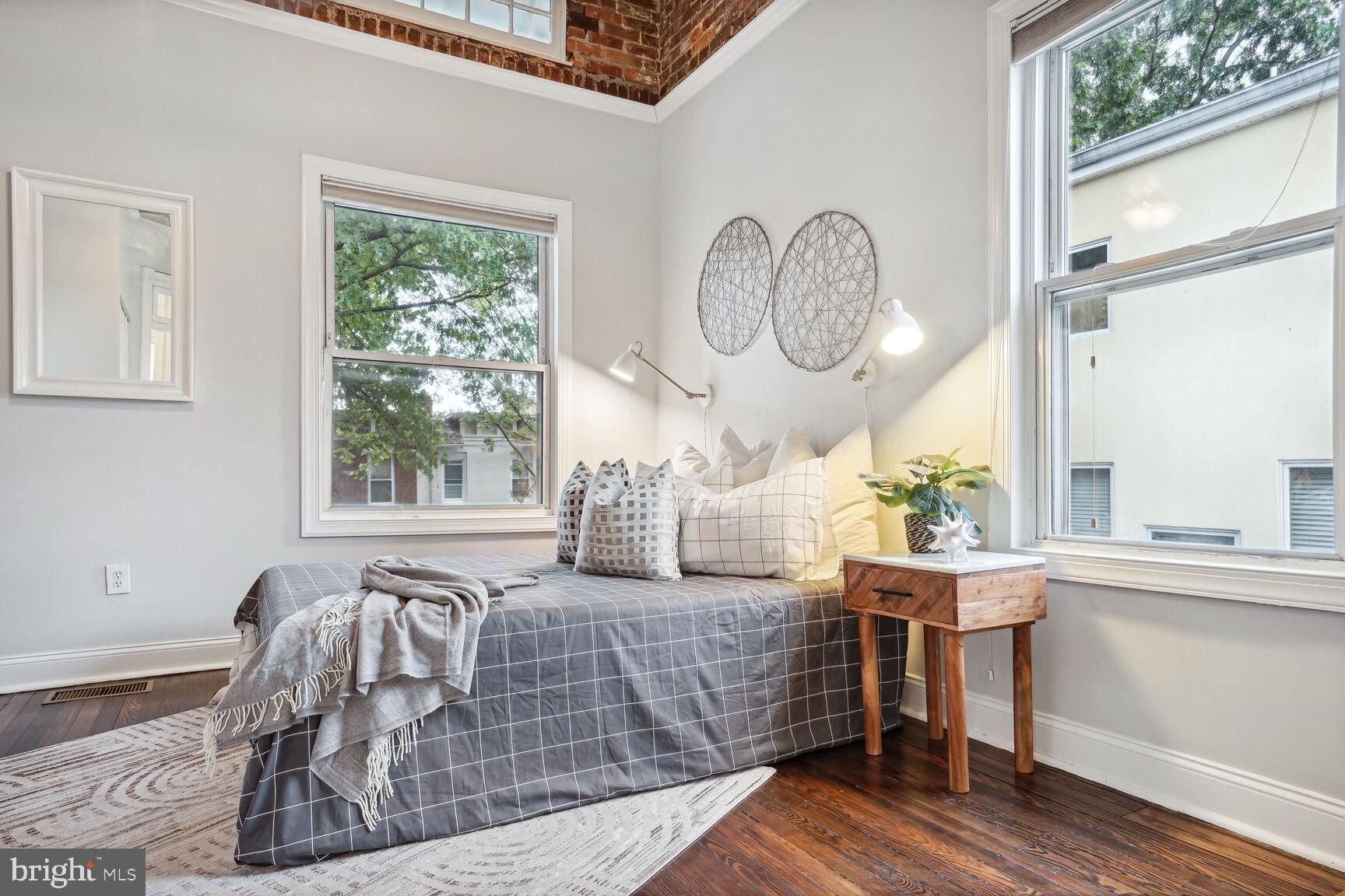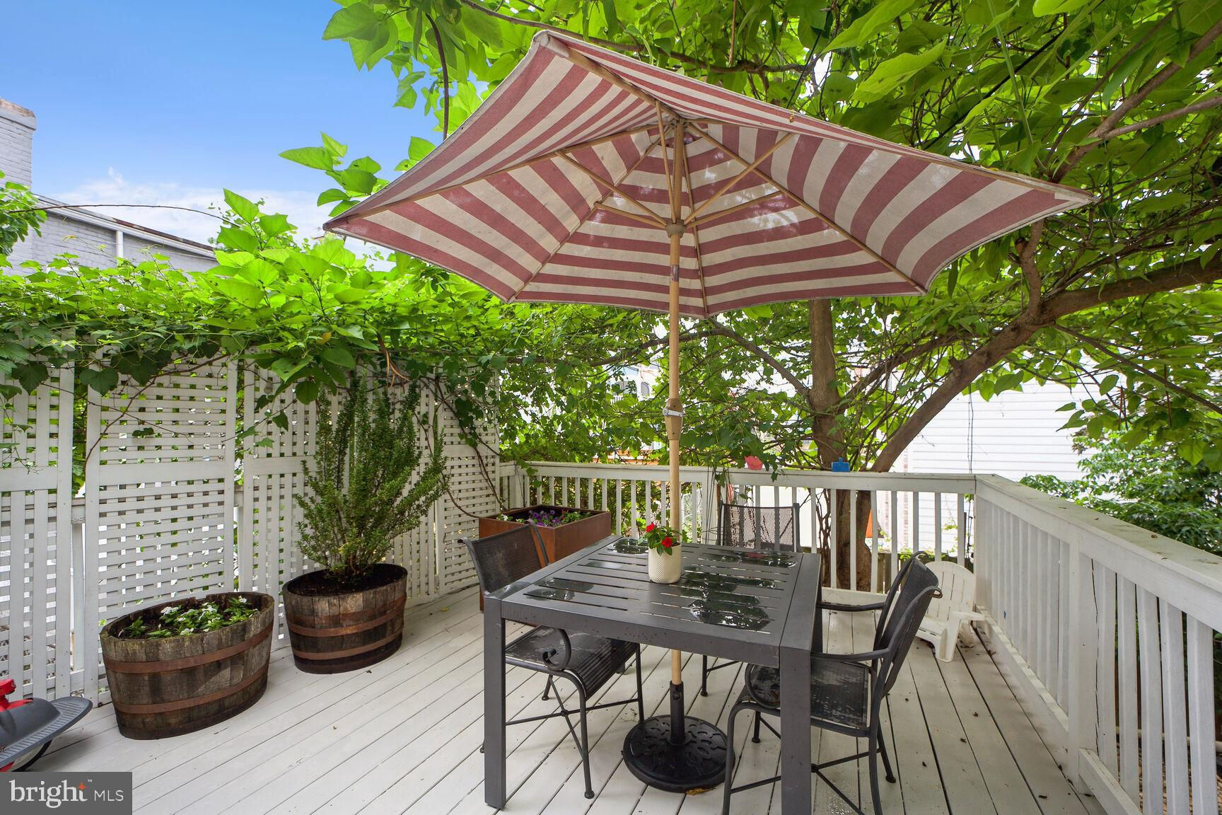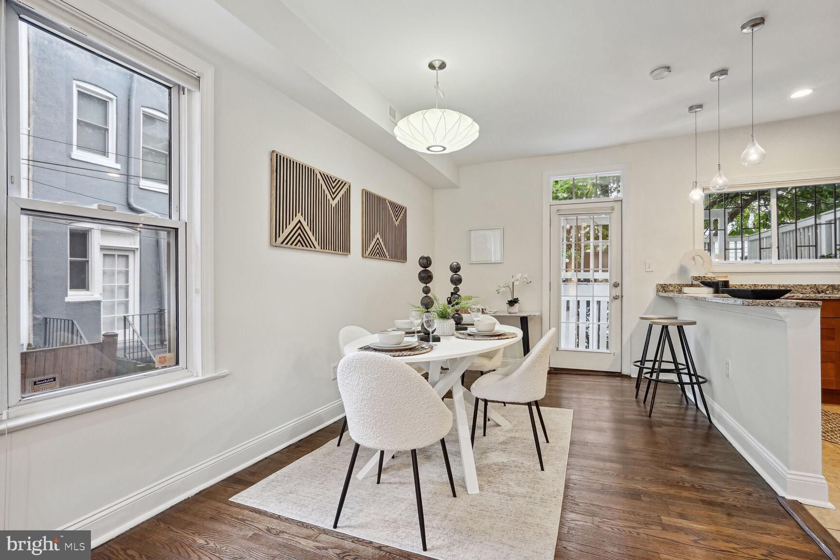Buyer got cold feet! The best buy in The Heights is back! best hurry. NEW PICS LOADED BY TOMORROW ! A charming and updated end unit townhouse with a bright open floor plan with a spacious updated & snazzy kitchen, warm hardwood floors and a dedicated dining area off the kitchen. Wonderful light from multiple large windows and a walk out to a large elevated private party deck! Upstairs there is a hip primary bedroom with vaulted ceilings and exposed brick, a well sized 2nd bedroom and a fully updated bath! Downstairs, a completely finished lower level with a fully equipped studio which has been previously rented at $1350/mo. ! There is off street parking under the rear deck, and the location affords walkability to loads of options in the neighborhood as well as the metro! New hwh & a/c in July! A full house for the price of a 2 bedroom condo!!! Income from basement equates to approx. 200k in mortgage making this a great buy in any market!