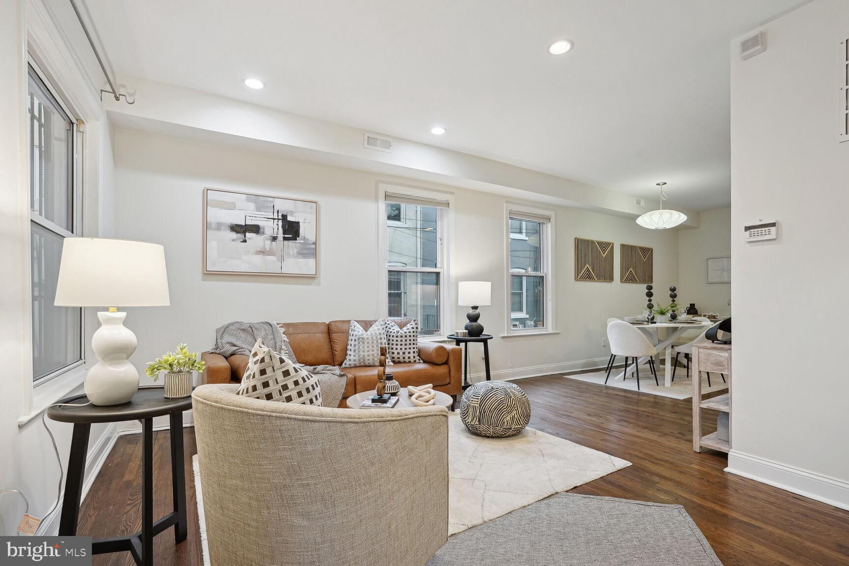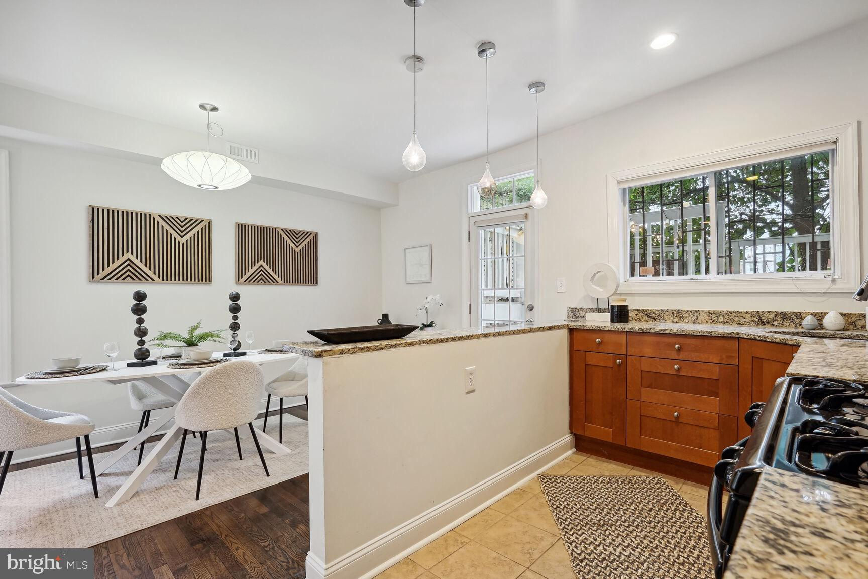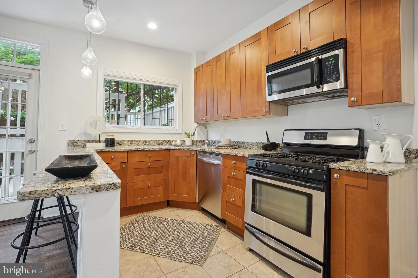 Buyer got cold feet! The best buy in The Heights is back! best hurry. NEW PICS LOADED BY TOMORROW ! A charming and updated end unit townhouse with a bright open floor plan with a spacious updated & snazzy kitchen, warm hardwood floors and a dedicated dining area off the kitchen. Wonderful light from multiple large windows and a walk out to a large elevated private party deck! Upstairs there is a hip primary bedroom with vaulted ceilings and exposed brick, a well sized 2nd bedroom and a fully updated bath! Downstairs, a completely finished lower level with a fully equipped studio which has been previously rented at $1350/mo. ! There is off street parking under the rear deck, and the location affords walkability to loads of options in the neighborhood as well as the metro! New hwh & a/c in July! A full house for the price of a 2 bedroom condo!!! Income from basement equates to approx. 200k in mortgage making this a great buy in any market!