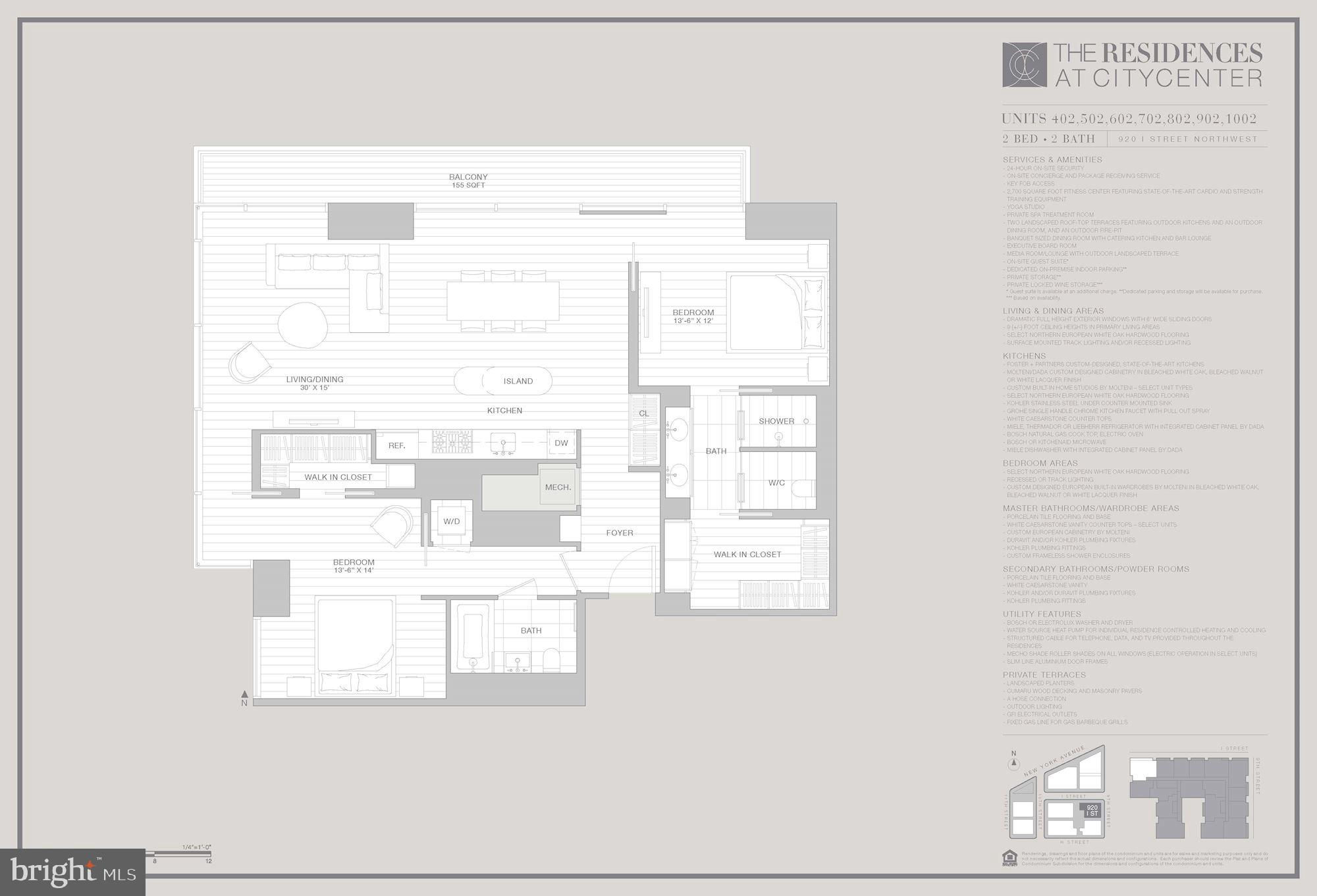 Fantastic New Price!! Welcome to sophisticated urban living at The Residences at City Center! This exquisite 2-bedroom, 2-bathroom condo showcases a modern, open layout designed by the esteemed architecture firm Foster+Partners. Thoughtfully crafted with high-quality, custom finishes and eco-friendly materials, this residence combines luxury and practicality in a prime, central DC location. Expansive windows invite natural light, while private outdoor space offers a serene retreat in the city’s heart. Located in one of Washington, D.C.'s most sought-after addresses, The Residences at City Center offer amenities galore and top notch concierge services. Two parking spaces convey.