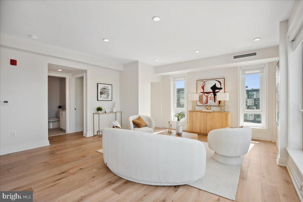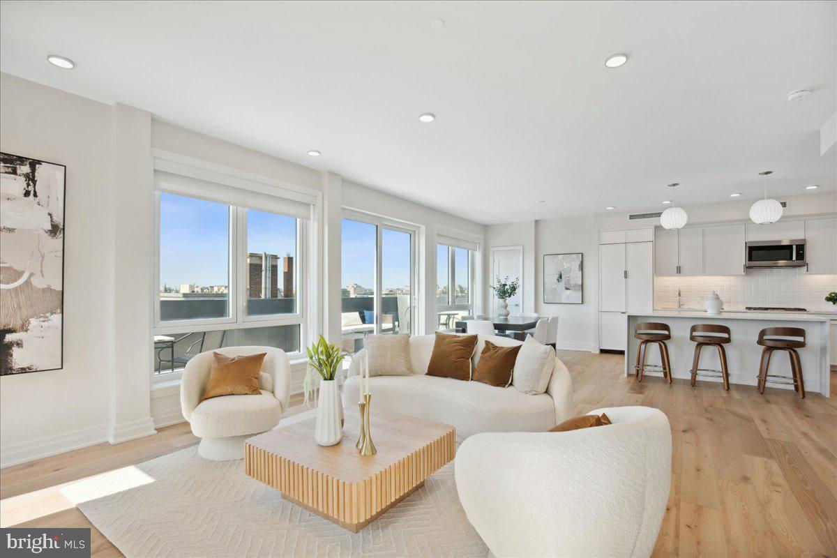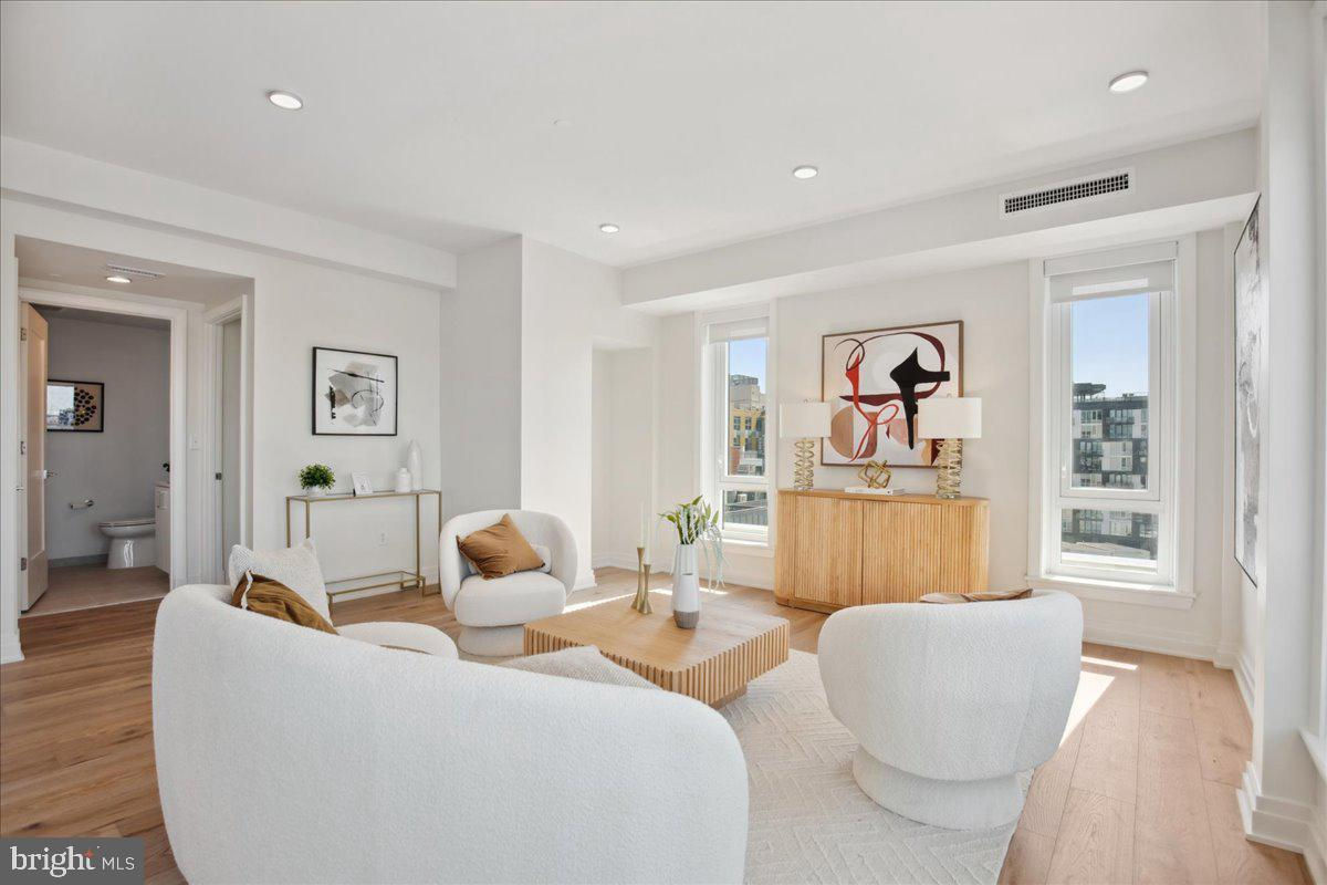 Welcome to Unit 601 at the Aperture! A soaring modern masterpiece spread across two private levels in one of Washington, D.C.’s most sought-after boutique buildings. With only 19 residences in the building, this exceptional 2-bedroom, 2.5-bath penthouse offers exclusive living and a true “tower in the sky” experience. Step inside to discover 10-foot ceilings, wide-plank hardwood floors throughout, and floor-to-ceiling windows that flood the space with natural light. The open-concept kitchen is designed for both functionality and elegance, featuring Bosch stainless steel appliances, a gas cooktop, stone countertops, and a generous island, perfect for entertaining. An expansive living and dining area offers room to host unforgettable D.C. dinner parties, with the shimmering city skyline as your backdrop. Upstairs, the show-stopping rooftop terrace, one of the finest in the city which offers jaw-dropping, south-facing views of the Washington Monument and Capitol Building. It’s an entertainer’s dream and your personal oasis above the city. The primary suite is both spacious and sophisticated, featuring a large walk-in closet and a spa-inspired ensuite with a dual vanity, oversized walk-in shower, and luxurious finishes. The second bedroom offers ultimate versatility—perfect as a guest suite, home office, or fitness studio. Located just one block from Whole Foods and the U Street Metro Station (Green & Yellow lines), convenience is at your doorstep. Parking is available for purchase. This is not just a condo, it’s a lifestyle. Monument views, sleek modern design, premium finishes, and unparalleled outdoor space. Unit 601 at the Aperture delivers it all!