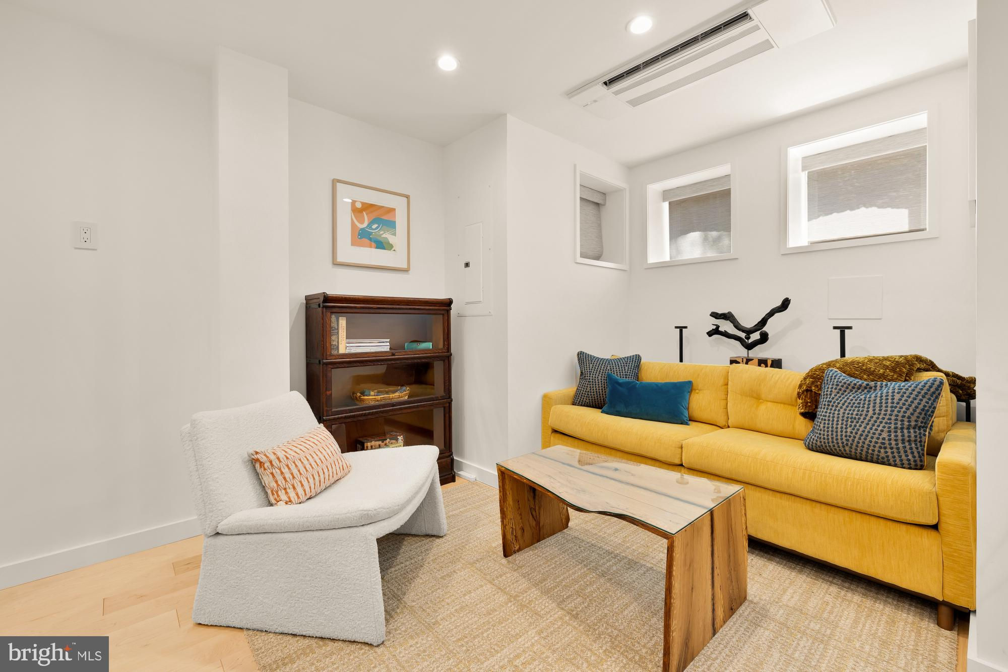 Stunningly reimagined historic rowhome on French Street with a legal lower-level rental unit that can cut your mortgage payments in half! This 3BR/3.5BA home seamlessly blends architectural character with modern luxury. The main level features hardwood floors, high ceilings, exposed brick, a marble fireplace, and a dramatic dining area. The chef’s kitchen offers custom cabinetry, marble surfaces, a large island, and sliding doors that open to the sunny deck and patio. Enjoy private parking with EV charger and automatic gate. Upstairs, the primary suite includes floor-to-ceiling windows, custom closets, and a spa-like bath with a steam shower, heated marble floors, and a skylight. A second en-suite bedroom has vaulted ceilings and bay windows. An office with skylight and built-ins, plus a walk-in laundry closet, completes this level. The lower level is a legal rental unit with a Certificate of Occupancy and front and back entrances. It features a full kitchen, living and dining space, a bedroom, and a luxe bath. Perfect for a high-end rental, in-law suite, or guest space. Incredible opportunity for passive income! Smart-home integration, energy-efficient systems, and high-end finishes run throughout this meticulously renovated home. Located near Michelin-star dining, live music, parks, and the vibrant Shaw/Logan/Dupont corridor.