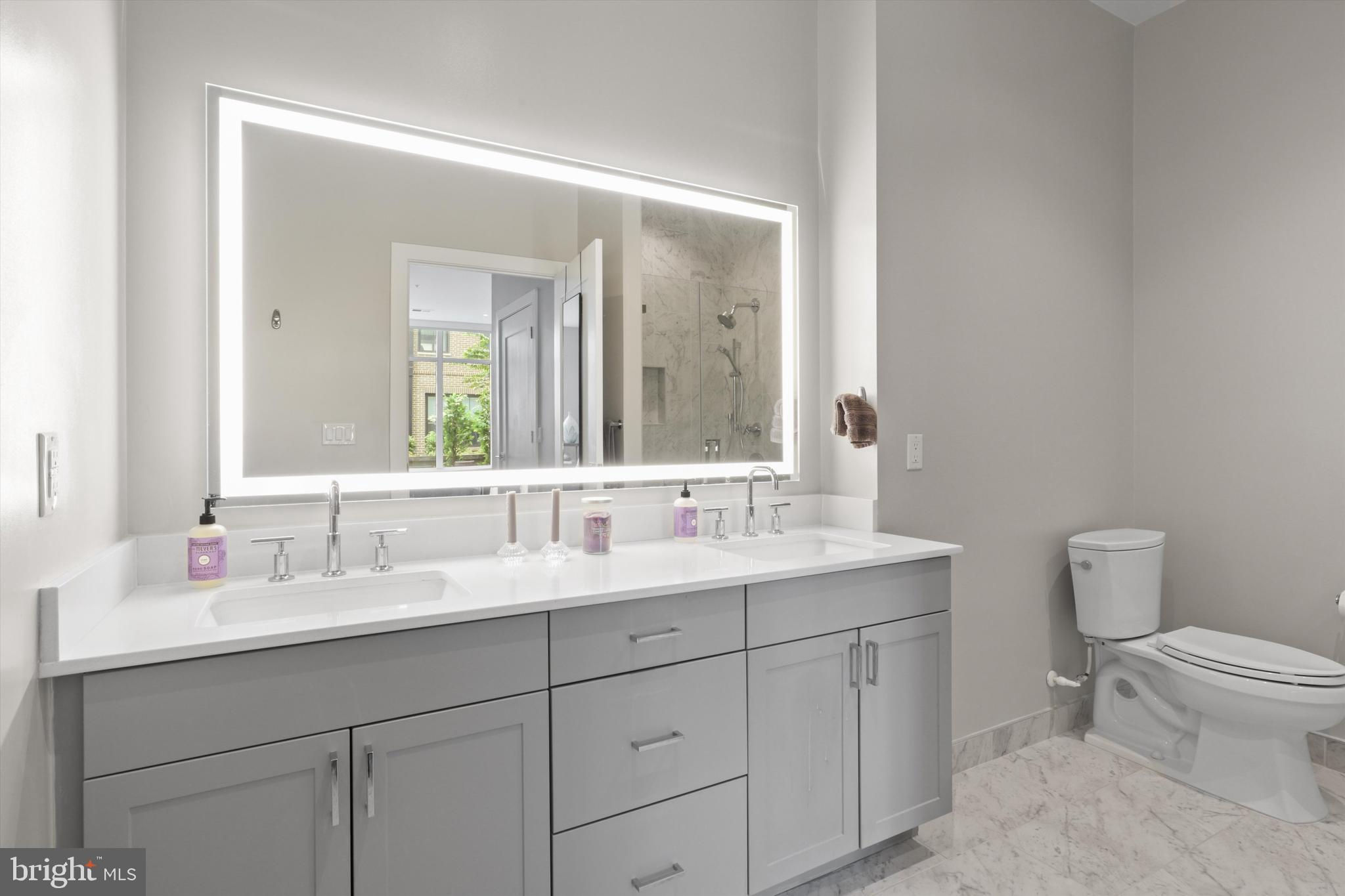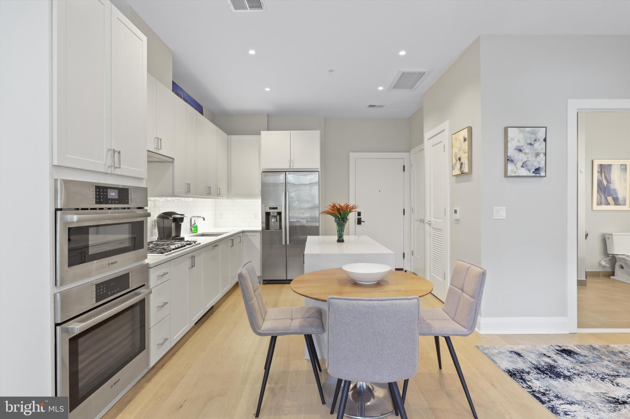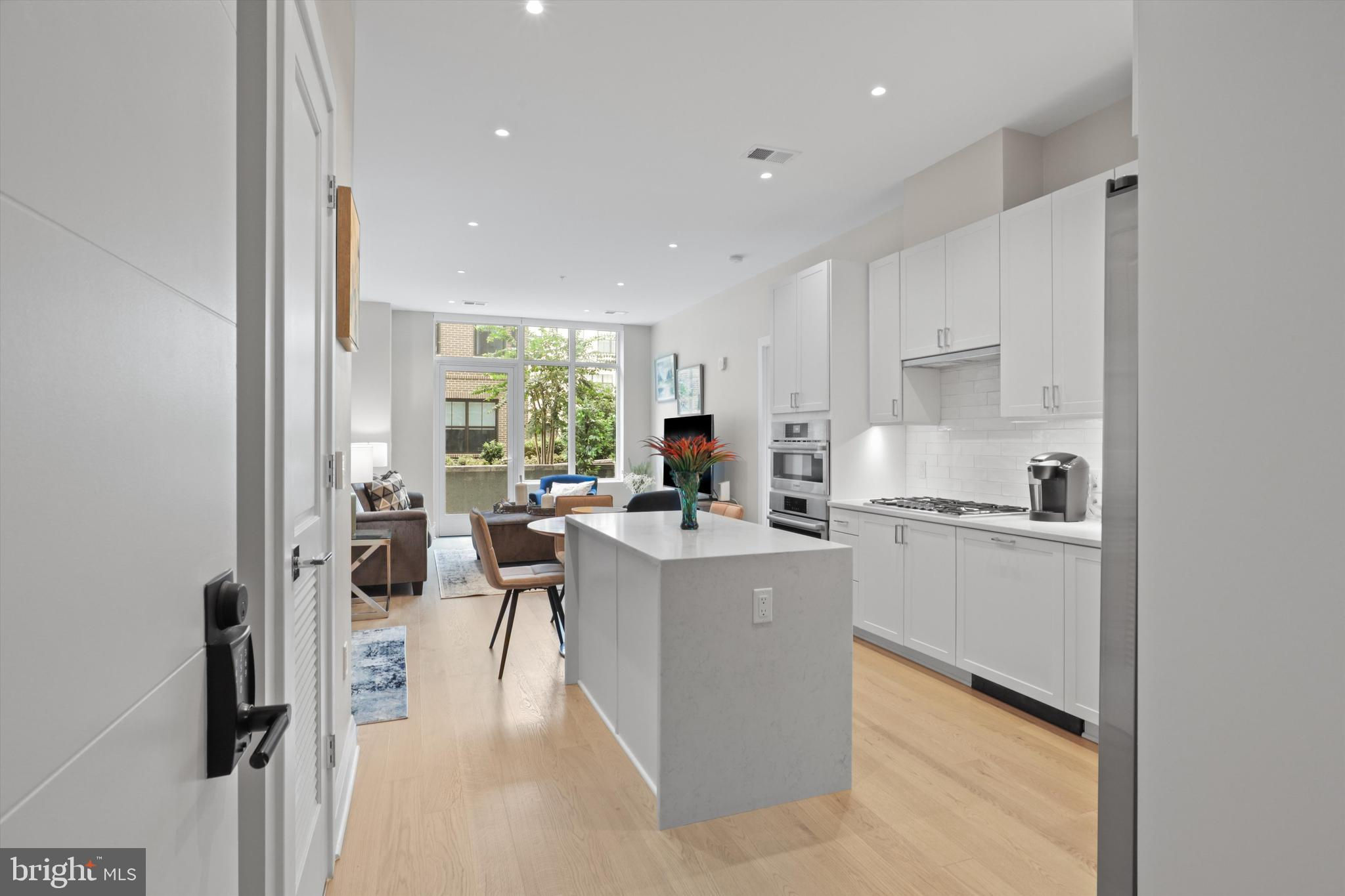 Discover luxury living in Old Town at this 2 bedroom condo with ADA-compliant features. Experience refined living in this residence designed with comfort and accessibility in mind at The Venue. Offering two bedrooms, two bathrooms, and a rare private terrace, this home elevates both functionality and style. Step inside to soaring ceilings, hardwood floors, and recessed lighting that create a warm, sophisticated ambiance. The open-concept chef’s kitchen is a true centerpiece, featuring Bosch stainless steel appliances, a gas cooktop, and an expansive island perfect for hosting. Floor-to-ceiling windows seamlessly connect the indoors to your spacious terrace — ideal for al fresco dining, entertaining, or simply unwinding outdoors. The luxurious primary suite boasts a spa-inspired double vanity bathroom, generous closet space, and a full-sized washer and dryer. A second full bathroom provides convenience for guests. This unit also comes with a deeded handicap-accessible parking space, an extremely rare offering at The Venue. The building’s resort-style amenities include a fully equipped fitness center, residents’ game room, a pet salon, and a sky lounge with rooftop terraces featuring grills and fire-pits overlooking Washington, D.C. and the Potomac River. A full-time concierge ensures every need is met with ease. Outside your door, enjoy the Mount Vernon Trail for walking, running, or biking, Montgomery Park’s tennis courts and green spaces, and the endless dining, shopping, and nightlife along King Street. This is more than a condo, it’s an extraordinary lifestyle that blends accessibility, sophistication, and the rare luxury of private outdoor living. Don’t miss this unique opportunity to call The Venue your new home.