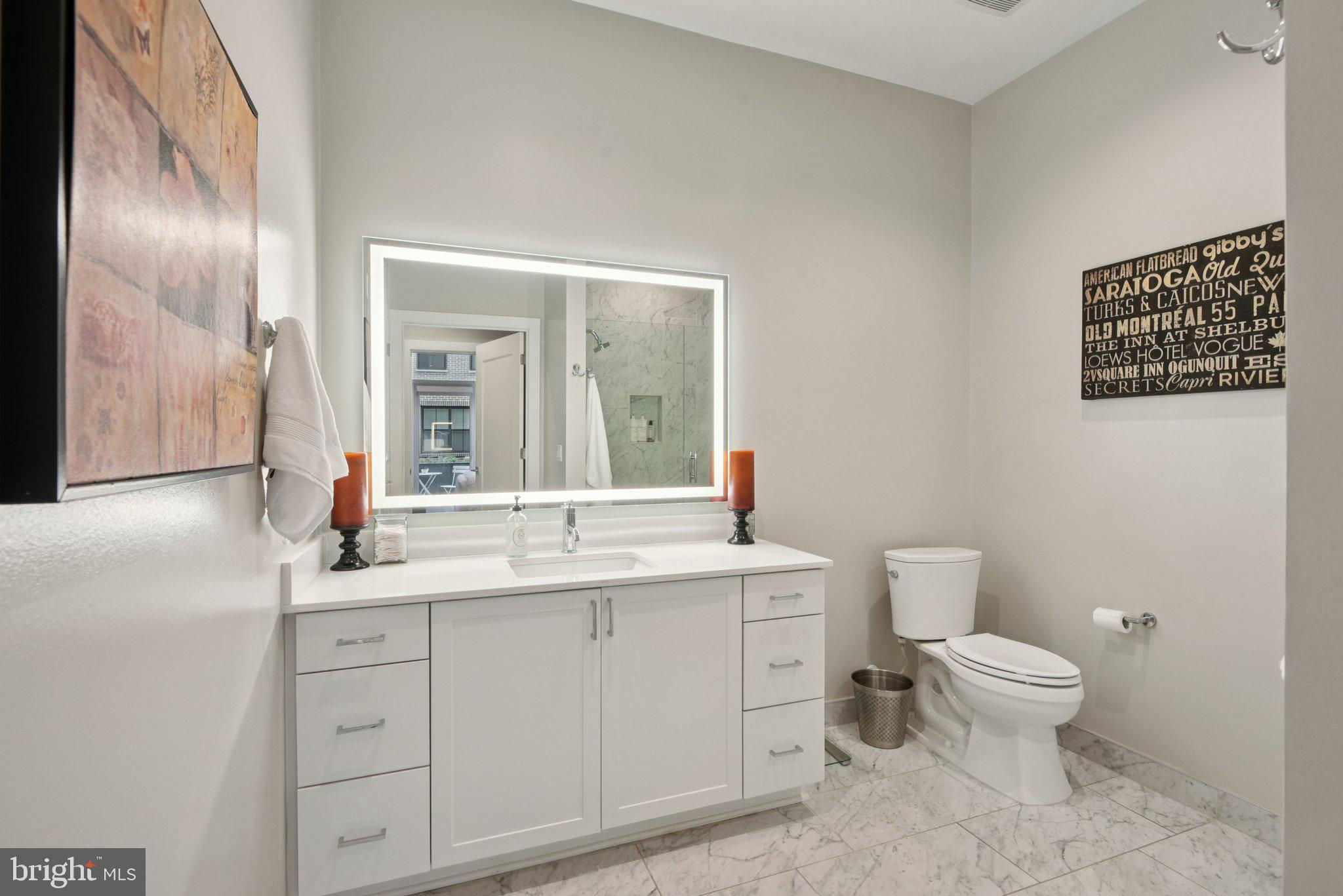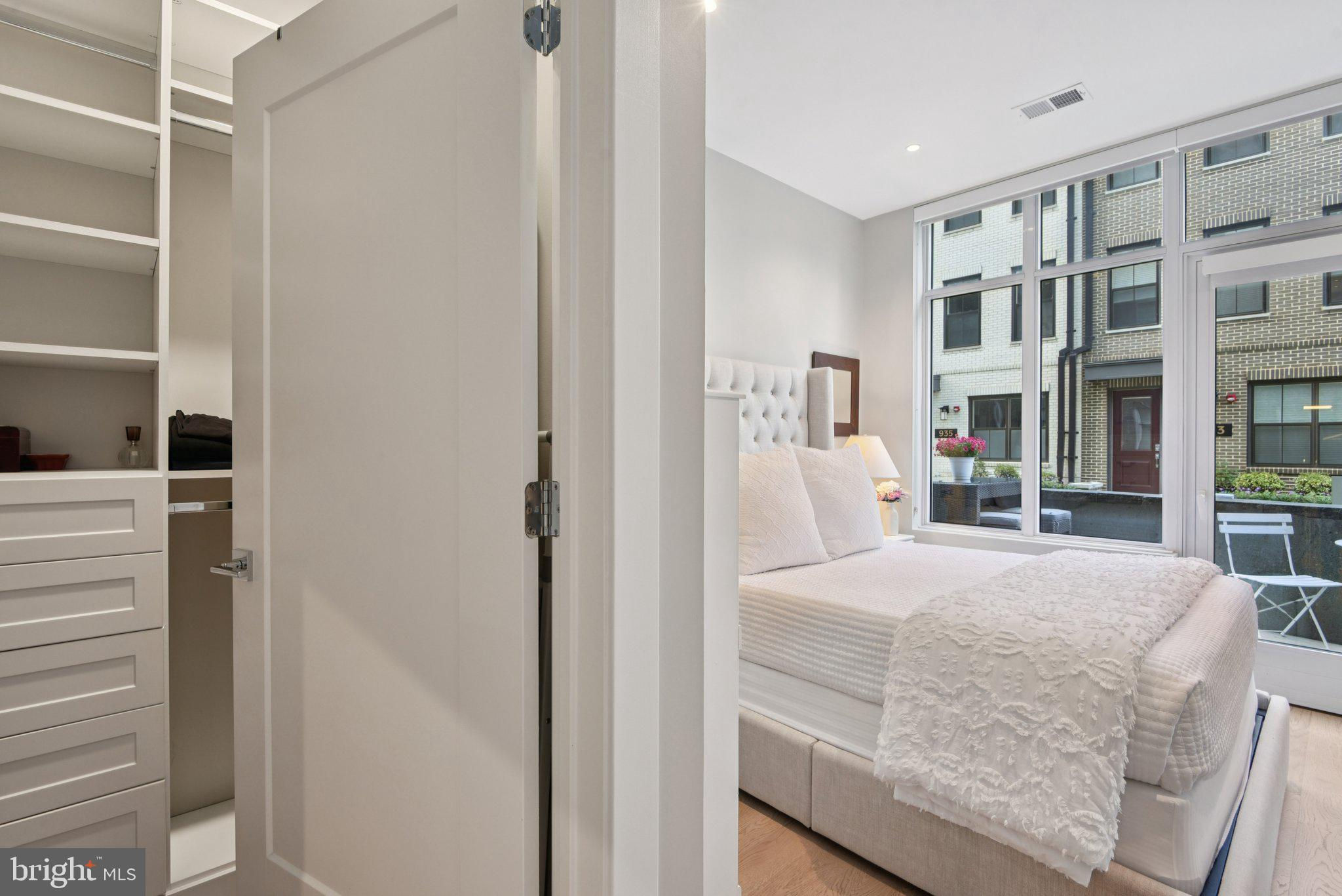 **This home qualifies for 5.49% (APR 5.793%) 30 year fixed Conventional financing!** Terms and conditions apply. Inquire with the listing agent for details.** RARE OPPORTUNITY to own a FIRST FLOOR ONE-BEDROOM, ONE BATH WITH LARGE TERRACE at Old Town's newest luxury condominium building, VENUE! Absolutely stunning in person, this residence is located on the Northern side of the building, with natural light that overlooks the green space with beautiful flowers throughout. Built by renowned local developer, Carr Companies, the finishes in this building are extraordinary. Chef's kitchens feature Bosch/Miele appliance packages, Quartz countertops, and custom cabinetry. Custom built walk in closet by econize, and custom built glass door for shower/bath. This particular floorplan was designed to utilize every inch with purpose, so it lives larger than 769 sqft. Features include 10 foot ceiling’s, recessed lighting throughout (on dimmers), large side by side washer and dryer, with large closet and shelving. Large bathroom, along with walls of windows showcasing an abundance of light. One private assigned parking spot included with purchase. VENUE offers a turn-key elevated lifestyle. Enter through the hotel-style Porte-Cochere into our Grand Lobby, where you will be met by our Full Service Concierge and on-site building manager to assist with your every need. The building offers a sprawling Rooftop Terrace offering expansive panoramic views of the DC Monuments, Potomac River, National Harbor, and Old Town skyline as well as an outdoor grilling station and fire pit seating area. The elegant indoor Owner's Sky-Lounge, also offering panoramic views, is equipped with flat-screen TVs, a fireplace, and a cocktail bar, perfect for entertaining! Stay healthy and active in the State-of-the-art Fitness center complete with a Barre studio. VENUE is the ideal location in Old Town's most desirable neighborhood, right in the center of entertainment, restaurants, and shopping, with direct access to the Mount Vernon Trail. This is a MUST SEE ONE-BEDROOM!!
