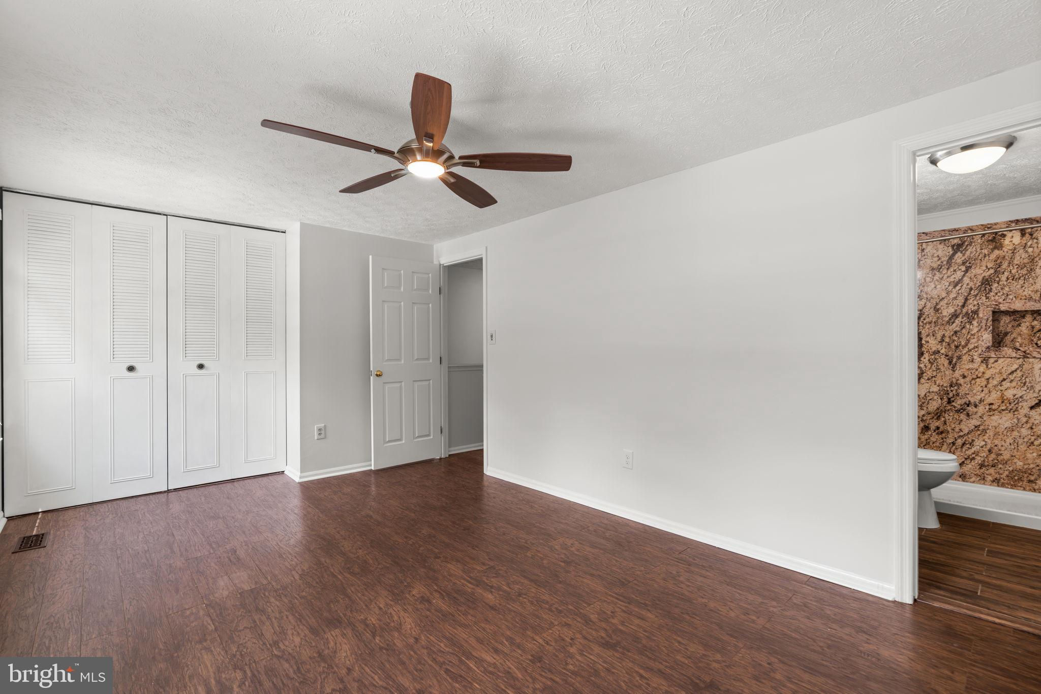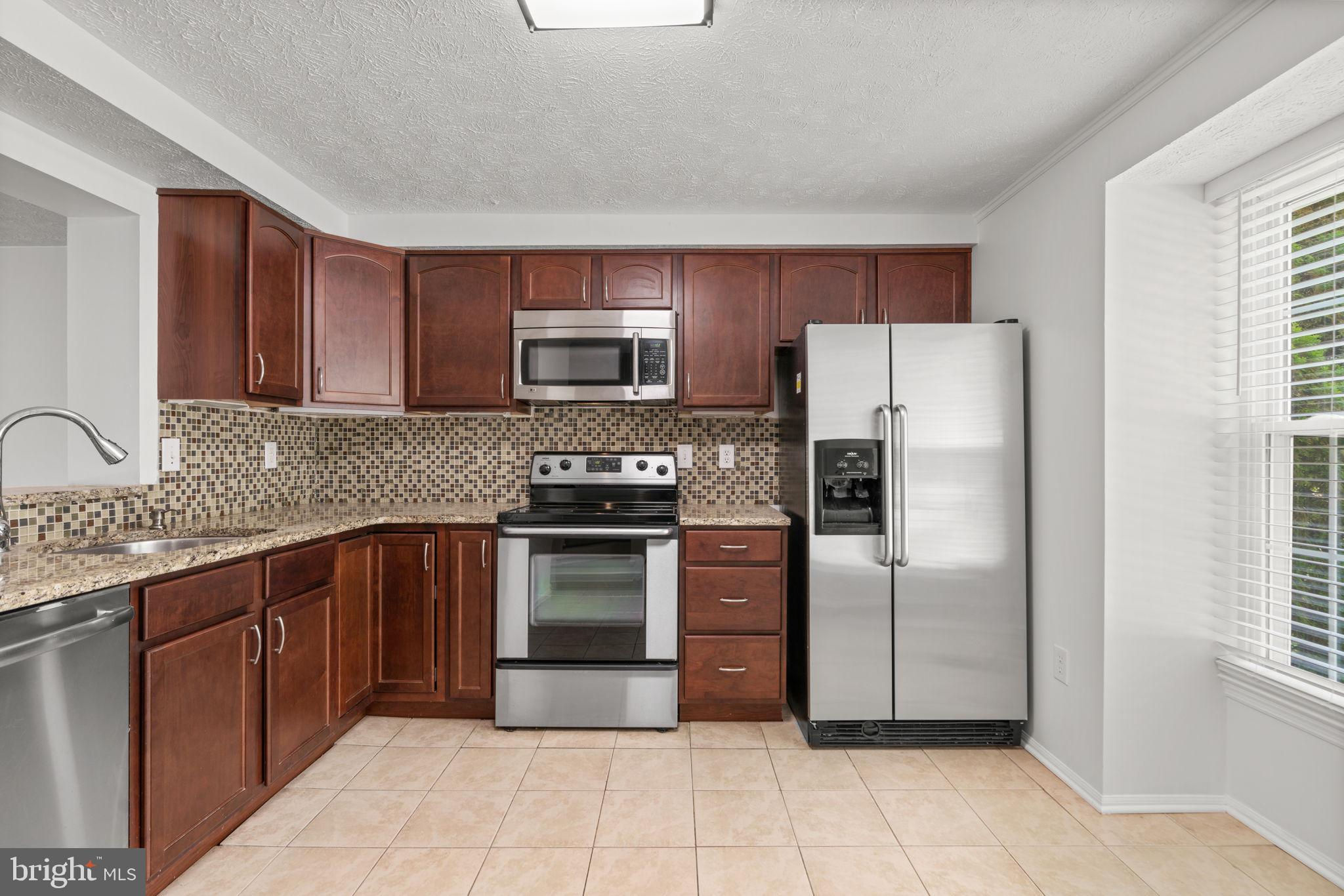 Charming colonial-style townhome with 1,680 square feet of living space, featuring 2 bedrooms, 2 full baths, and 1 half bath, nestled in vibrant Bowling Brook Farms. Step inside the main level, where beautiful flooring extends throughout, starting in the foyer, which features a convenient coat closet and a stylish powder room. A pass-through window to the kitchen brightens the space with natural light. Continue to the spacious family and dining room, ideal for both dining and entertaining, with sliding door access to the deck. The stunning eat-in kitchen features ample cabinetry, stainless steel appliances, a mosaic tile backsplash, and views of the open family and dining room. The spacious, freshly painted owner’s suite features a private en suite bathroom with striking shower tile. The upper level also includes another carpeted bedroom with a private full bathroom. The expansive finished lower level provides extra space for lounging, with direct access to the backyard, and includes a bonus room with convenient laundry and storage space. Enjoy outdoor dining on the spacious deck, featuring a charming pergola and overlooking a fully-fenced yard with tree-lined views that provide added shade and privacy. Bowling Brook Farms offers a serene suburban atmosphere with the convenience of nearby shopping at Laurel Town Center, diverse dining options, local parks, and easy access to major highways. 2 assigned parking spots located right in front of the home!