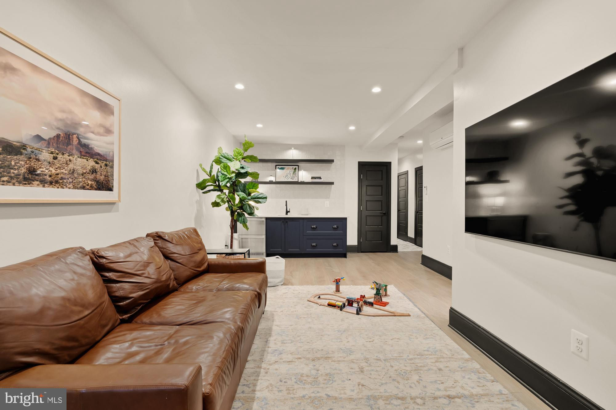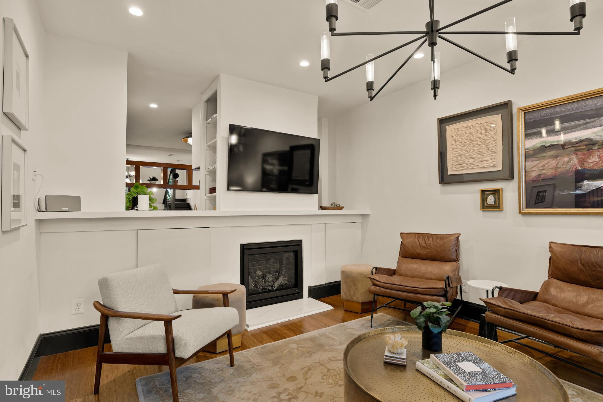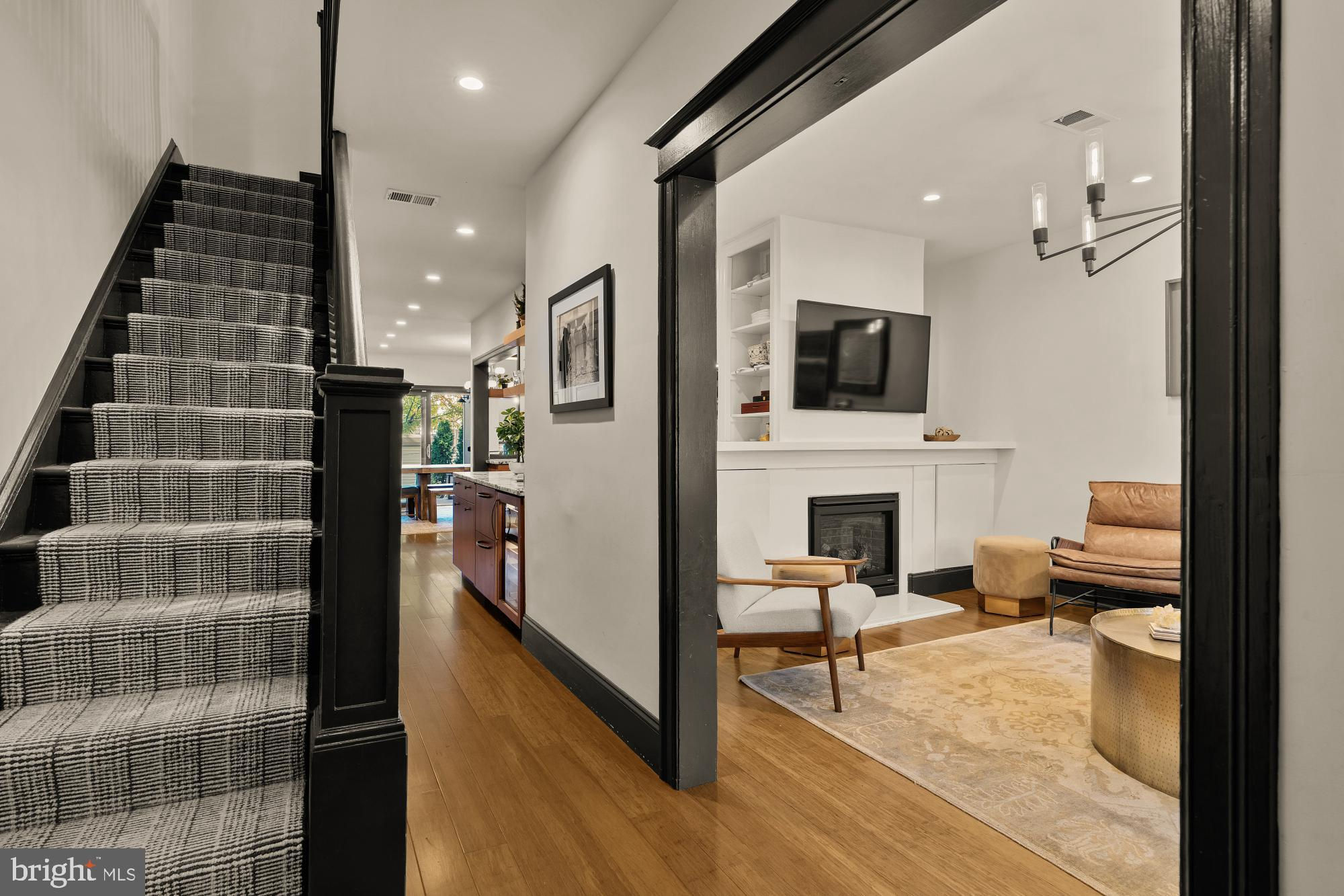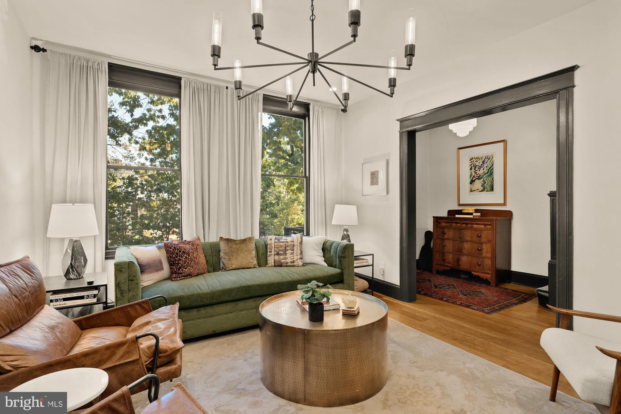 Prepare to be captivated. Nestled just one block from the Metro and the vibrant restaurants at the Roost on a leafy block, 951 14th St SE is a rarely available 20' wide sophisticated row home that masterfully blends grandeur with modern, livable luxury in a total of 3450 SF. This is not just a house; it's an experience, offering a lifestyle of unparalleled convenience, elegance, and warmth. Spanning four expansive levels, this home offers enough room to be your own private urban estate. The main level is designed for both grand-scale entertaining and intimate gatherings, anchored by a gas fireplace in the living room. The chef’s kitchen features high-end sub-zero and Viking appliances. With five bedrooms plus a den that is set up as a gym, 5.5 bathrooms, and two separate family rooms, the home offers both scale and flexibility. Your private primary suite is a true sanctuary, featuring a spacious living area perfect for a quiet retreat and a stunning, walk-out green roof deck—your own elevated oasis in the heart of the city. It’s a perfect spot for morning coffee or evening stargazing. The awe continues as you take in all the amenities of the home. The walk-out basement, with its easily accessible front egress, is a versatile level that can serve as a guest suite (with private ensuite bath), a media hub, or the state-of-the-art family room with it's own full bath and home gym it currently houses. Step outside to your private, low-maintenance backyard—an entertainer's dream. A shaded, covered deck leads to the open yard, all complemented by the incredible asset of up to two-car off-street parking secured by an industrial-grade garage door—a coveted luxury in this prime location. Imagine This Life: Your weekend begins with a stroll to Eastern Market for fresh blooms and produce. An afternoon espresso is just steps away at The Roost. A effortless Metro ride downtown, then home to host friends in a space that feels both grand and welcoming. This home has a certain "Great Gatsby" charm—dramatic, stylish, and incredibly warm. This is a home that must be seen to be fully appreciated. The combination of size, sophistication, and location is a true anomaly in the DC market. No open houses will be available so please schedule your private tour today and discover the exceptional lifestyle that awaits at 951 14th St SE. Square footage is deemed reliable but not guaranteed. Tax records, past listing, and curbio floor measurements differ and SF is estimated.